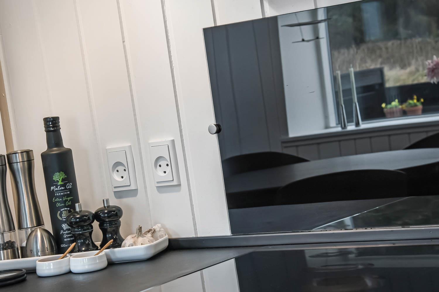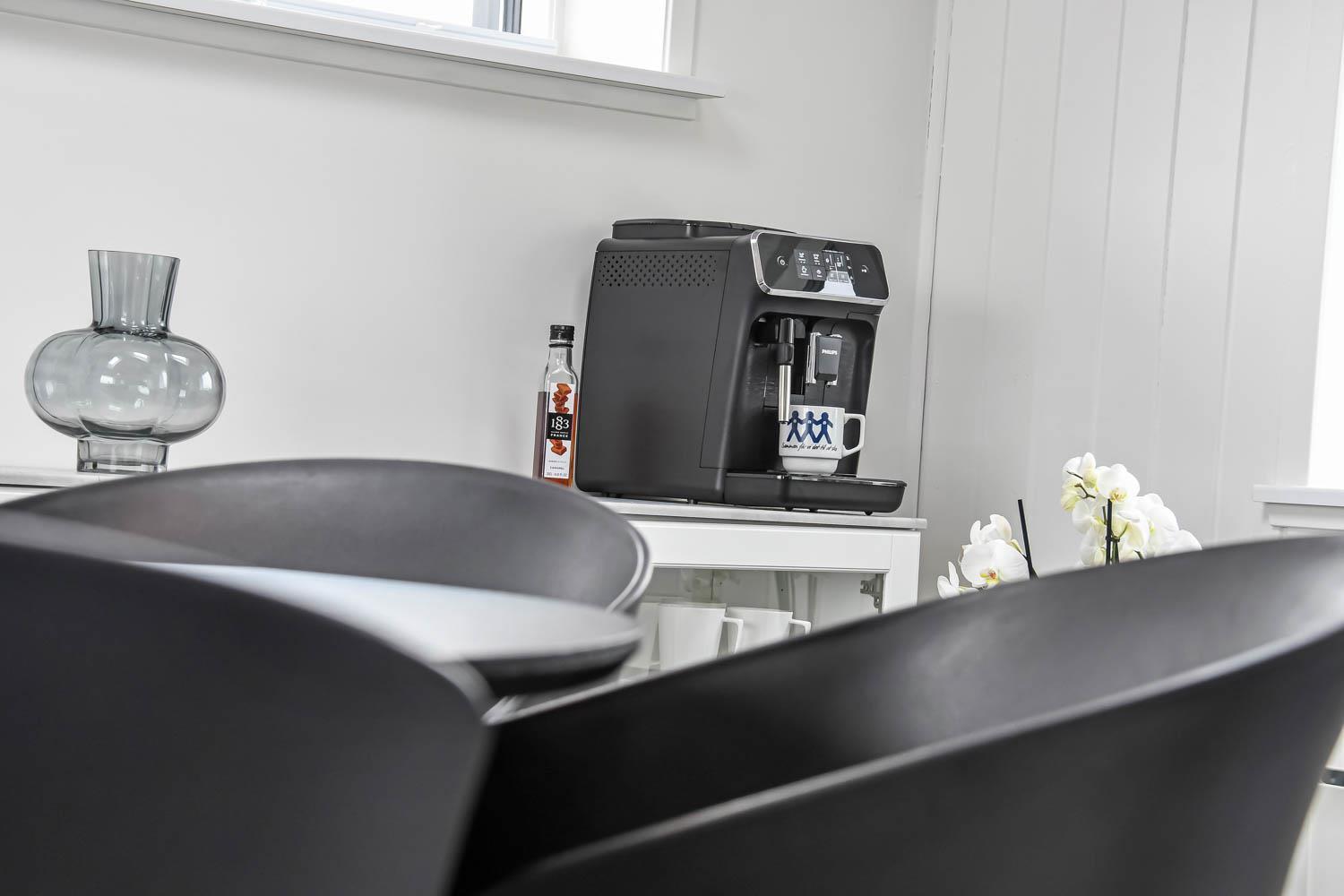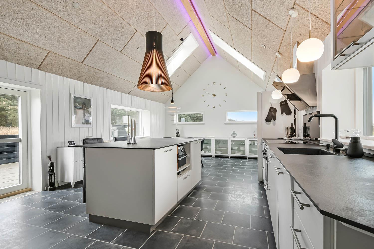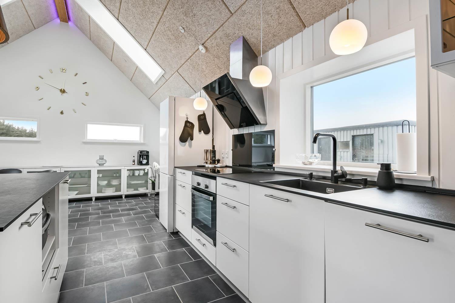 Det stilrene køkken er fuldt udstyret med el keramisk komfur, køle-/fryseskab, opvaskemaskine, airfryer, mikroovn og indbygningsovn – alt hvad du behøver for at lave lækre måltider til familien.