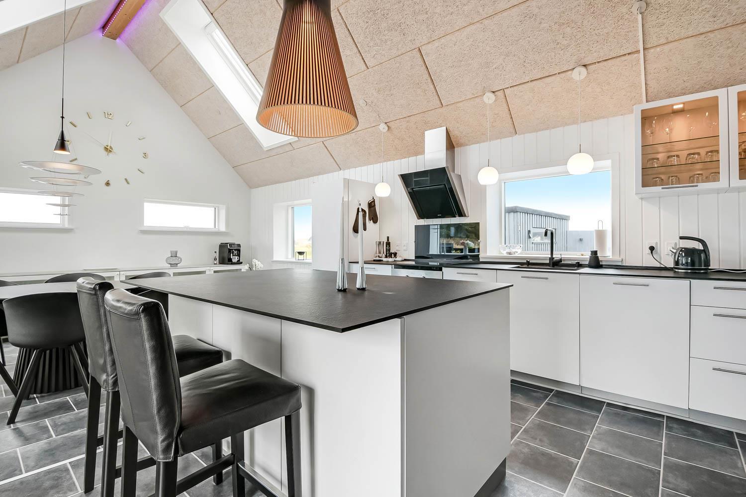 Sommerhuset er elegant, moderne og hyggeligt indrettet med høje kvalitetsmaterialer og store vinduespartier, der lader lyset strømme ind. Huset råder også over en dejlig brændeovn, som sørger for hygge og en dejlig varme. Huset rummer tre rummelige soveværelser, hver med en komfortabel dobbeltseng.