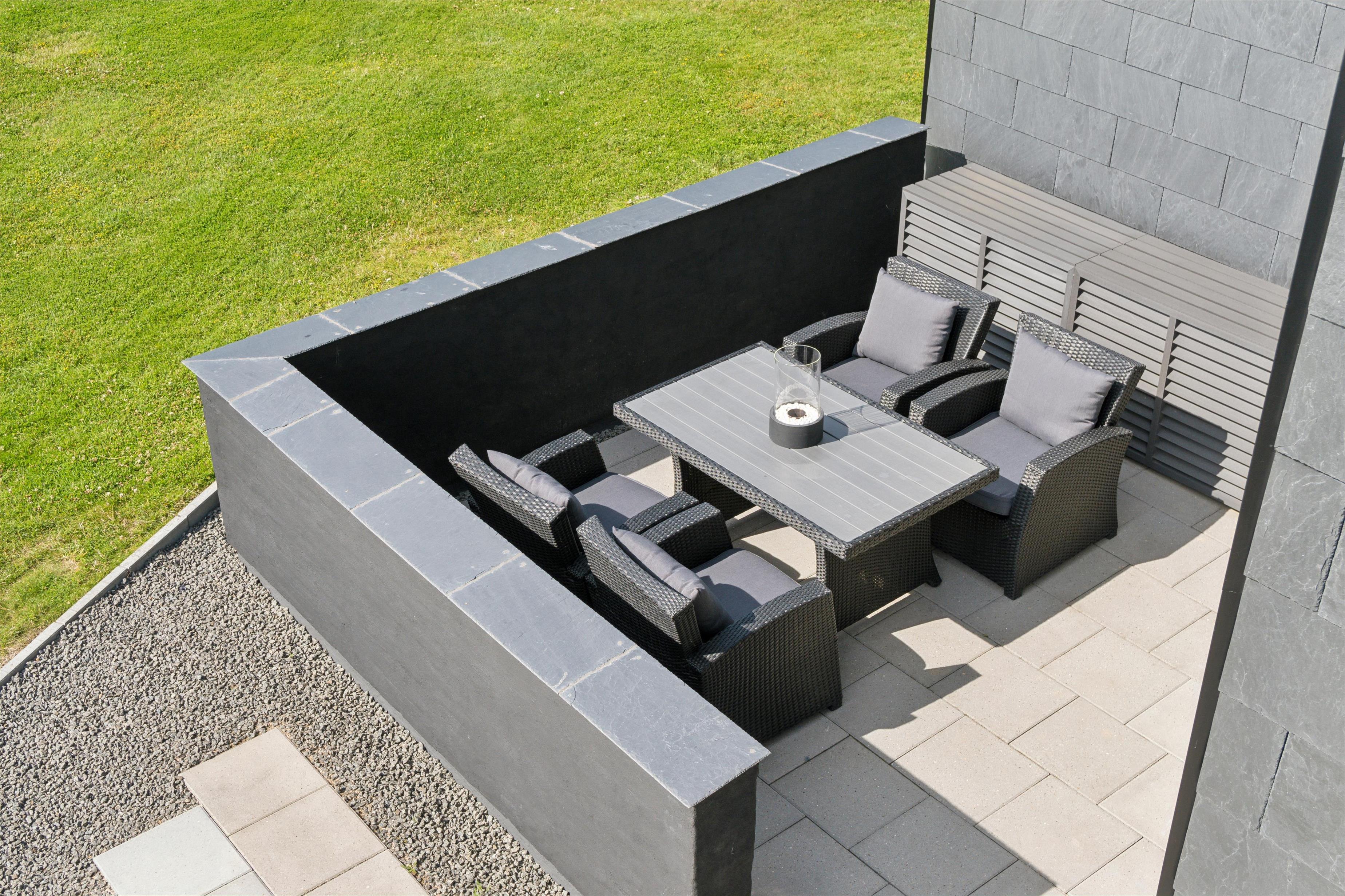 Ud over den imponerende tagterrasse med en fænomenal udsigt over landskabet byder huset på flere dejlige terrasser med gode læ forhold, hvor du kan nyde solen eller en hyggelig grillaften i rolige omgivelser.