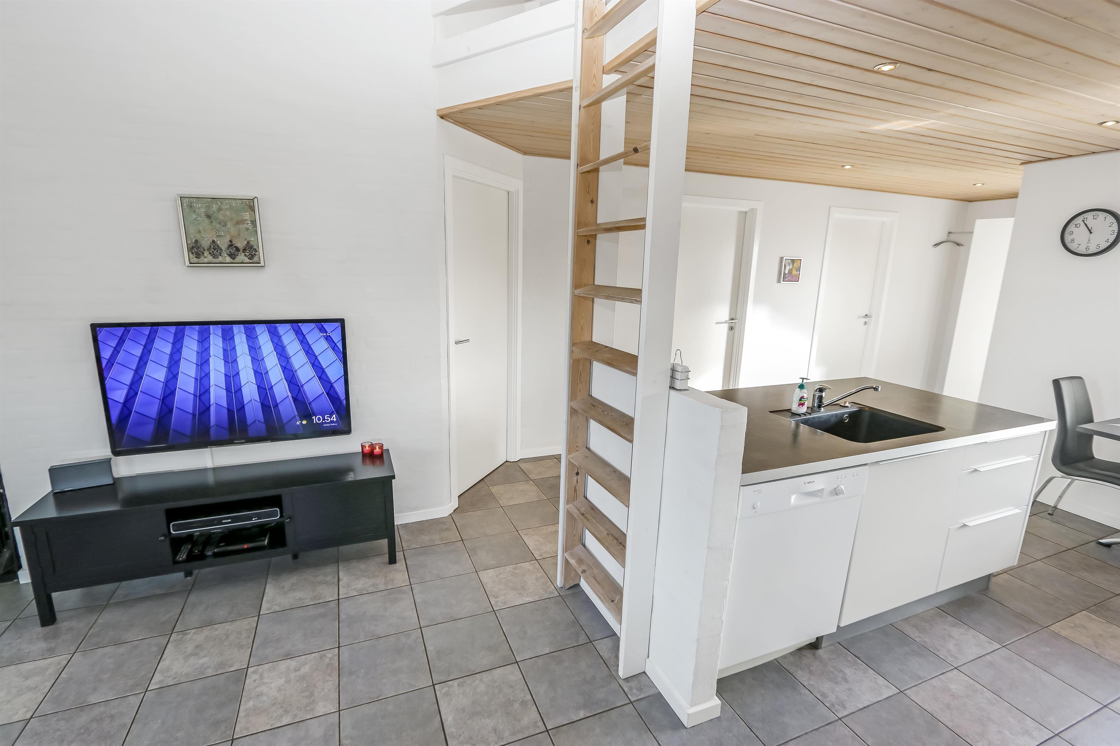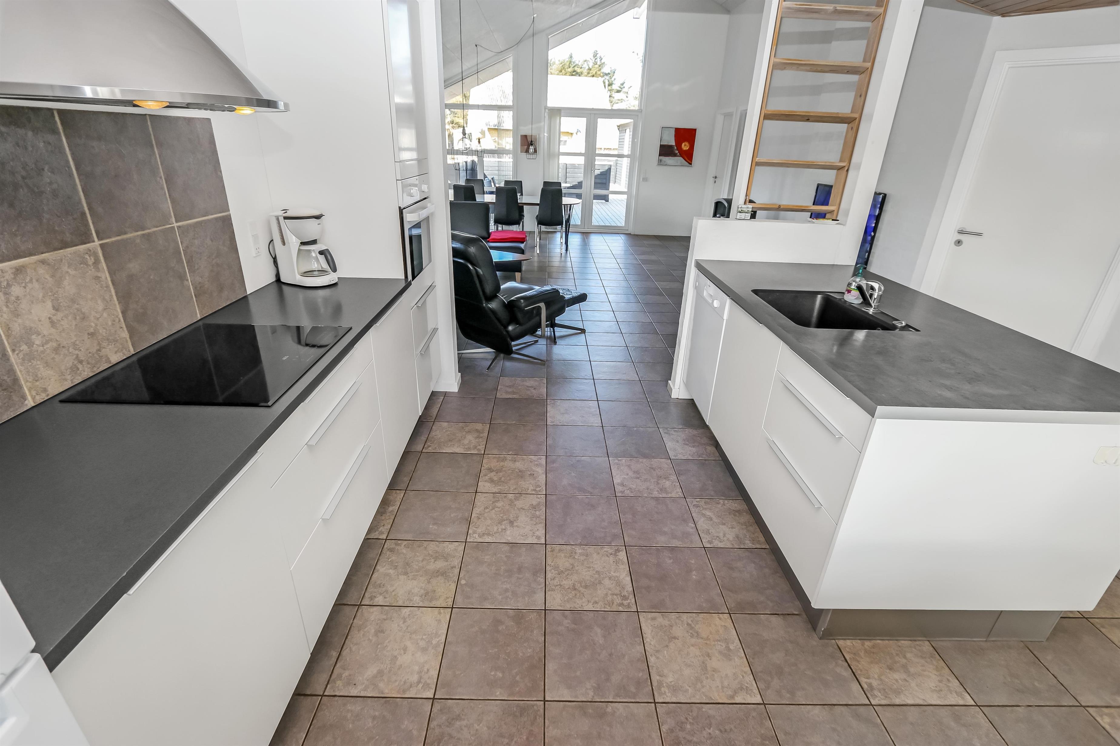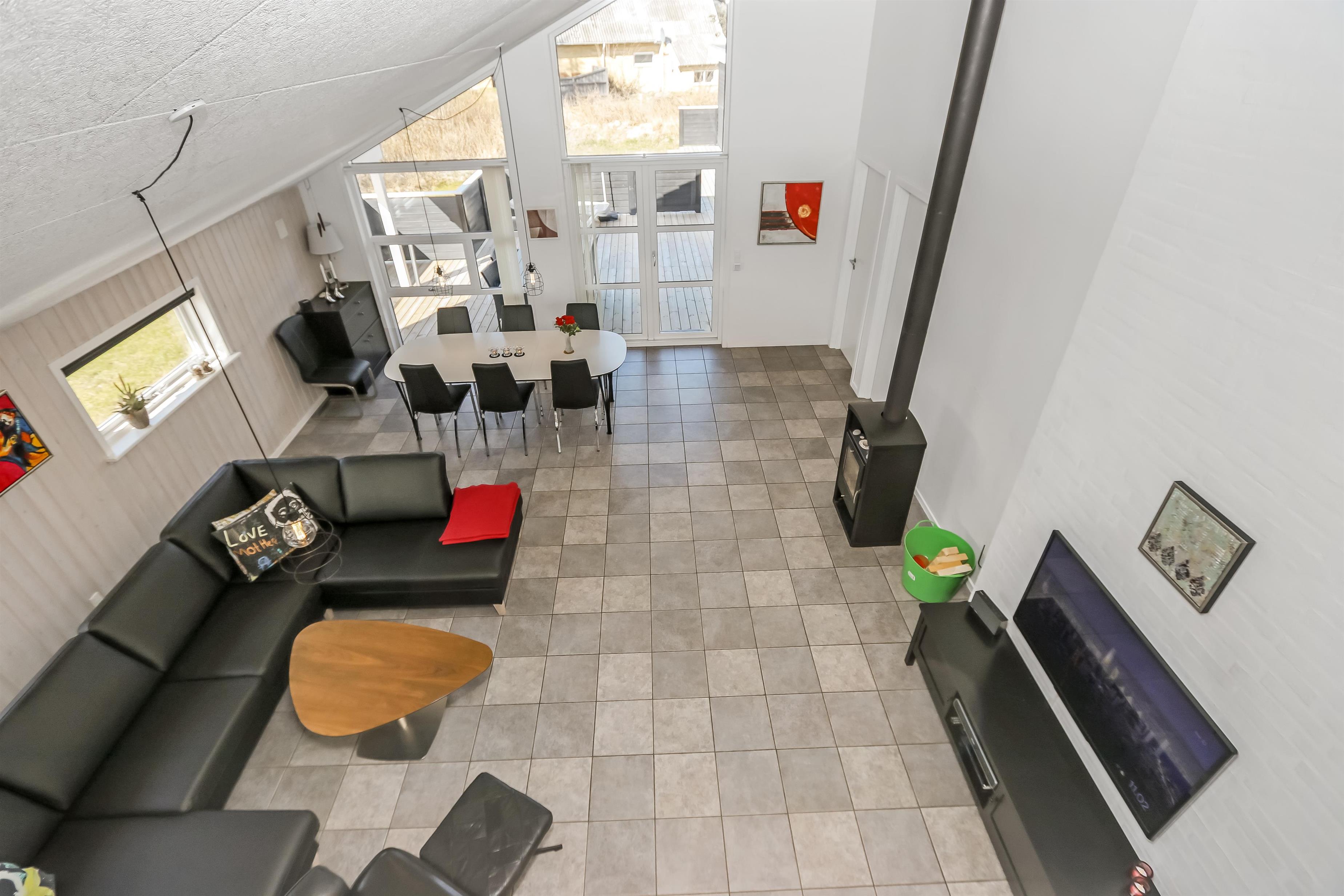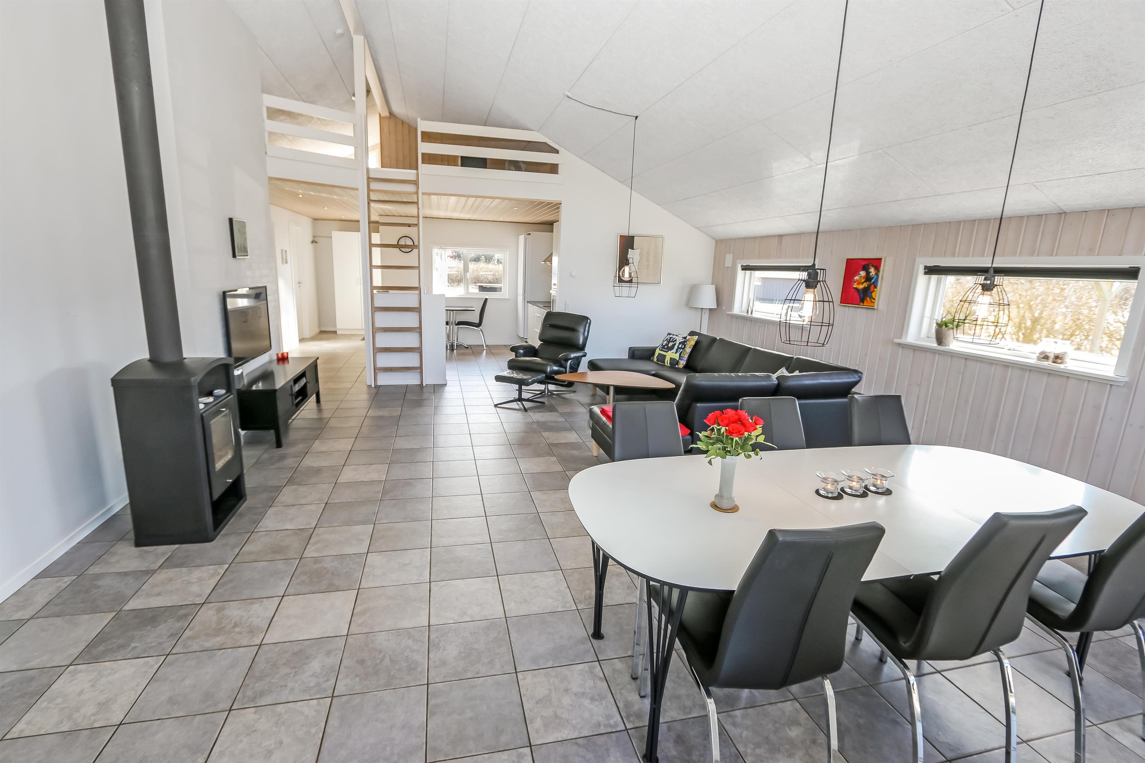 Huset er bygget i 2011, lavet i træ og lever op til hvad man forventer af et moderne sommerhus. Her er 2 store soveværelser med skabsplads, et værelse med 2 enkeltsenge, samt en stor hems, hvor der er 2 sove muligheder. Herudover er der også en barneseng og en barnestol i huset, samt mulighed for at sætte sikkerheds gitter op omkring brændeovnen. Der er behagelig gulvvarme i hele huset. Der er 1 badeværelse og 1 gæstetoilet. På det store badeværelse, er der spabad, sauna, bruseniche, håndvask og toilet. Lige ved siden af, er det lille gæstetoilet med håndvask, toilet samt vaskemaskine og tørretumbler. Opholdsrummet er med køkken, spisestue og stue, som er indrettet i et stort rum, med pænt møblement. Her er også husets brændeovn, som giver god varme og hygge når det er lidt køligere. Køkkenet er veludstyret med køkkengrej og service og har en moderne ø, som gør det til en nemt samtale køkken. Der er blandt andet også glaskeramisk/induktions kogeplader, mikroovn, indbygnings ovn, opvaskemaskine, køleskab og separat fryser på 107 liter. Spisestue afdelingen er med spisebord og stole. Stuen har en dejlig stor sofagruppe og Tv. Se tv på dansk og tysk eller stream din ynglings serie via husets Cromecast. Derudover er der en bluetooth-højtaler, CD og DVD afspiller. På værelserne er der box madrasser med topmadrasser, samt sengetæpper. På alle værelserne er der skabe til tøj. Huset opvarmes med en elvarmepumpe. Dette gør at huset er meget energivenligt og halverer varmeudgiften i forhold til et konventionelt sommerhus. Har man el-bil eller en Plug-In hybrid, så er der Ladeboks ved huset til Type 2 ladestik, der kan lade op til 11 kWh.