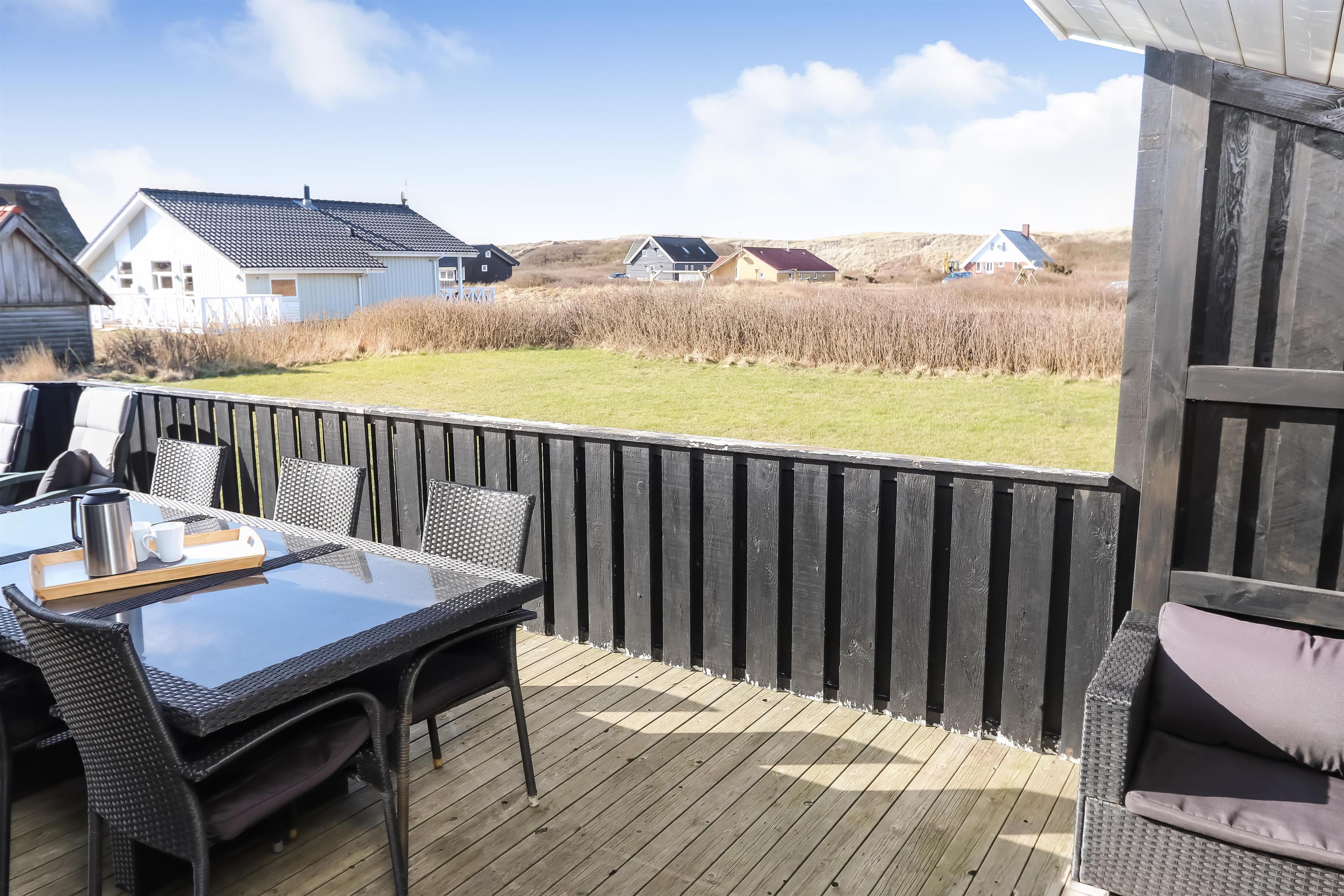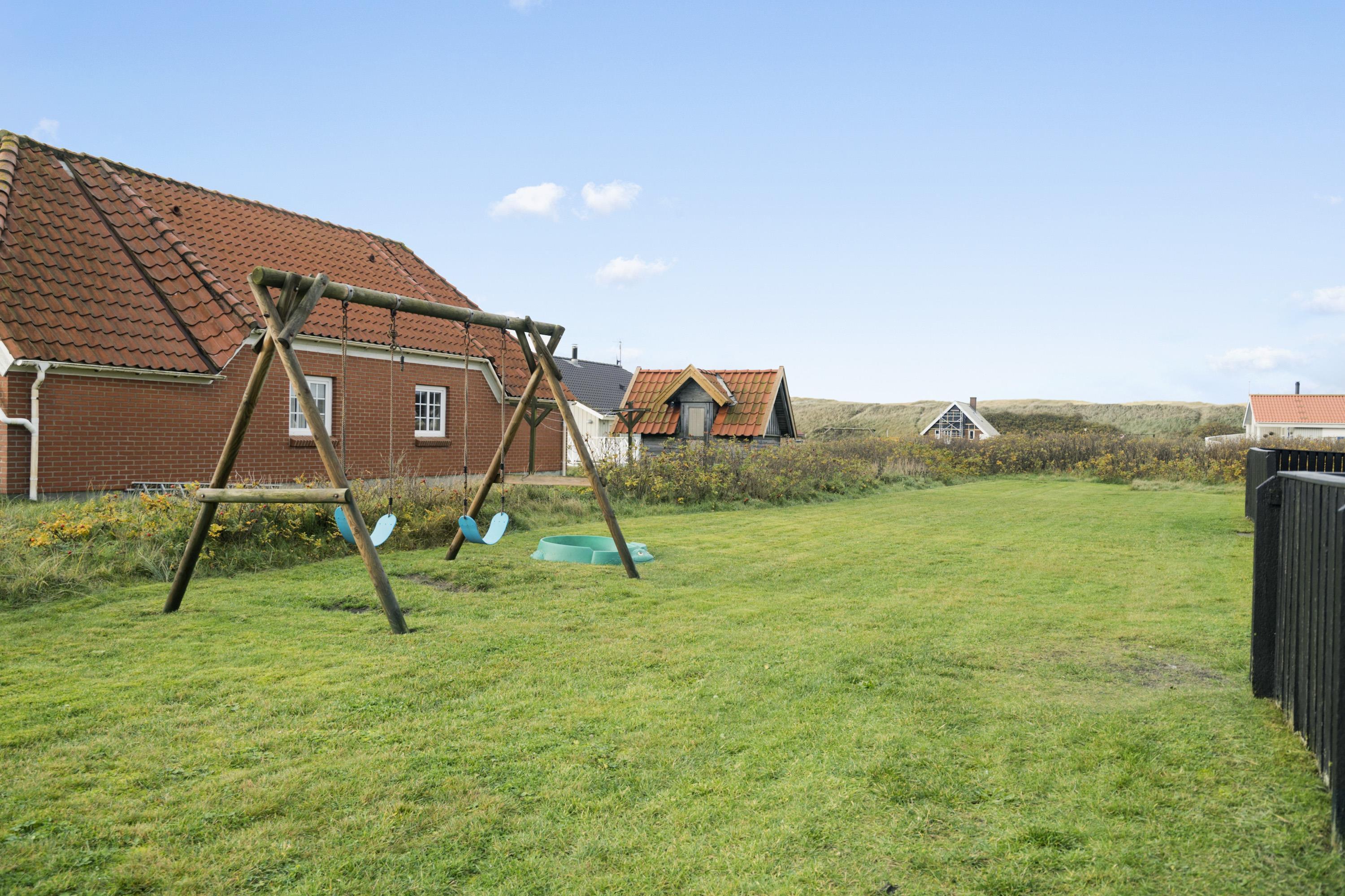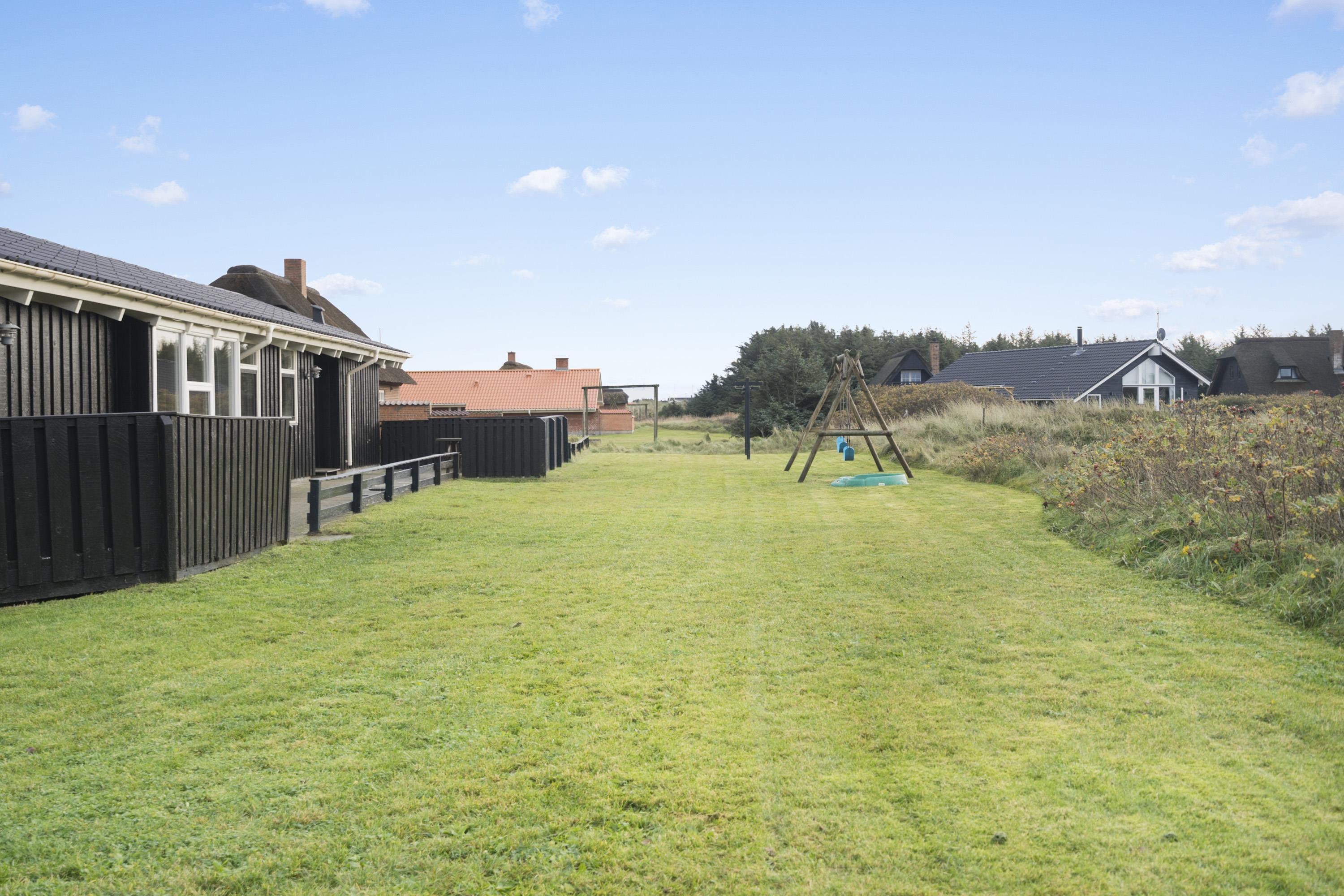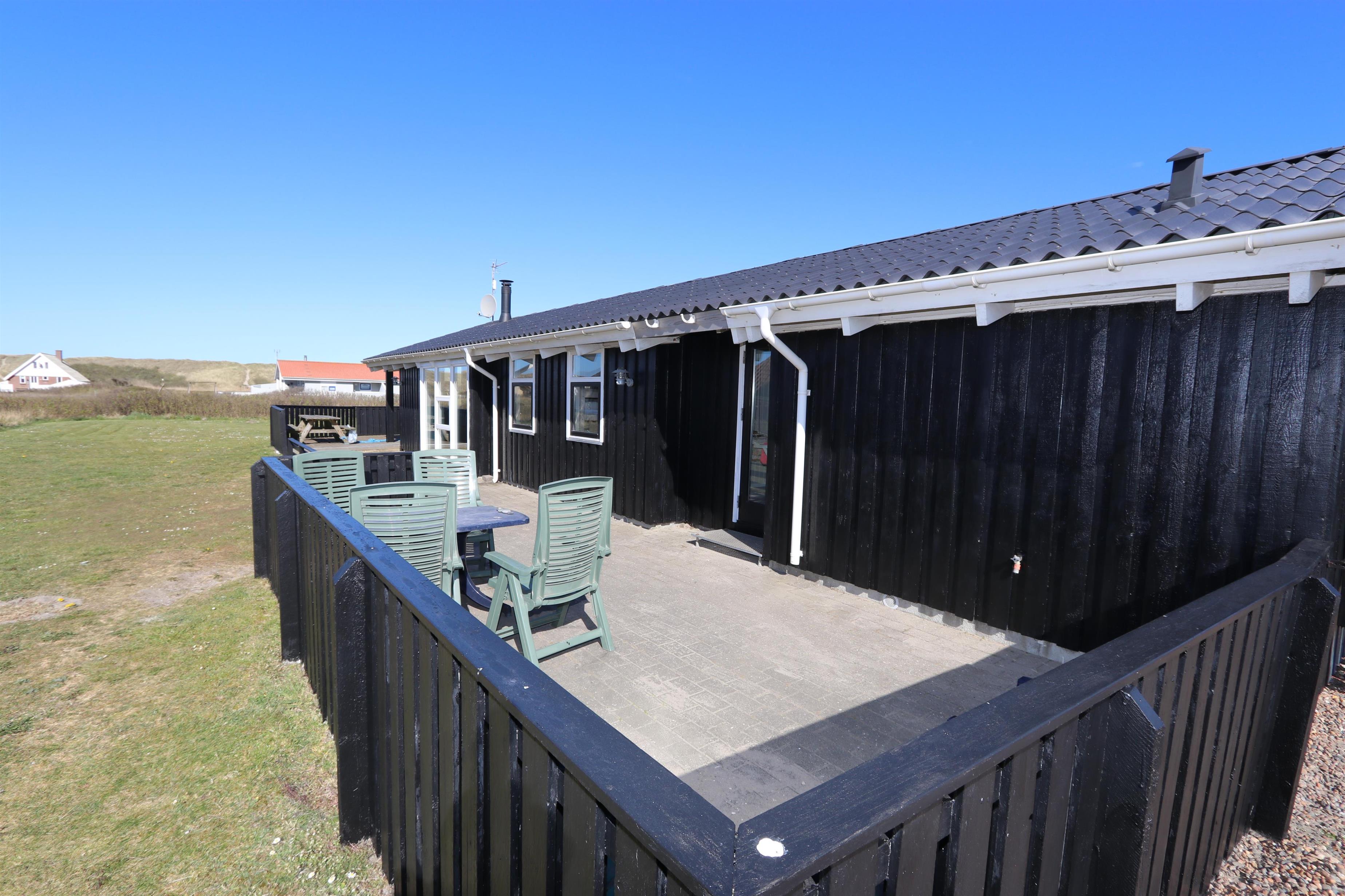 Huset er beliggende på en naturgrund kun 200 m fra det brusende Vesterhav. Terrasse som går langs huset er delvis afskærmet og her er der havemøbler, solvogne og grill. Til børnene er der gynger og sandkasse. Et dejligt hus tpå alle årstider og med aktiviteter både udendørs og inde. Vil man ud at opleve noget af nærområdet, kan et besøg i Klosterheden anbefales. Her findes der mange gode vandre-cykelstier, hvor man kan komme tæt på skovens dyr bl.a. bæverne. Hundeskoven er helt sikkert det sted jeres hund, gerne vil hen og boltre sig.
