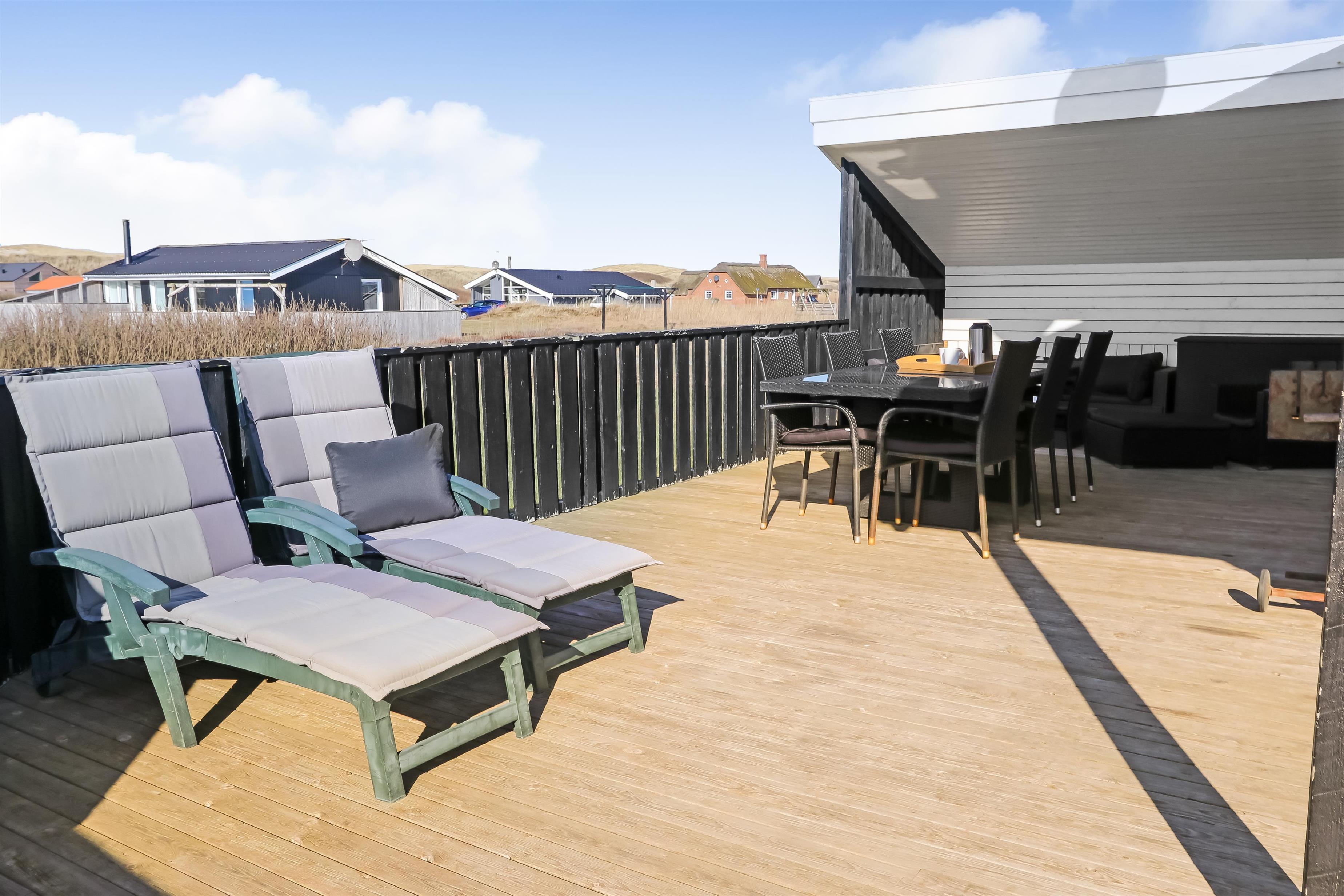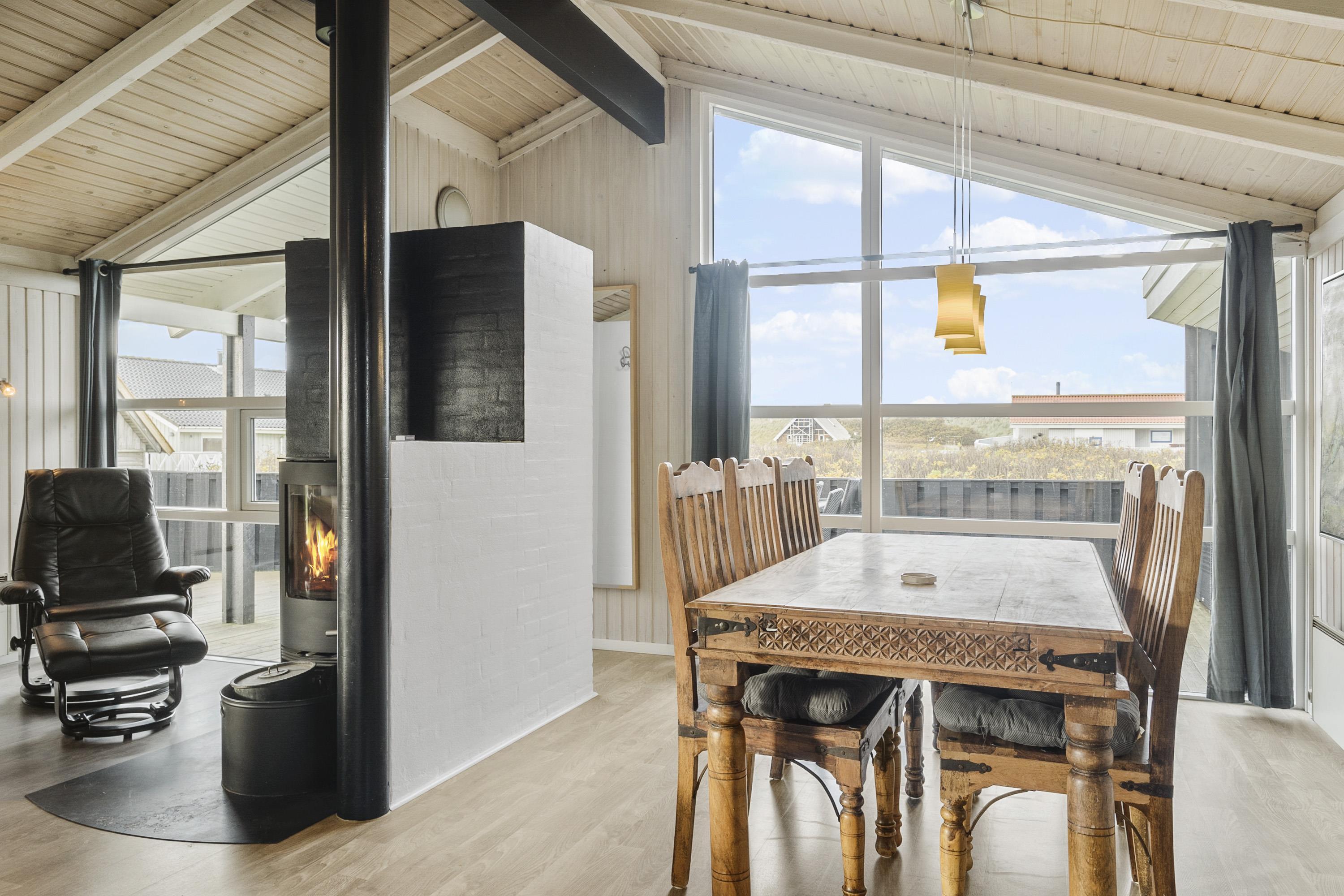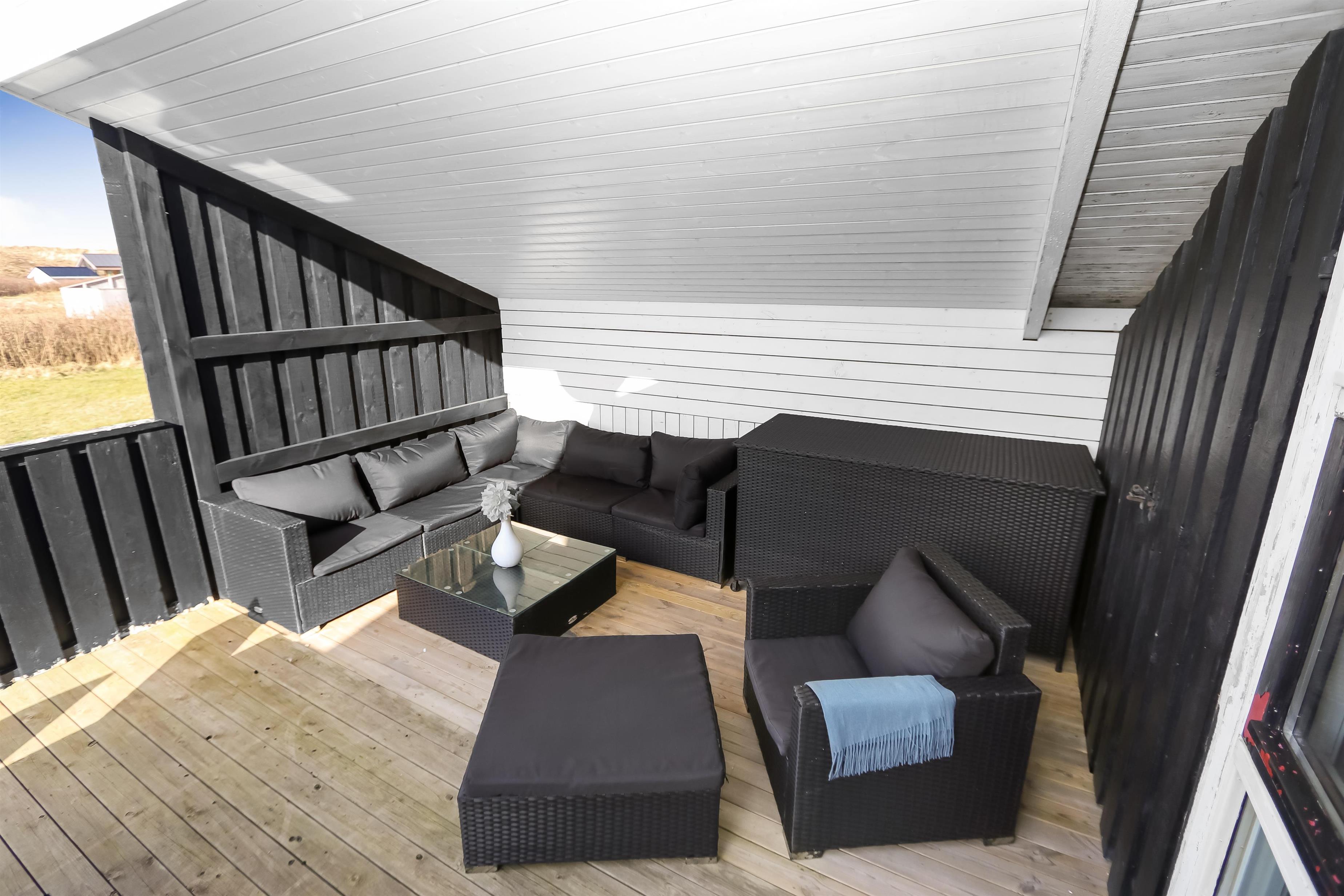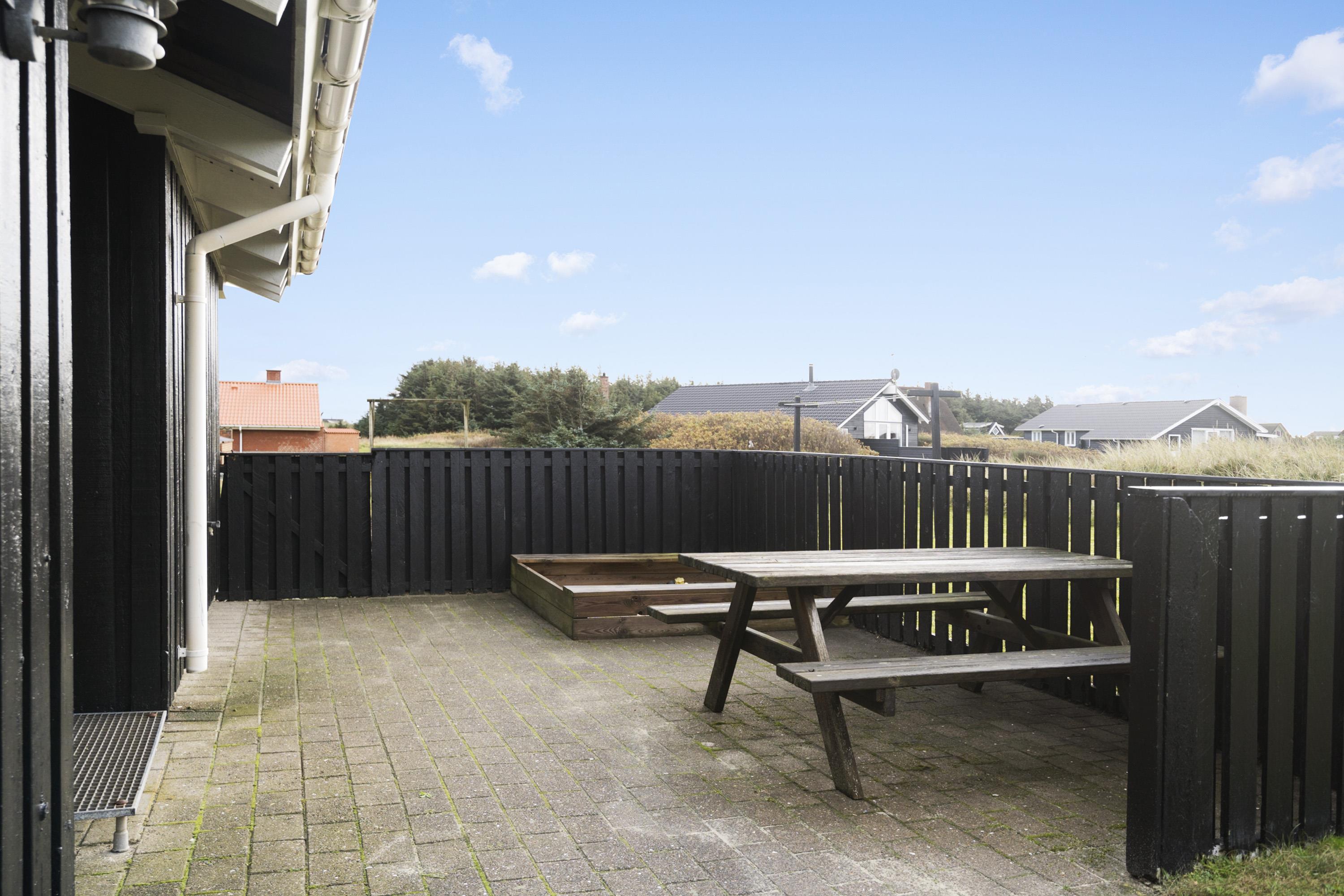 Huset er beliggende på en naturgrund kun 200 m fra det brusende Vesterhav. Terrasse som går langs huset er delvis afskærmet og her er der havemøbler, solvogne og grill. Til børnene er der gynger og sandkasse. Et dejligt hus tpå alle årstider og med aktiviteter både udendørs og inde. Vil man ud at opleve noget af nærområdet, kan et besøg i Klosterheden anbefales. Her findes der mange gode vandre-cykelstier, hvor man kan komme tæt på skovens dyr bl.a. bæverne. Hundeskoven er helt sikkert det sted jeres hund, gerne vil hen og boltre sig.