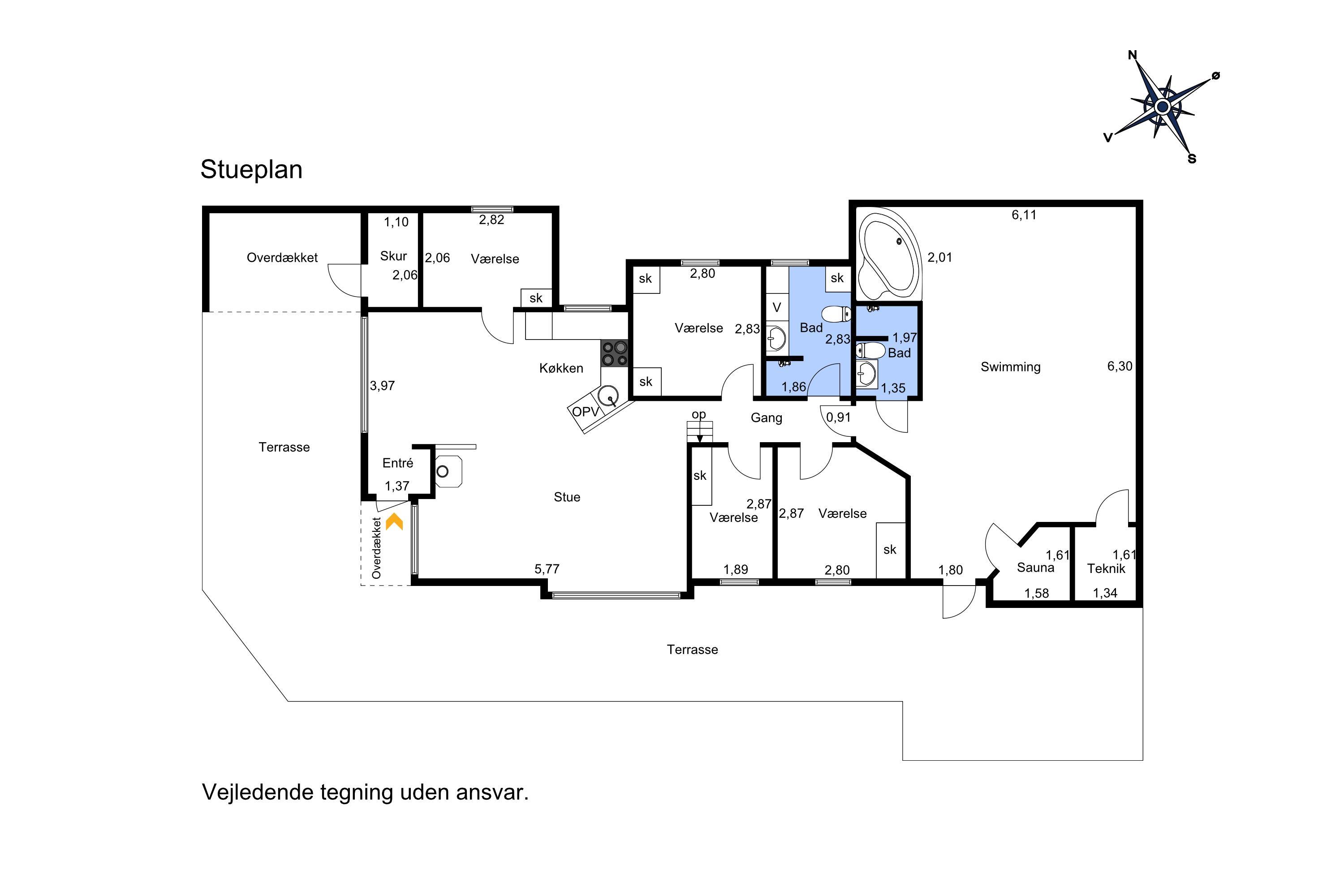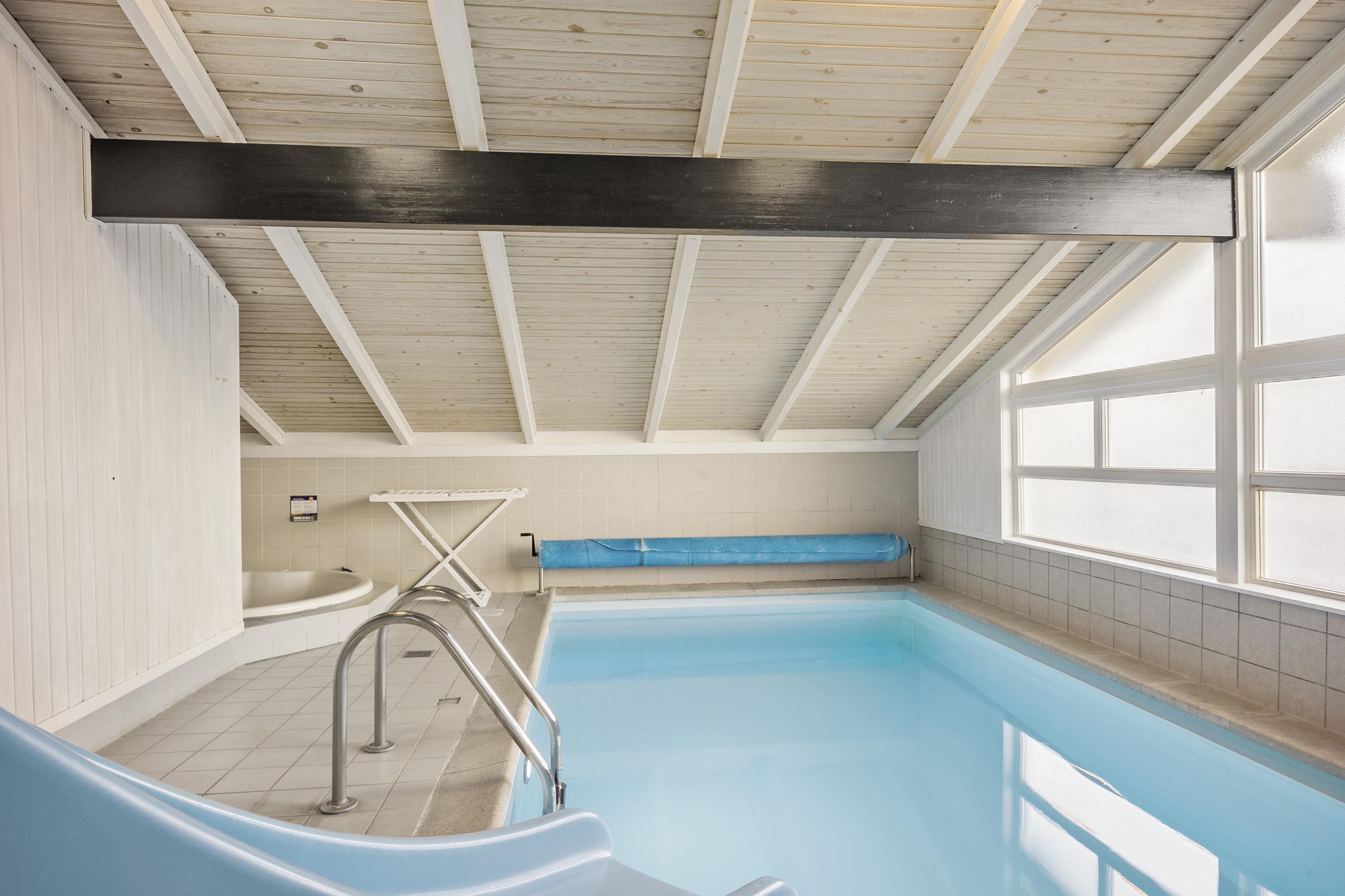 Dejligt feriehus som er lyst og hyggeligt indrettet. Køkkenet er kombineret med stuen og er med komfortable møbler. Stuen er med fladskærms-TV med DR1 og parabol med de tyske kanaler, desuden er der brændeovn. Køkkenet er godt udstyret og indeholder bl.a. opvaskemaskine, mikroovn og køle-fryseskab. 4 soverum med 1DS + 1DS + 2S + 2K (stor seng med en overkøje). Hems med 2 sovemuligheder Der er en barnestol i huset. Poolrummet er med 13 m2 swimmingpool med rutschebane samt et spabad med plads til 4 personer. Husets ene badeværelse er med adgang fra poolrummet og er med bruser, toilet, håndvask samt sauna. Husets andet badeværelse er ligeledes med toilet, håndvask samt bruser, og her er husets vaskemaskine også. 2 hunde er tilladt. Depositum vintersæson kr. 4500 og sommersæson kr. 2200