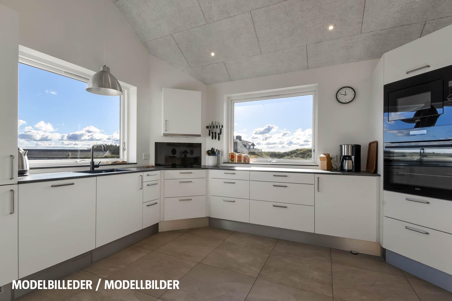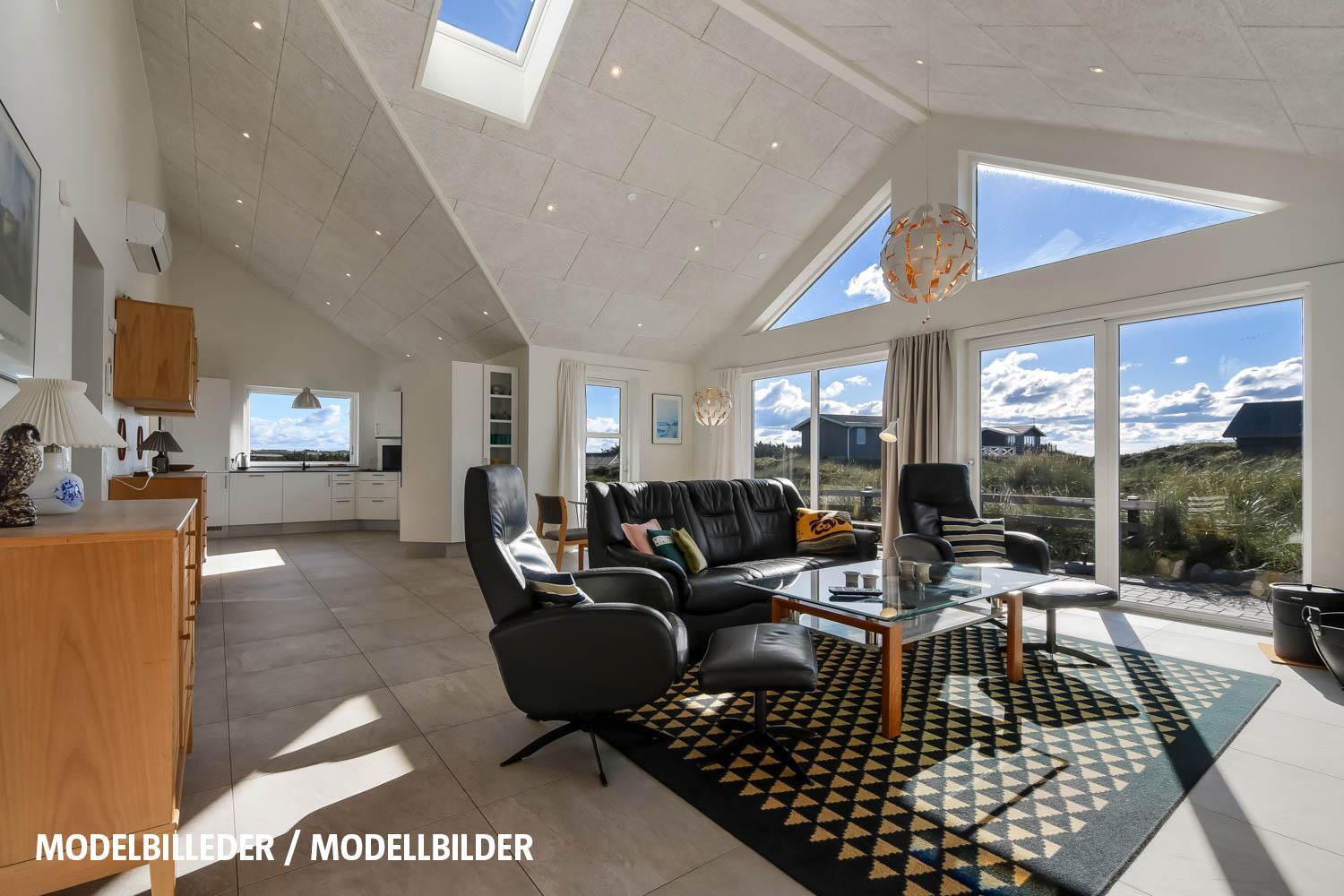 Dette feriehus har en unik beliggenhed, fantastisk udsigt til klitterne og liger kun 50 m fra Vesterhavet. Huset er 134 m2, minimalistisk i sit udtryk og praktisk indrettet. En flot entré indeholdende skabe, ekstra håndvask samt vaskemaskine og tørretumbler byder velkommen. Køkken / alrummet er med loft til kip og klinkegulv med gulvvarme. Fra opholdsstuen er der udsigt til klitterne. Indretningen byder bl.a på smart-TV, med mulig for streaming af TV / radio / Apps, nye lædermøbler, og spisebord. Slap af foran den knitrende brændeovn som sammen med varmepumpen hjælper med at reducere udgiften til varmeregningen. Dejligt køkkenhjørne med alt i service og køkkengrej, opvaskemaskine, keramisk kogeplade, indbygningsovn, emhætte, køleskab med fryseboks og mikroovn. Stort, lækkert badeværelse med bruseniche, håndvask, toilet, direkte adgang til sauna og klinkegulv med gulvvarme. Huset har 3 fine soveværelser med klinkegulv og skabe (1DS, 1DS, 1DS). fra fororældre soveværelset er der adgang til et ekstra badeværelse med bruser, toilet, håndvask og klinkegulv med gulvvarme. Ydermere er der en hems til begejstring for børn og barnlige sjæle. Der er gratis trådløs internetadgang. I den opvarmet garage er der aktiviteter til rådighed som bordtennis, bordfodbold, billard samt siddepladser. Rygning er ikke tilladt. Husdyr må ikke medbringes.