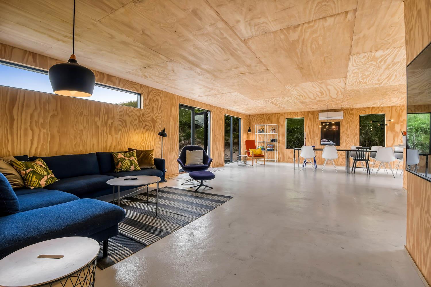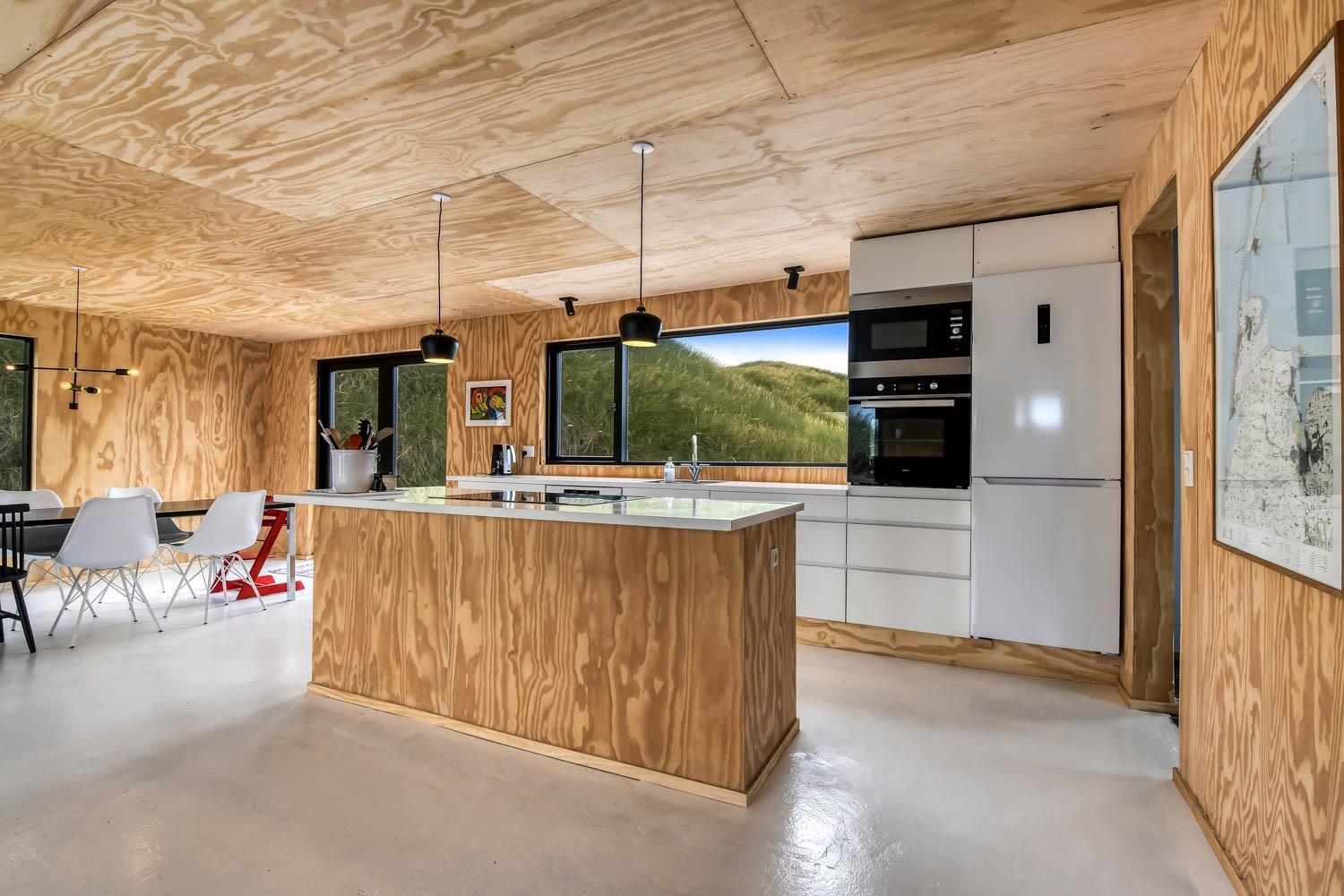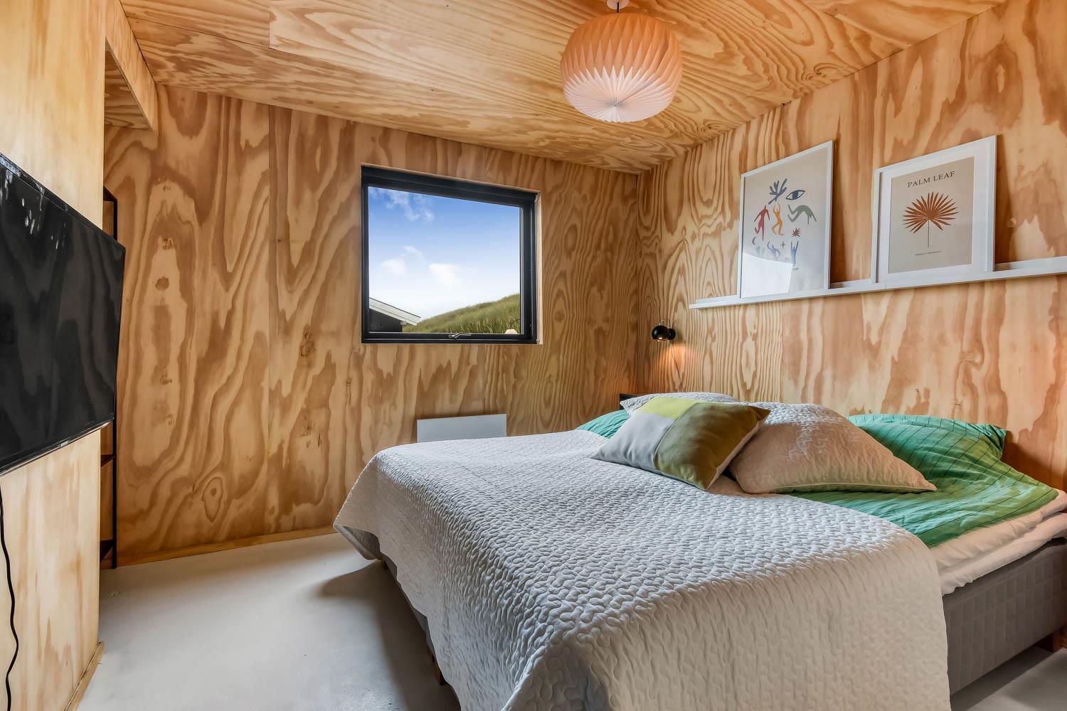 Dette nyrenoverede alternativ indrettet feriehus i træ er indrettet med en kombineret stue og køkken. Stuen er indrettet med polstermøbler, spisebord og en varmepumpe som er med til at mindske udgiften på el-forbruget samt et TV med fibernet-kanaler med tyske og danske programmer. Køkkenet er udstyret med induktions-kogeplade, indbygningsovn, køle-/fryseskab og en opvaskemaskine. Der er 3 gode soverum som hver er indrettet med en dobbeltseng, hvoraf 2 af værelserne har dobbelt senge 180x200 og det sidste værelse 140x200. 1 badeværelse med toilet, håndvask, bruser og gulvvarme. Et gæstetoilet med toilet og håndvask. Desuden er der en vaskemaskine og tørretumbler i huset. Der er gratis fibernet og 1 husdyr er tilladt. Ikke rygerhus.
