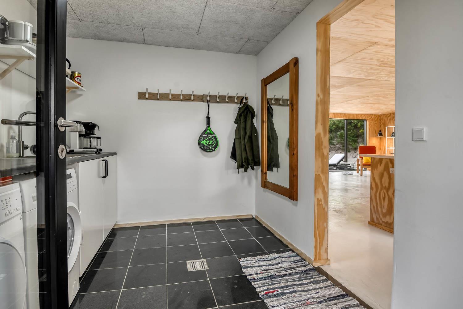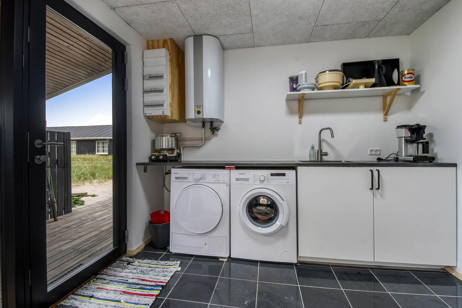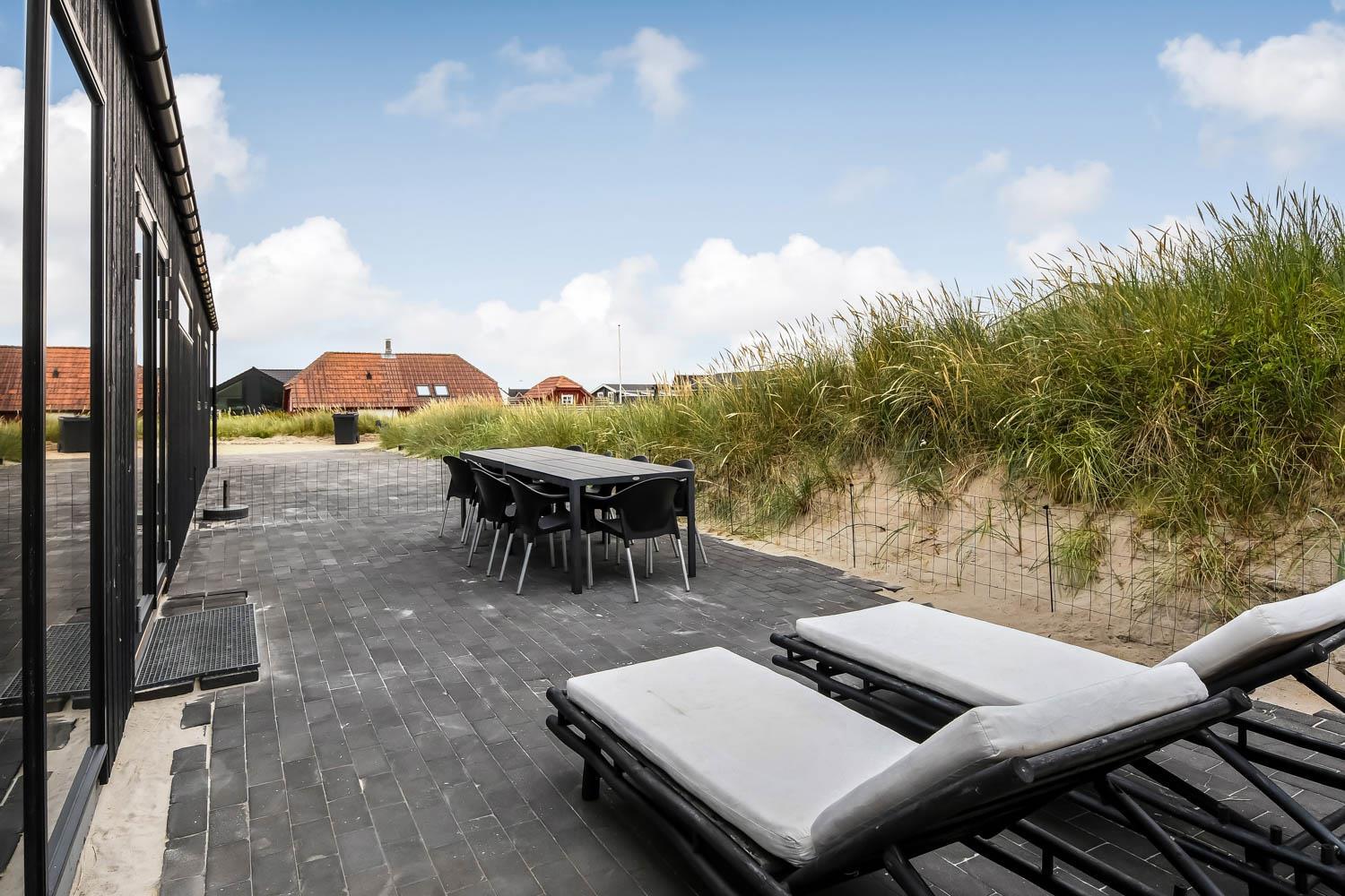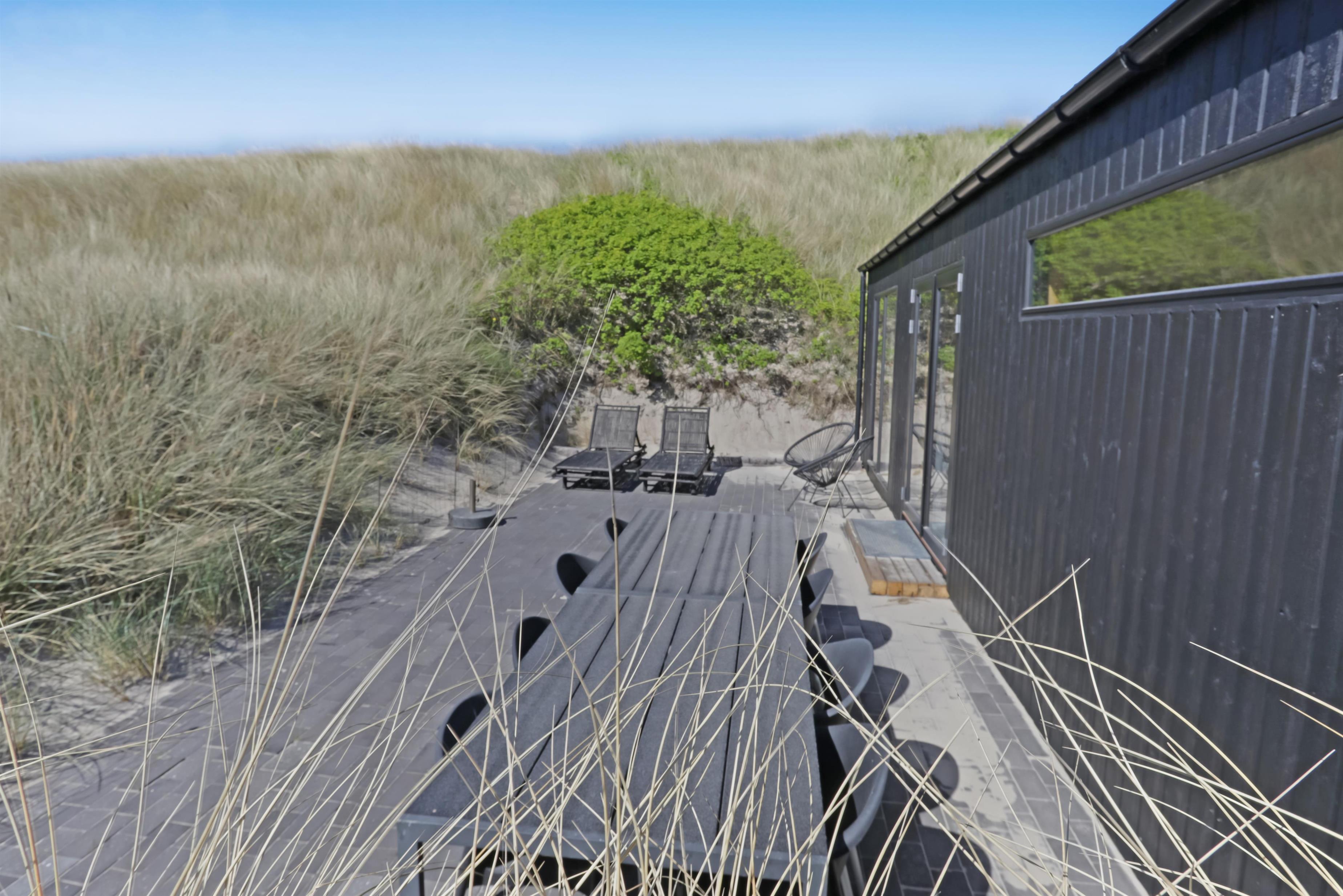 Huset er beliggende på en ca. 1400 m2 klitgrund helt op af diget ved Vesterhavet i Vrist. Der er en skøn terrasse som går helt op til klitterne, her er der havemøbler, gasgrill samt solvogne som kan flyttes rundt efter behov. Er man på terrassen kan man høre Vesterhavets brusen og husets beliggenhed gør at det er nemt at komme på stranden som blot ligger ca. 50 m fra huset. Der er en markeret sti som skal følges for at komme til stranden, ophold og klatren i klitterne bag huset og langs grunden er ikke tilladt, da det ødelægger bevoksningen og øger sandflugt. Vesterhavet byder hver dag på nye maleriske oplevelser og der findes mange forskellige aktiviteter som kan gøres på stranden, såsom at bade, fiske, bygge sandslotte, flyve med drager, samle sten og rav eller blot sidde og nyde tilværelsen og mærke vinden, sand og saltet i ansigtet. Fra huset er der kun en kort køretur til fiskerbyen Thyborøn som byder på gode spisesteder, butikker og attraktioner. Ligeledes er der ikke langt i bil til Lemvig som har en skøn havnepromenade, gode butikker og flere gode restauranter. Et hus for dem som ønsker sig en skøn beliggenhed næsten på stranden.