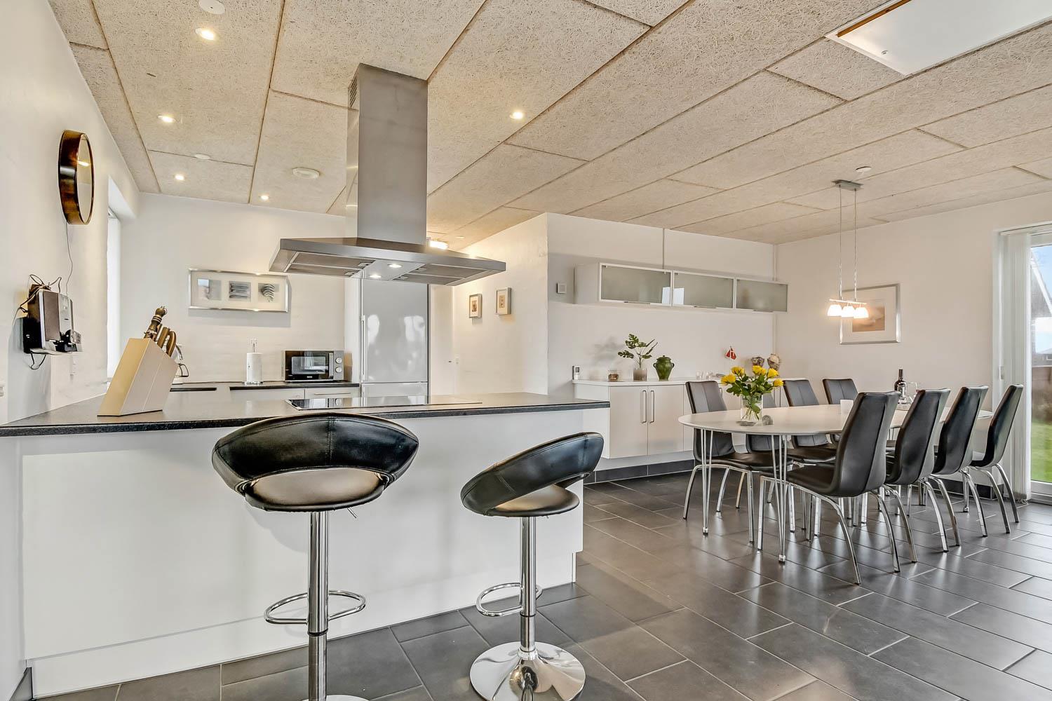 Dette smagfulde og lyst indrettede stenhus med pool er beliggende tæt på Vesterhavet( kun 300 m) og meget velegnet til 2 familier. 2 hunde er velkomne i huset. Lader til el-bil og gratis internetadgang.Huset er opvarmet af jordvarme og på taget er der solceller, som hjælper til en billigere strøm.