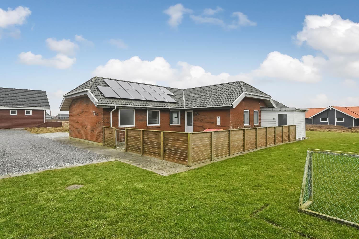 Huset er beliggende på en dejlig naturgrund med udgang til 2 terrasser hvor der selvfølgelig er havemøbler, solvogne og grill. Den ene terrasse er indhegnet. Til de små gæster er der legeborg med gynger, rutsjebane og en sandkasse. Fra huset er der ikke langt at gå for at komme op til den dejlige strand og Vesterhavet. Skulle man få lyst til at opleve noget af det, området ellers har at byde på, er der ikke langt at køre for at komme f.eks til Lemvig. En skøn og flot by med lidt af hvert at byde på, med bl.a. en dejlig havnepromenade, en gågade med gode butikker der indbyder til shopping, samt en skaterbane, som er gratis at benytte. Fra Lemvig har man også muligheden for at gå en tur på Planetstien, som starter ved Lemvig Museum og strækker sig over 12 km.