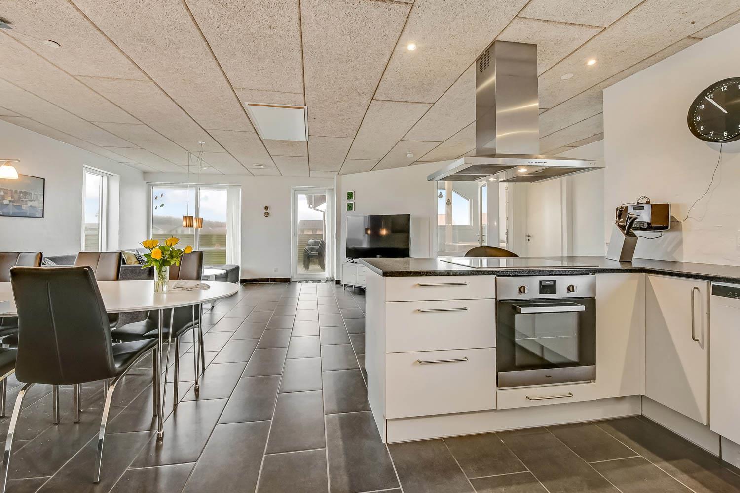 Totalrenoveret feriehus som er indrettet med et dejligt og meget funktionelt køkken, som er kombineret med stuen. Køkkenet er selvfølgelig med elkeramisk kogeplade og indbygningsovn, opvaskemaskine og mikroovn samt et køle-fryseskab (70 l fryser). Stuen er med komfortabel møblering og her finder du fladskærms-TV med DR1 og TV2 samt en parabol, hvorfra man kan tage de tyske programmer, DVD og stereoanlæg. 4 gode soverum med 1DS + 1DS + 1DS + 4K. Til de mindste er der barnestol og barneseng til rådighed. Huset er med 2 badeværelser, hvor det ene er med håndvask, bruser og toilet samt vaskemaskine og gulvvarme. Det andet er med direkte adgang fra poolrummet og med bruser, toilet, håndvask samt adgang til saunaen, dette badeværelse er selvfølgelig også med gulvvarme. Der er samme klinkegulv med gulvvarme, som går gennem hele huset. Poolrummet består selvfølgelig af selve poolen og har desuden et spabad til 4 personer. Har man el-bil eller en Plug-In hybrid, så er der ved Ladeboks til Type 2 ladestik, der kan lade op til 11 kWh. 2 hunde er tilladt. Dette hus er et ikke rygerhus. Depositum vintersæson kr. 4500 og sommersæson kr. 2200.