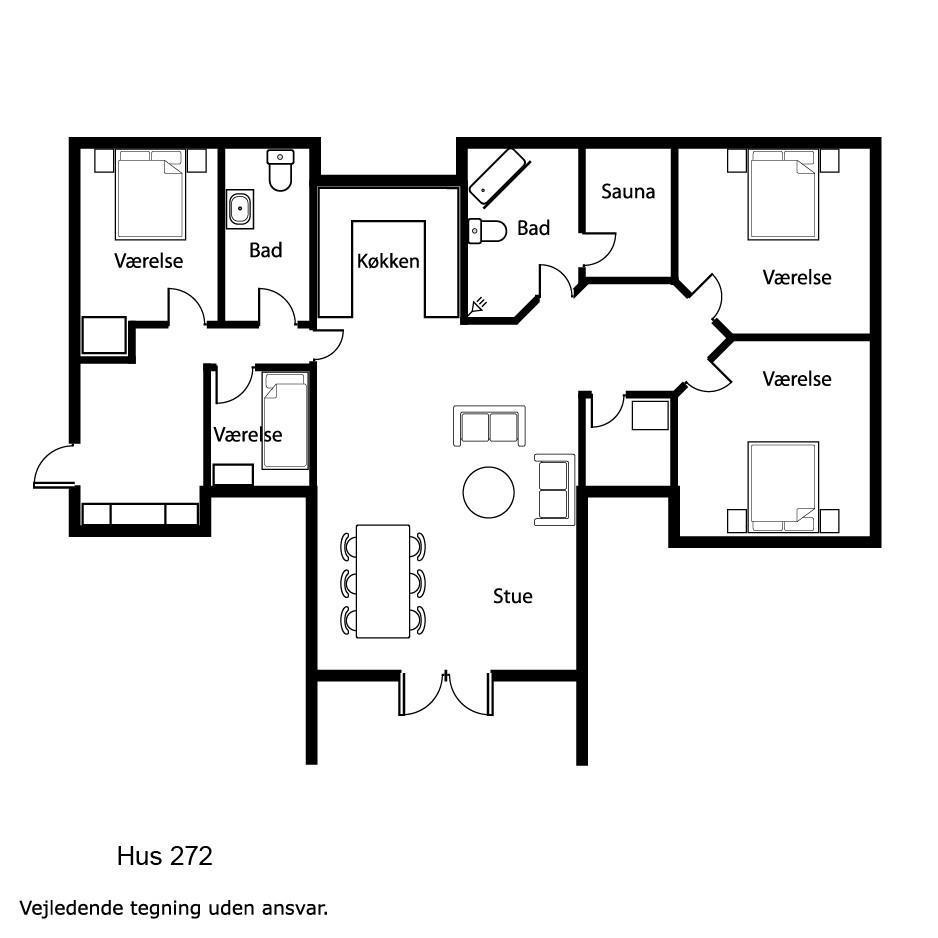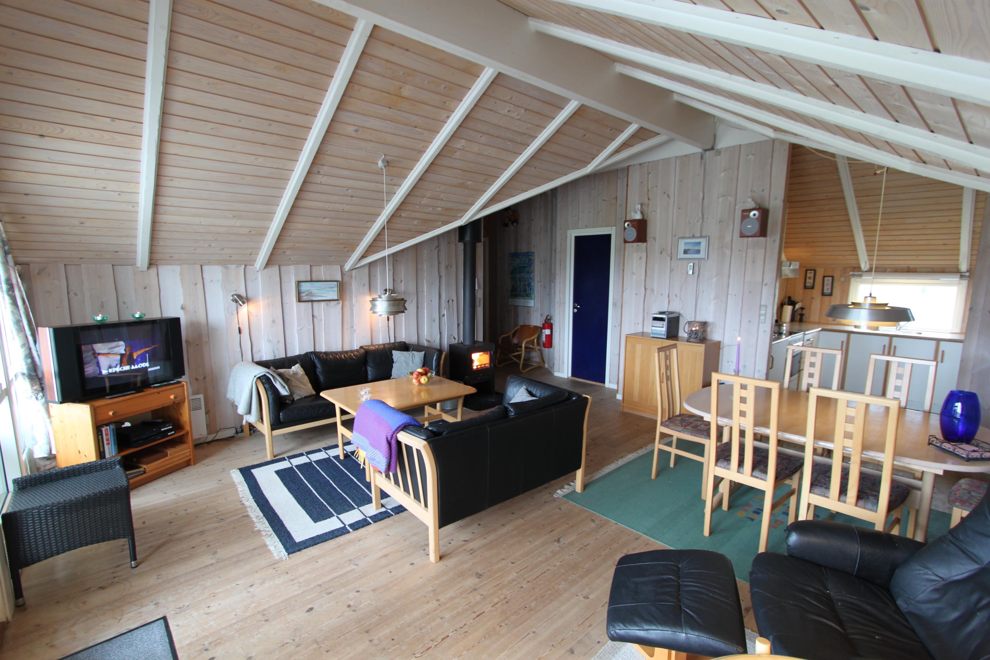Dette dejlige feriehus i træ er lyst og venligt med ludbehandlede lofter og vægge samt trægulve med løse tæpper, det store vinduesparti i stuen giver et godt lysindfald i rummet. Der er 2 badeværelser i huset som begge er klinkebelagte, der er selvfølgelig toilet, håndvask, bruser og gulvvarme, og det ene badeværelse har spa og sauna. Stuen som er indrettet med lædermøbler har desuden et Smart-TV med chromecast og mulighed for at streame kanaler, som man selv har et abonnement til. Parabol dog kun med tyske kanaler. Desuden er der en brændeovn som sammen med varmepumpen sørger for en behagelig varme og begge er medhjælpende til at forbrugsregningen blir billigere. Køkkenet er særdeles veludstyret og er indrettet med glaskeramisk komfur, emhætte, køle-/fryseskab, mikroovn, vaskemaskine, tørretumbler og opvaskemaskine. 4 soverum: DS + DS + 2 køjesenge + 2 ES.2 husdyr er tilladt. Ikke rygerhus.