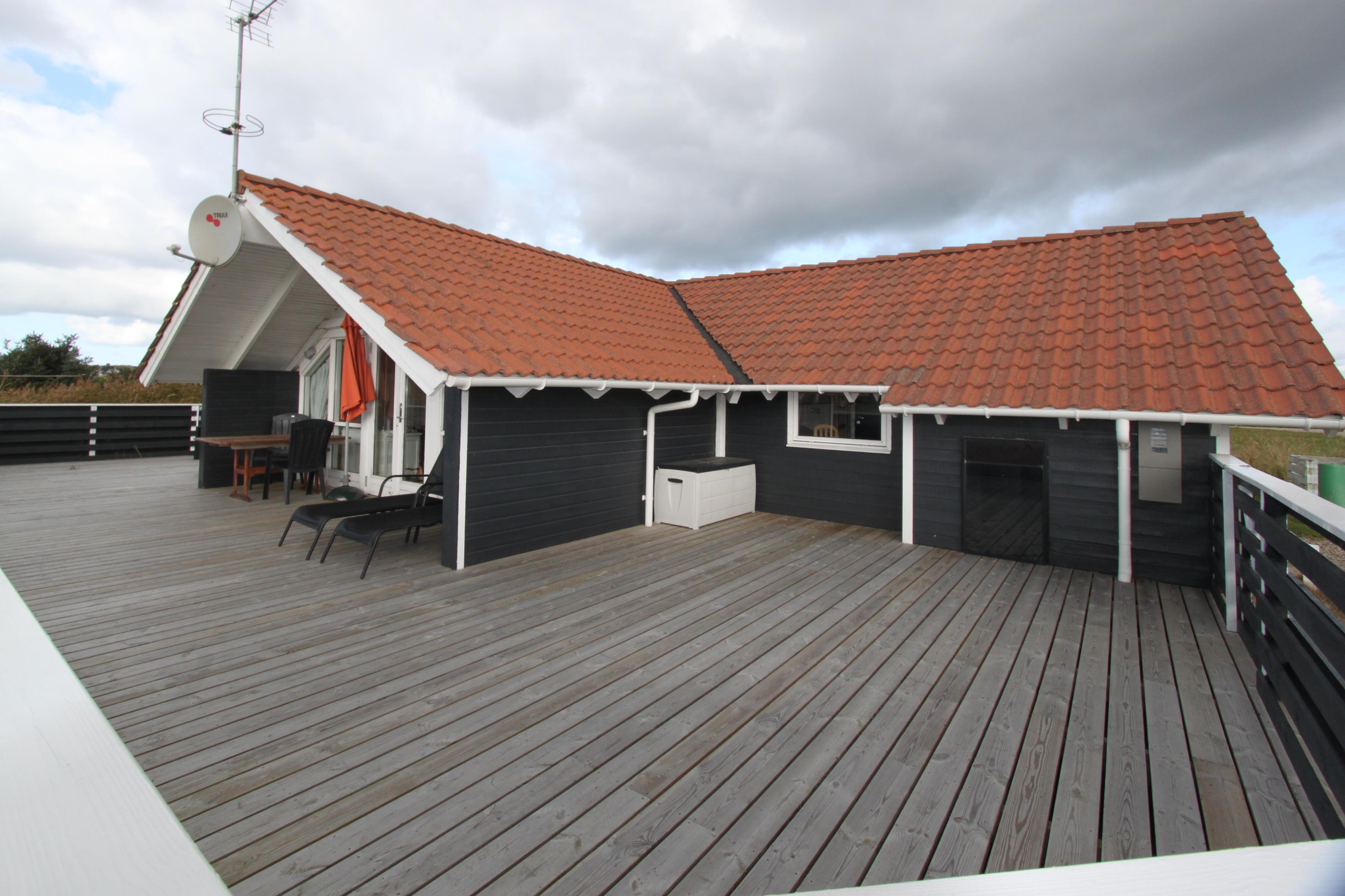 Huset er beliggende på en 1260 m2 naturgrund. Der er en dejlig stor 50 m2 lukket træterrasse, som er delvis overdækket, med havemøbler og liggestole. Til børnene er der gynge. Huset ligger 200 m fra Vesterhavet som altid er et besøg værd, her er der mange aktivitetsmuligheder, såsom fiskeri, bygge sandslotte og bade eller blot sidde og nyde den flotte udsigt over Vesterhavet. Selve området omkring feriehuset er velegnet til vandre og cykelture, der findes rigtig gode cykelruter i området. Ønsker man andet i ferien kan man besøge fiskerbyen Thyborøn som byder på gode shoppingmuligheder, attraktioner og restauranter. Man kan også vælge at køre en tur til handelsbyen Lemvig hvor der findes en dejlig havnepromenade med legeplads, I Lemvig er der også gode shoppingmuligheder og restauranter, desuden findes der museum og en skaterbane. Dette sommerhus er perfekt for en familie som gerne vil bo i naturen tæt på Vesterhavet.