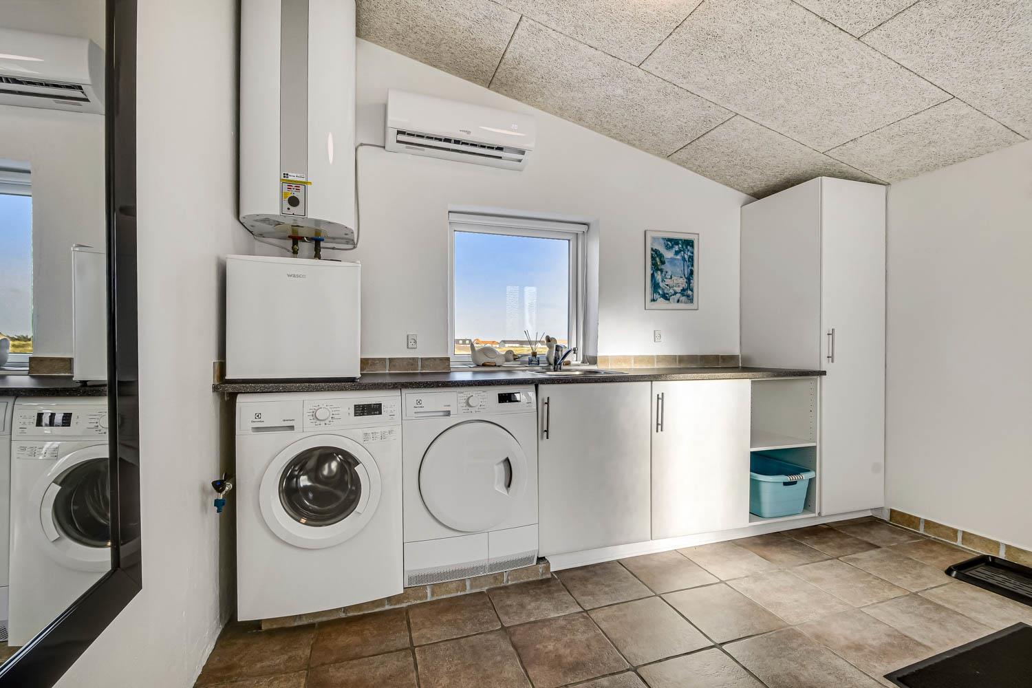 Renoveret sten feriehus på 133 m², lyst og venligt indrettet i tidsløse farver. Lækkert bryggers med håndvask, mikroovn, tørretumbler og vaskemaskine byder velkommen. 4 soveværelser (1DS, 2ES, 2ES, 1ES). Køkken med alt i hårde hvidevarer samt service/køkkengrej. Glas keramiske kogeplader, emhætte, indbygningsovn, køleskab og fryser, her er også en hyggelig spisekrog. Stort opholdsrum med spisebord, lædermøbler, hjørne sofa, radio og TV med danske og tyske kanaler og mulighed for brug af Chromecast. En dejlig brændeovn og to varmepumper holder alle varme uanset vejr og vind og sparer samtidig på strømregningen. Udestue med ekstra siddepladser. Dejligt badeværelse med toilet håndvask og badekar med bruser ekstra badeværelse med toilet, håndvask, bruseniche og klinkegulv med gulvvarme. Ekstra fjernsyn med Chromecast i det store værelse, på enkelt værelset er et lille fjernsyn med dvd og spillekonsol. Praktiske rengøringsvenlige gulve i hele huset. I skuret finder I bl.a. grillen, havehynder, parasol, spil og legeredskaber. Huset er meget energivenligt feriehus som netop er blevet energioptimeret med efterisolering af alle hulmure. Husdyr er ikke tilladt. Ikke ryger hus.