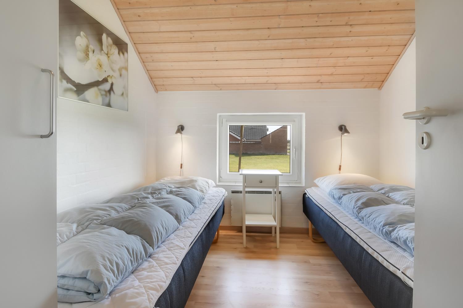 Det åbne køkken med opholds- og spiseplads er det naturlige samlingspunkt i dette feriehus. Her finder du spisebord, sofa, brændeovn, smart internet-tv med danske (DR1, TV2) og tyske programmer (satellitmodtagelse) samt dvd-afspiller. Med CD-afspilleren kan du lytte til musik i stuen eller gennem højttalerne i poolrummet. Gratis WiFi til streaming, hvis du medbringer en passende enhed. Køkkenet er udstyret med alle de bekvemmeligheder, du kan forvente hjemmefra: køleskab og fryser, keramisk kogeplade, mikroovn og opvaskemaskine. Der er også en separat 50 liters fryser. “Genvex” stueventilation sikrer et godt indeklima. Stuen fører til poolrummet med et behageligt opholdsområde og et 4-personers spabad. Poolen måler 5,50 x 3,00 x 1,40 meter. Herfra er der adgang til badeværelse med gulvvarme, toilet, håndvask, bruseniche og sauna. Der er 4 soveværelser, bestående af 2 værelser med hver 1 dobbeltseng (1 DB + 1 DB), 1 værelse med 2 enkeltsenge (2 EB) og 1 værelse med 2 køjesenge til 4 sovepladser. En høj stol er tilgængelig. I denne del af huset er der endnu et badeværelse med bruseniche, toilet og håndvask. Der er vaskemaskine og tørretumbler i indgangspartiet. Et kæledyr er tilladt. Ikke-ryger hus. Depositum DKK 2200 i sommersæsonen og i vintersæsonen kr. 3.000.