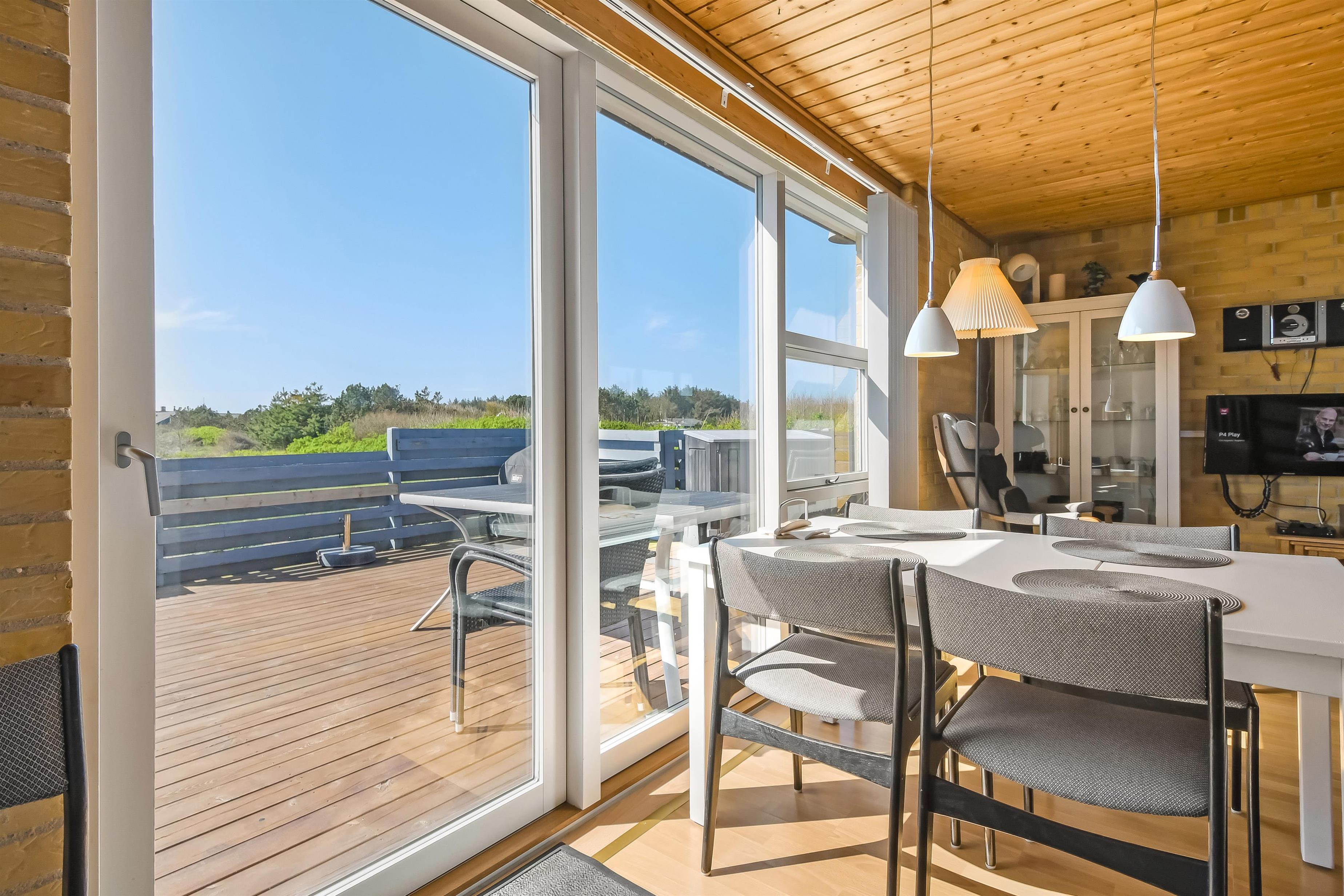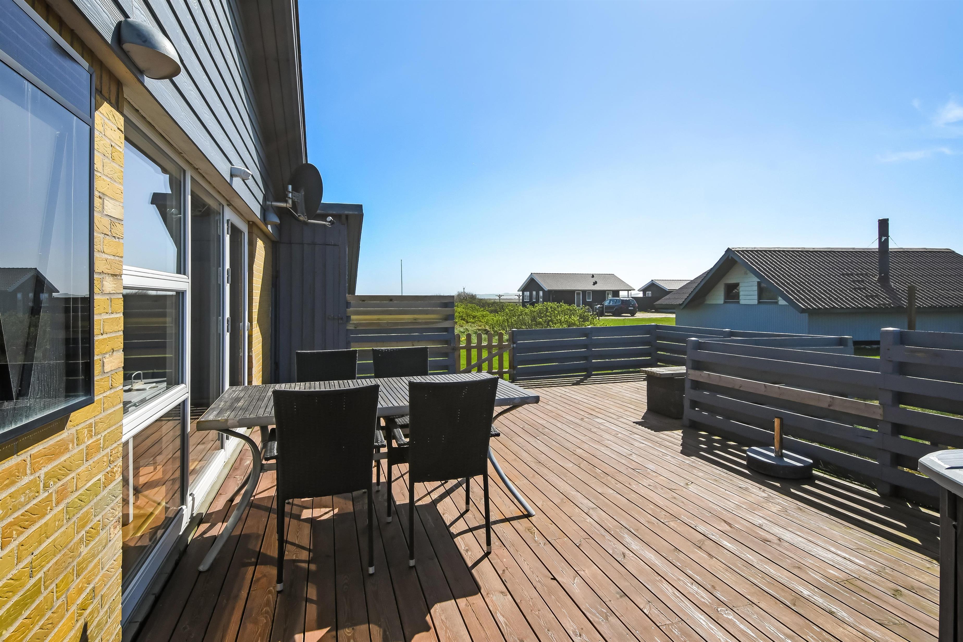 Hust ligger på en ca. 1.000 m2 stor grund. Fra opholdsstuen og fra udestuen er der udgang til et fantastisk, indhegnet terrasseanlæg. Der er fantastisk læ afskærmning af glas så man altid kan sidde i læ samtidig med man nyder udsigten. Der er masser af havemøbler samt 2 liggestole og grill på terrassen. På terrassen er der også lagt flotte pyntesten m.m. og der findes altid en dejlig lækrog samt en plads i solen på dette unikke terrasseanlæg. Nyd en gåtur til Vesterhavet som kun ligger ca. 500m fra huset eller vejen forbi områdets indkøbsmuligheder. Indenfor kort køreafstand nås både den aktive handelsby i Lemvig med flere specialbutikker eller den unikke fiskerby Thyborøn, som udover den aktive fiskerihavn også byder på badestrand og op til flere aktivitetstilbud, som alle er et besøg værd.