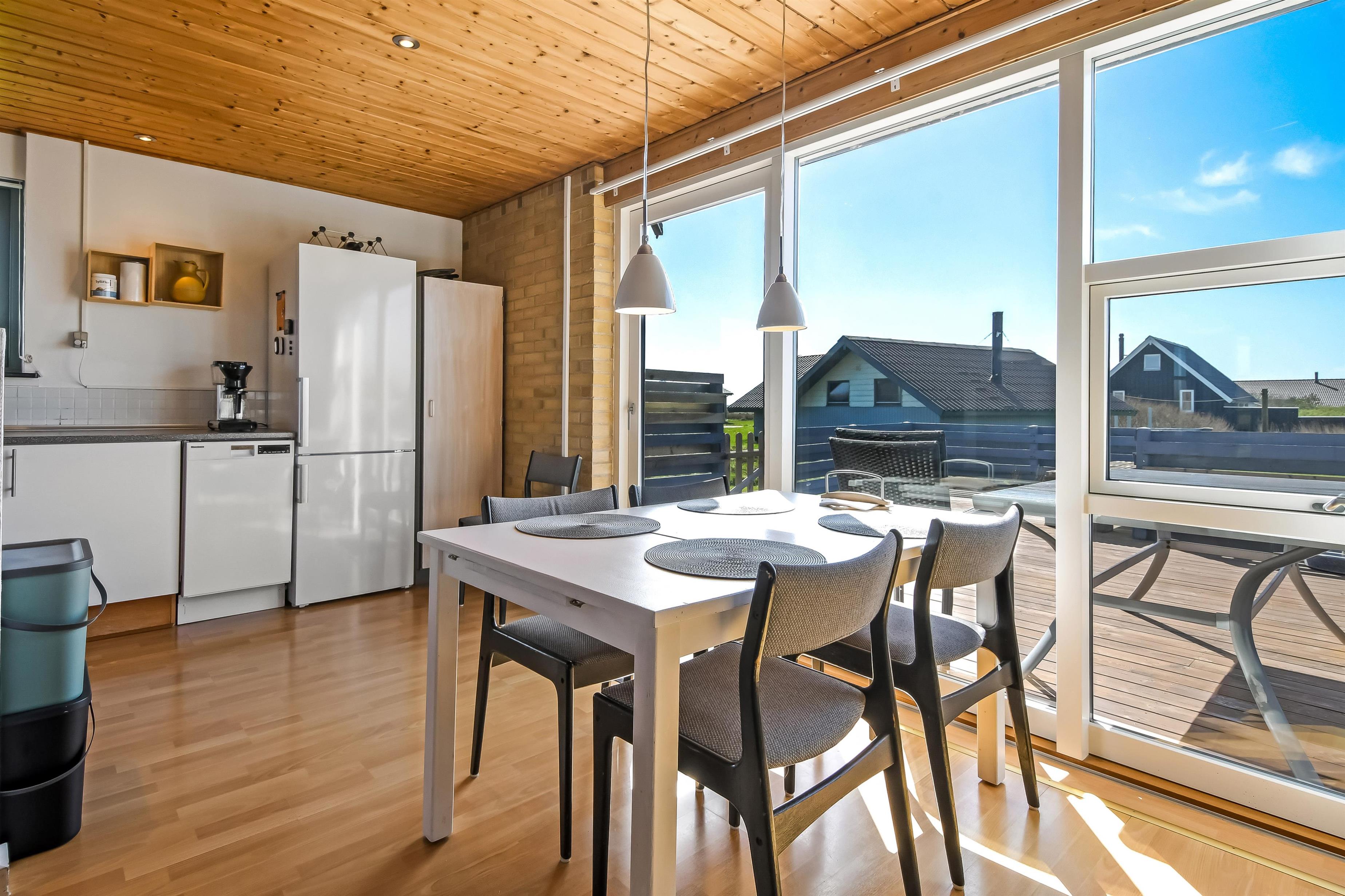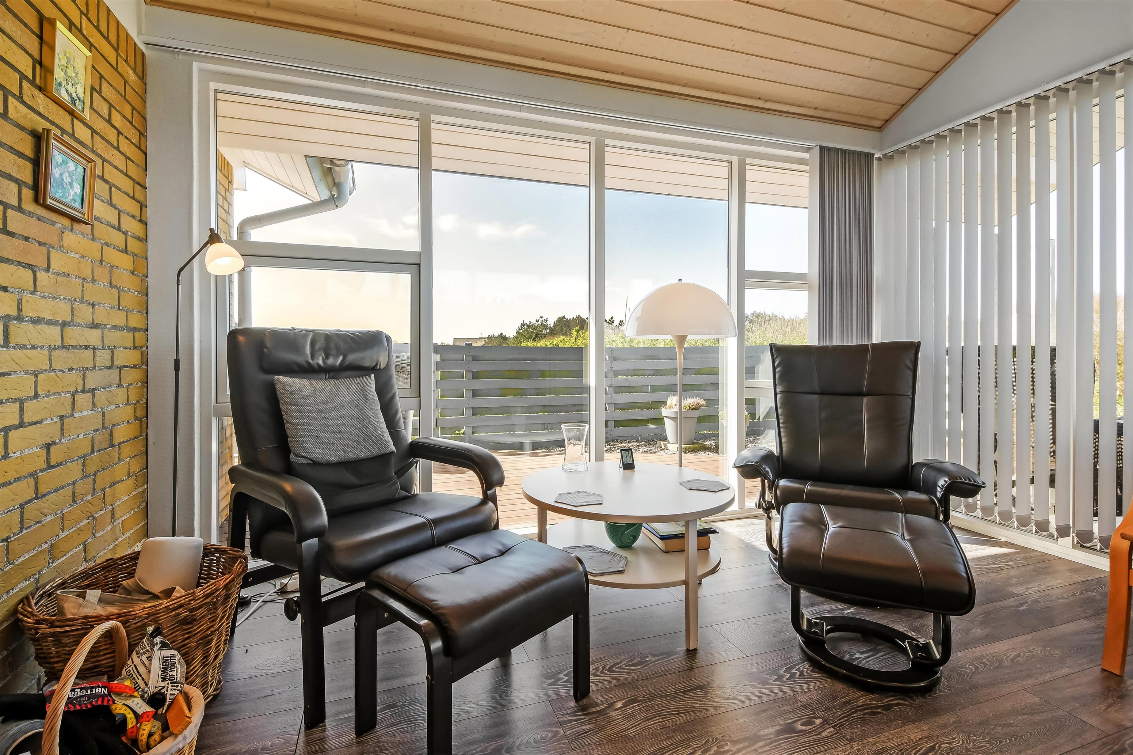 Nyd dette dejlige feriehus på 76 m2, som er renoveret i 2021 og som har 2 soverum (1DS, 2ES). Pæn opholdsstue med lædermøbler, radio og cd-afspiller, tv med danske og tyske kanaler. En biopejs gør stuen ekstra hyggelig og varmepumpen sørger for et godt indeklima samt at man altid kan holde varmen på kolde dage. Fra stuen er der adgang til en flot, nyere udestue med fantastisk udsigt til de høje klitter ved Vesterhavet samt ekstra sofa og stole. Der perfekte sted at nyde en kop kaffe eller læse en god bog hvis det ikke er vejr til at sidde ude. Lav et godt måltid mad i køkkenhjørne med komfur med glaskeramiske kogeplader, mikroovn, emhætte, opvaskemaskine og køleskab med fryseboks. Tæt ved køkkenhjørnet er spisebordet placeret ligesom der er praktisk udgang til terrassen. Når det er tid til et bad kan dette klares på det funktionelle badeværelse med toilet, håndvask, bruseniche, guvvarme og minivaskemaskine. Der er hårde, praktiske gulve i alle opholdsrum og i køkkenhjørnet, samt varme i gulvet på badeværelset. Der er gratis adgang til Harboøre Centret. Max. 2 husdyr tilladt. Der må ikke ryges i huset.