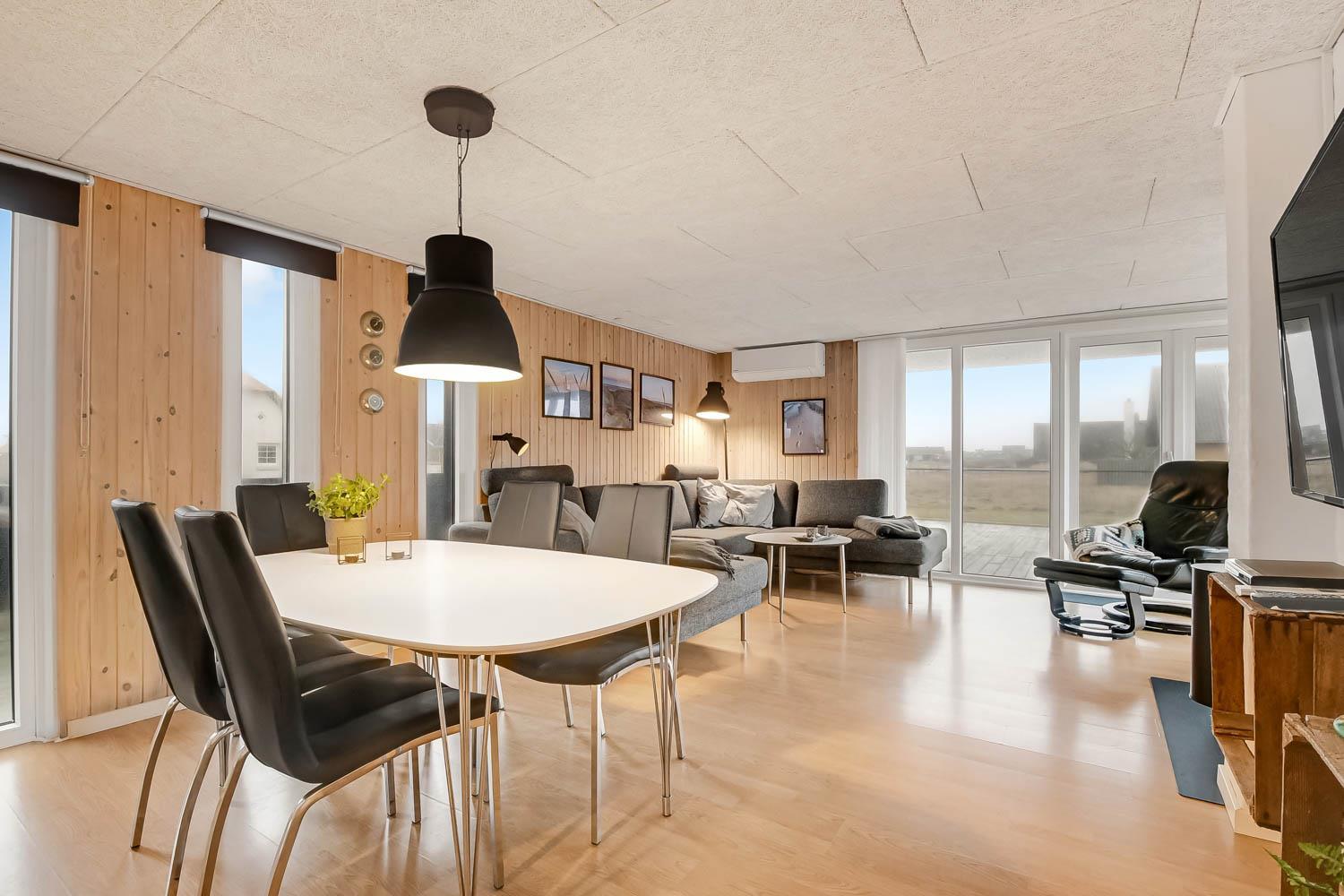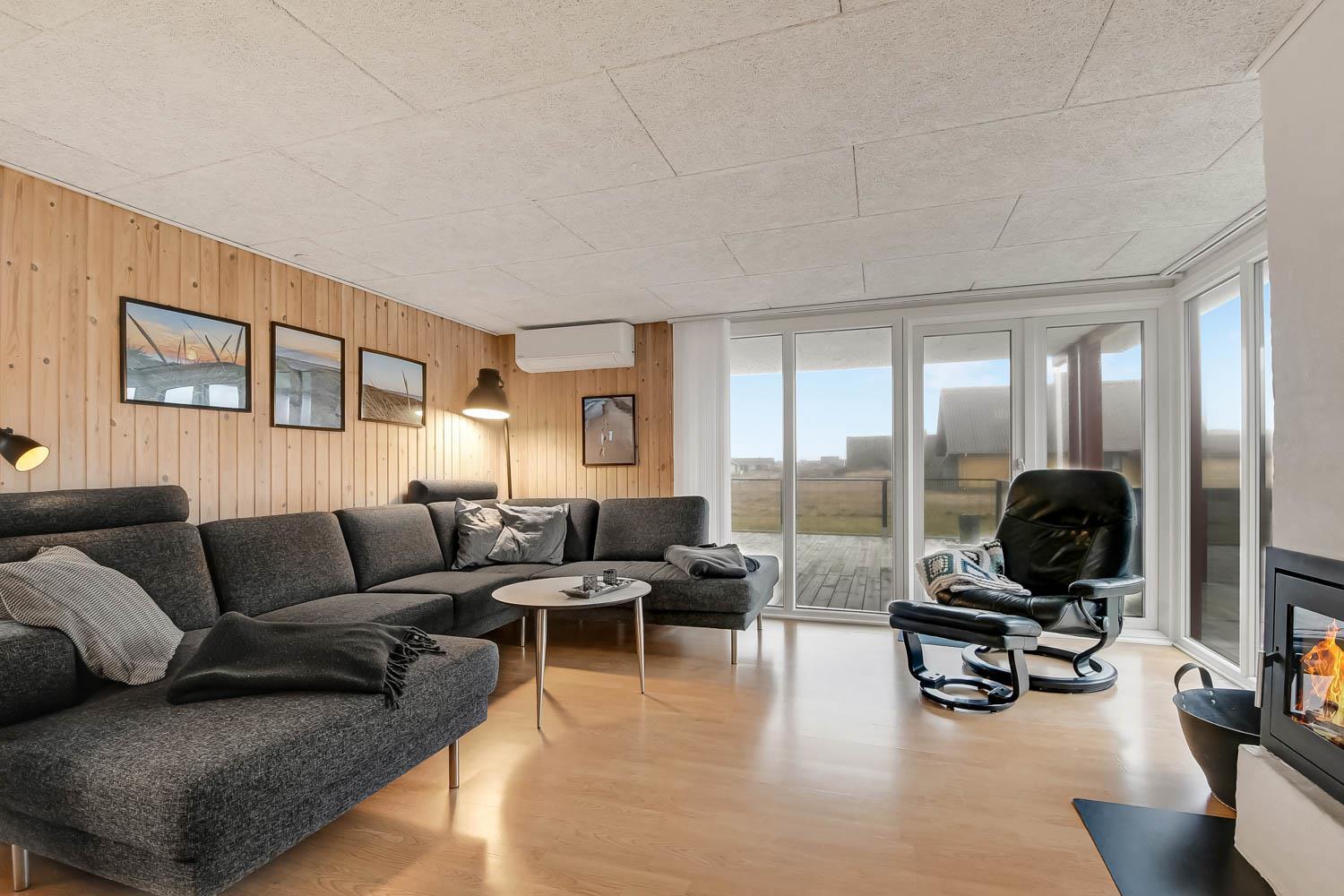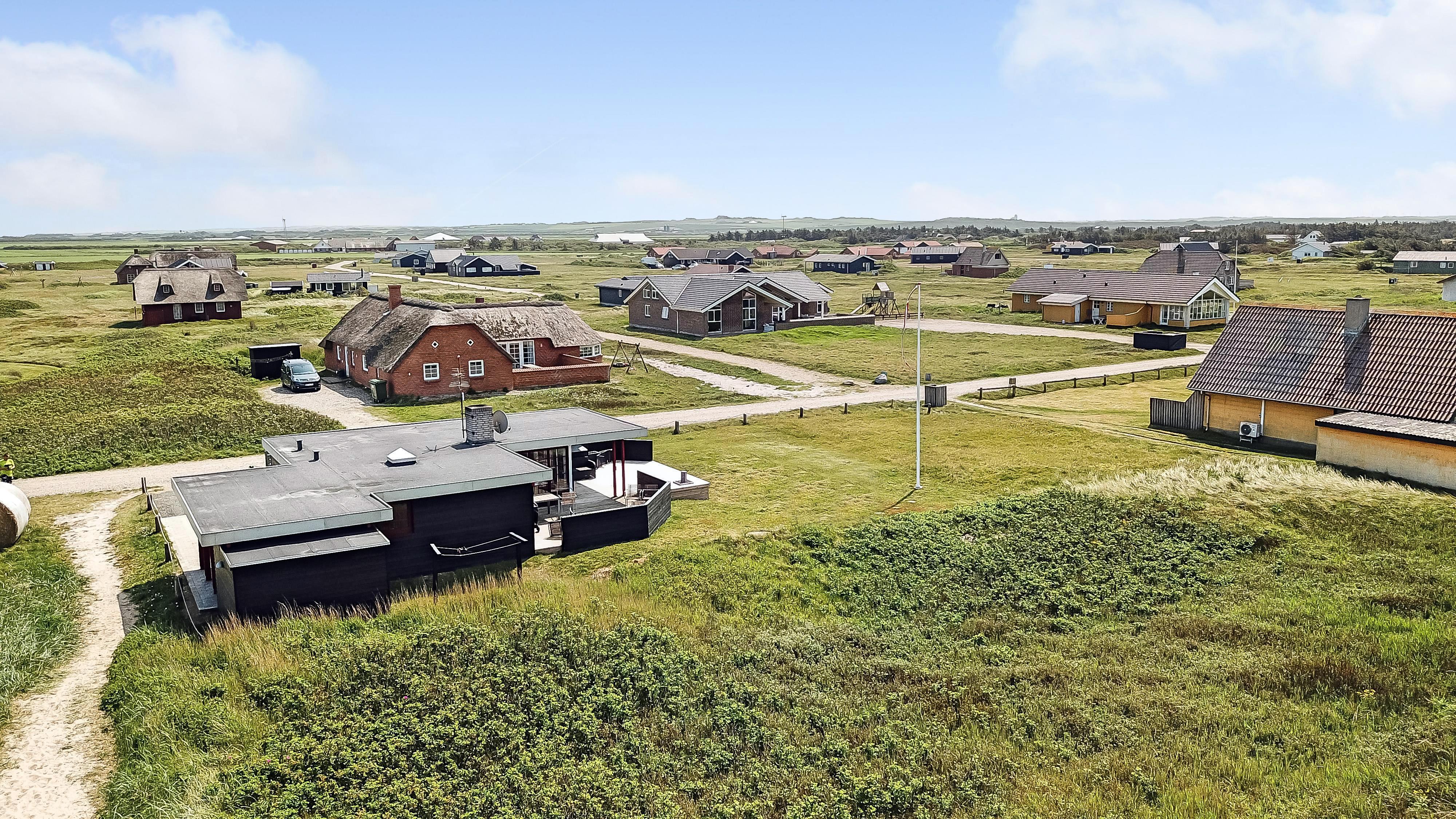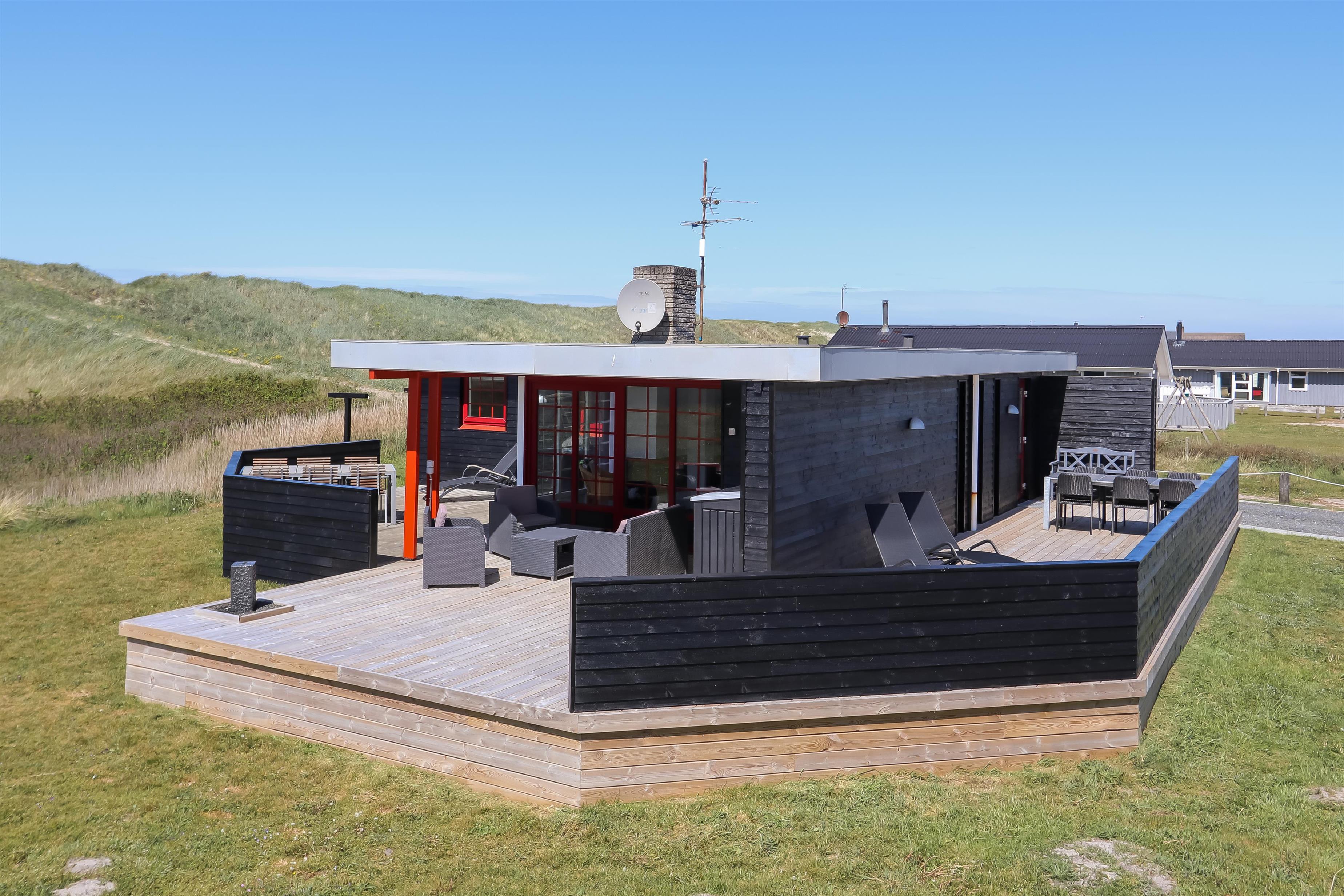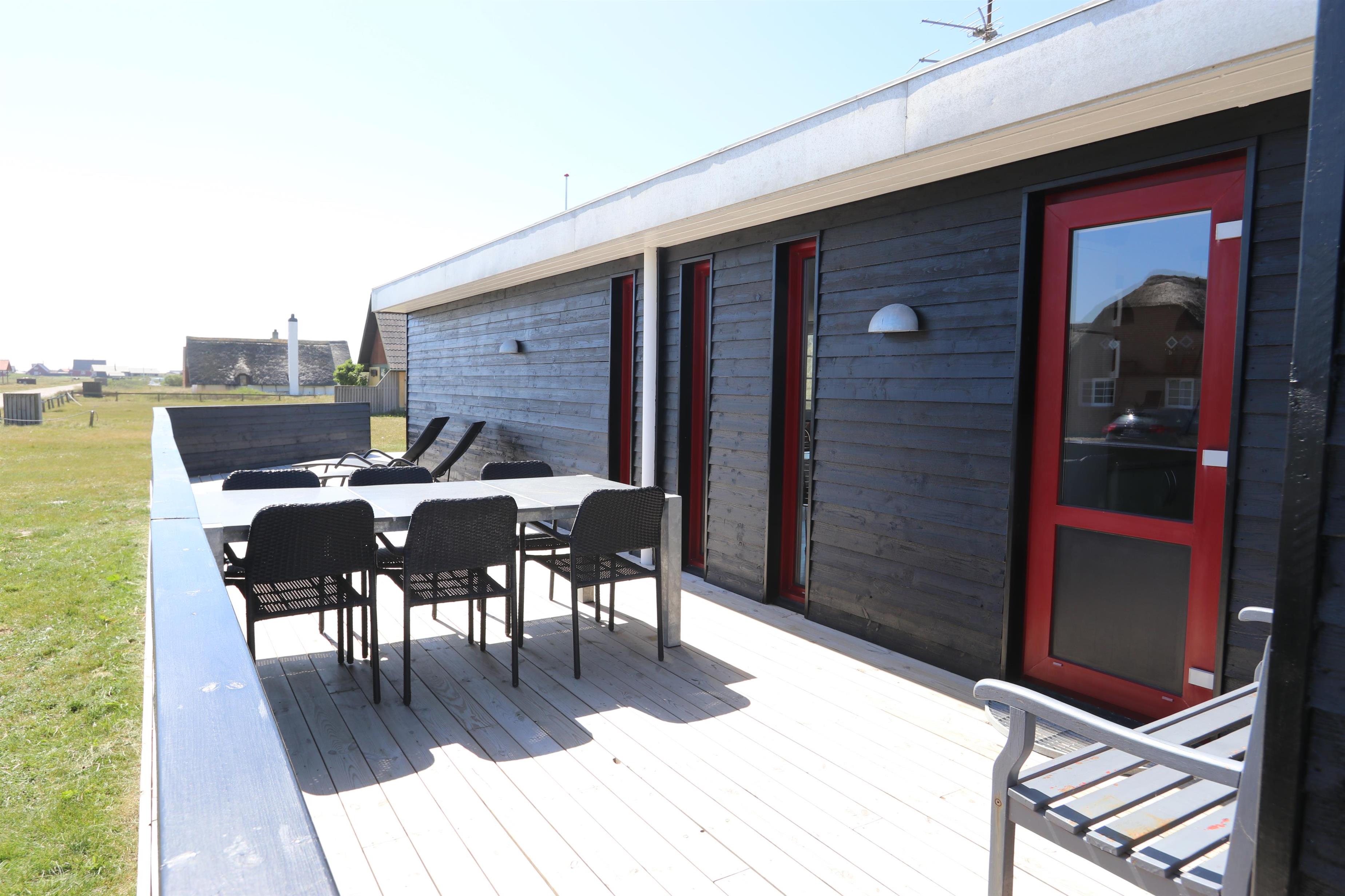 Huset har udgang til en dejlig, delvis overdækker, indhegnet terrasse med udsigt til de høje klitter. Der er havemøbler og liggestole. Er der børn er der rige muligheder på den over 3.000 m2 store grund. Parker bil og nyd dette charmerende sommerhus tæt ved Vesterhavet. Tænd grillen og spis aftensmaden på den dejlige terrasse til lyden af bølger der som skyller i land lige på den anden side af de betagende klitter som ligger ca. 100 m fra huset.