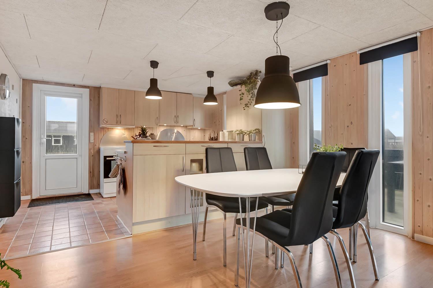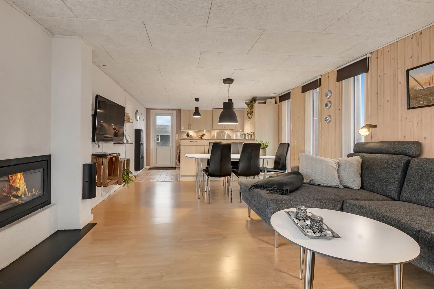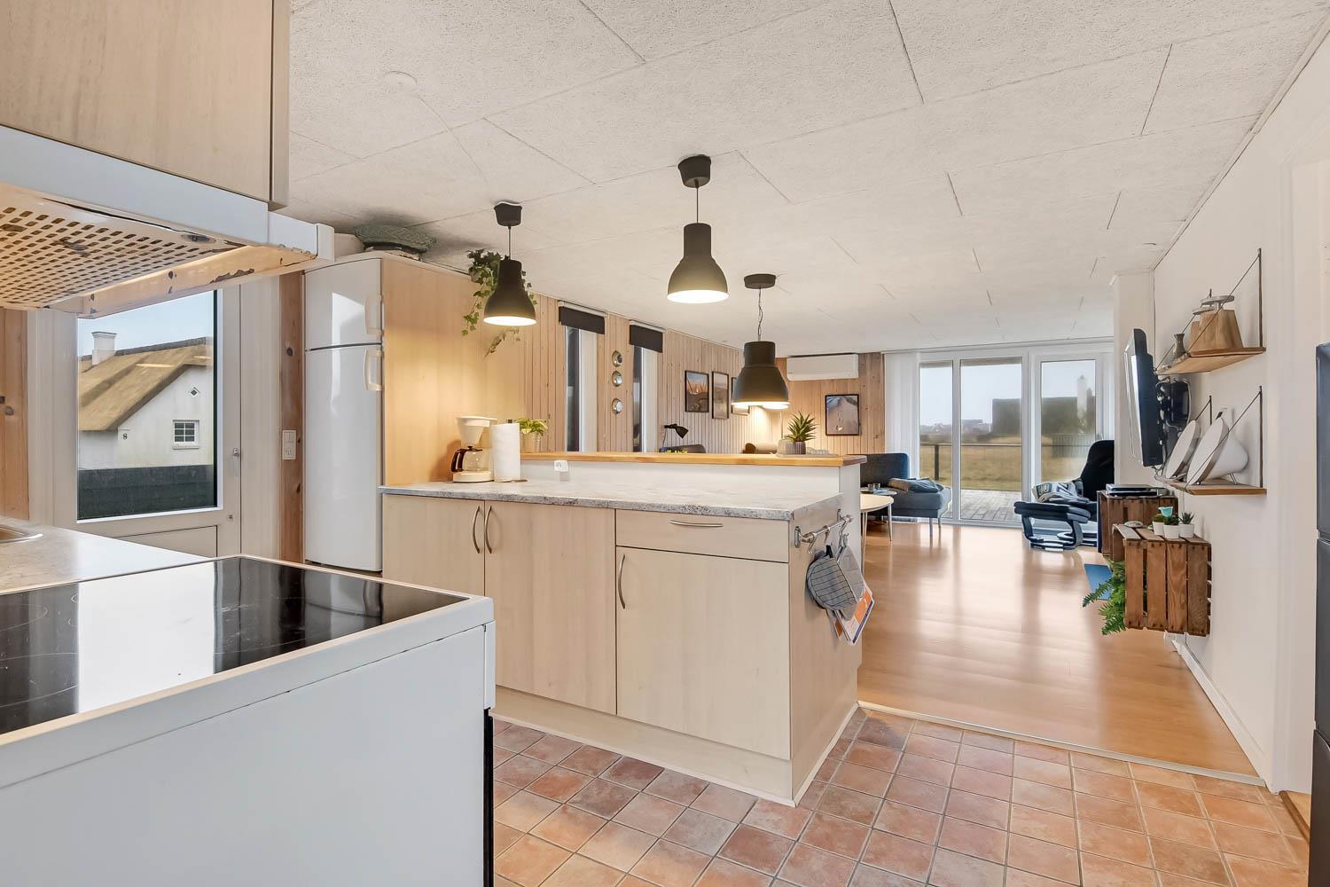 Dette sommerhus byder på ægte dansk hygge og er flot renoveret i 2017/2018. Huset er godt indrettet med 3 soverum (1DS, 1DS, 1DS). Opholdsstue har dejlig udsigt til de høje klitter og har gode møbler, spiseplads, faldskærms-tv med tyske og danske kanaler og en dejlig brændeovn, radio, og DVD afspiller. En dejlig varmepumpe sørger for at man nemt kan holde varmen også i de kolde måneder. Oplev køkkenhjørnet med elektrisk komfur, mikroovn, opvaskemaskine og køleskab med lille fryseboks. Der er mulighed for at holde hinanden med selskab uanset om men er i køkkenet eller i opholdsstuen. Til de små er der højstol i huset. Flot og stilrent badeværelse med toilet, håndvask, bruseniche og gulvvarme. Vaskemaskine. 1 husdyr tilladt. Ikke ryger hus.