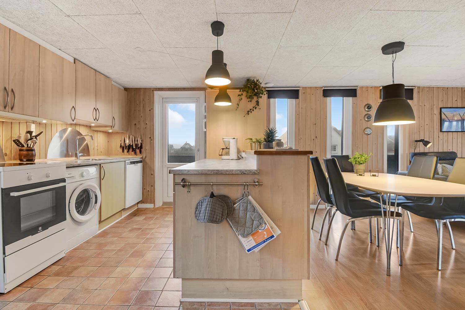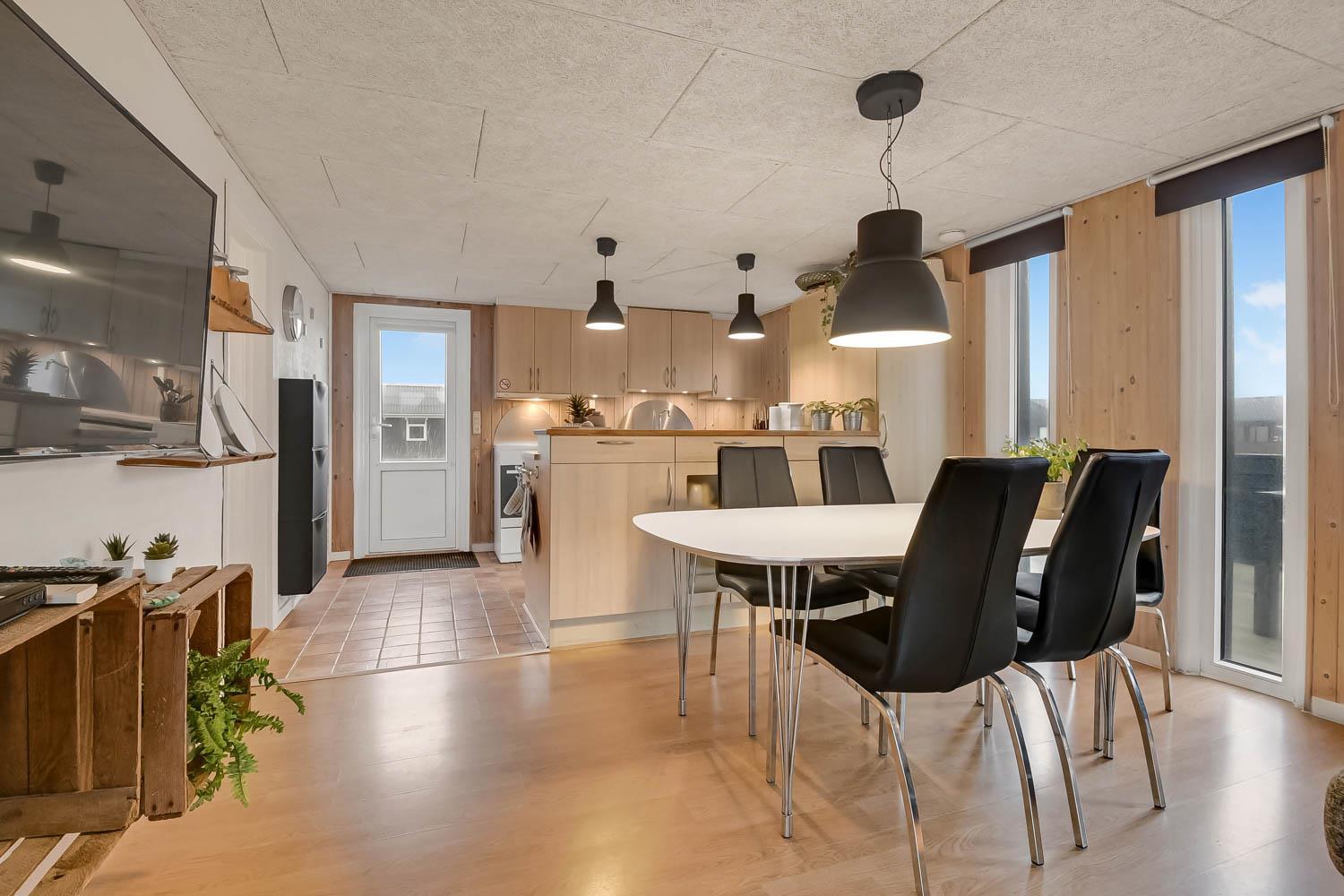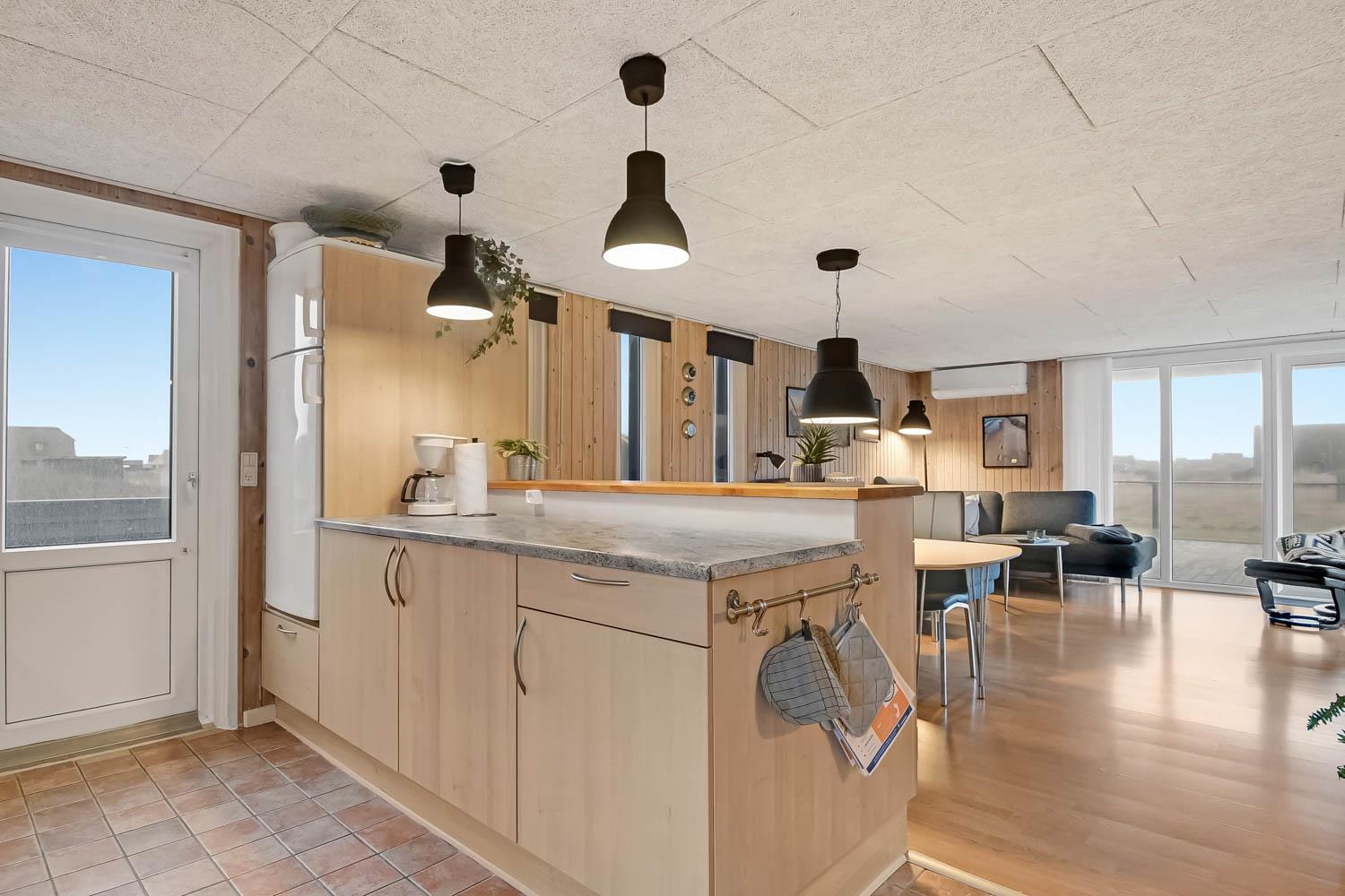 Dette sommerhus byder på ægte dansk hygge og er flot renoveret i 2017/2018. Huset er godt indrettet med 3 soverum (1DS, 1DS, 1DS). Opholdsstue har dejlig udsigt til de høje klitter og har gode møbler, spiseplads, faldskærms-tv med tyske og danske kanaler og en dejlig brændeovn, radio, og DVD afspiller. En dejlig varmepumpe sørger for at man nemt kan holde varmen også i de kolde måneder. Oplev køkkenhjørnet med elektrisk komfur, mikroovn, opvaskemaskine og køleskab med lille fryseboks. Der er mulighed for at holde hinanden med selskab uanset om men er i køkkenet eller i opholdsstuen. Til de små er der højstol i huset. Flot og stilrent badeværelse med toilet, håndvask, bruseniche og gulvvarme. Vaskemaskine. 1 husdyr tilladt. Ikke ryger hus.