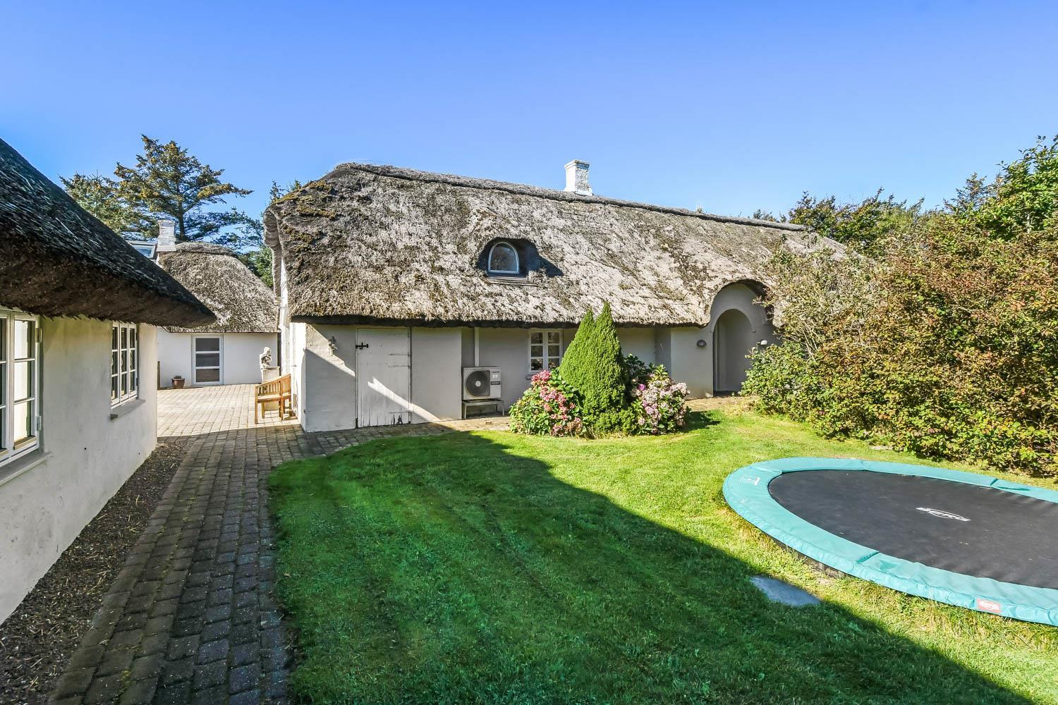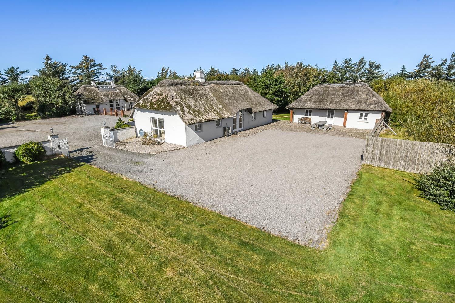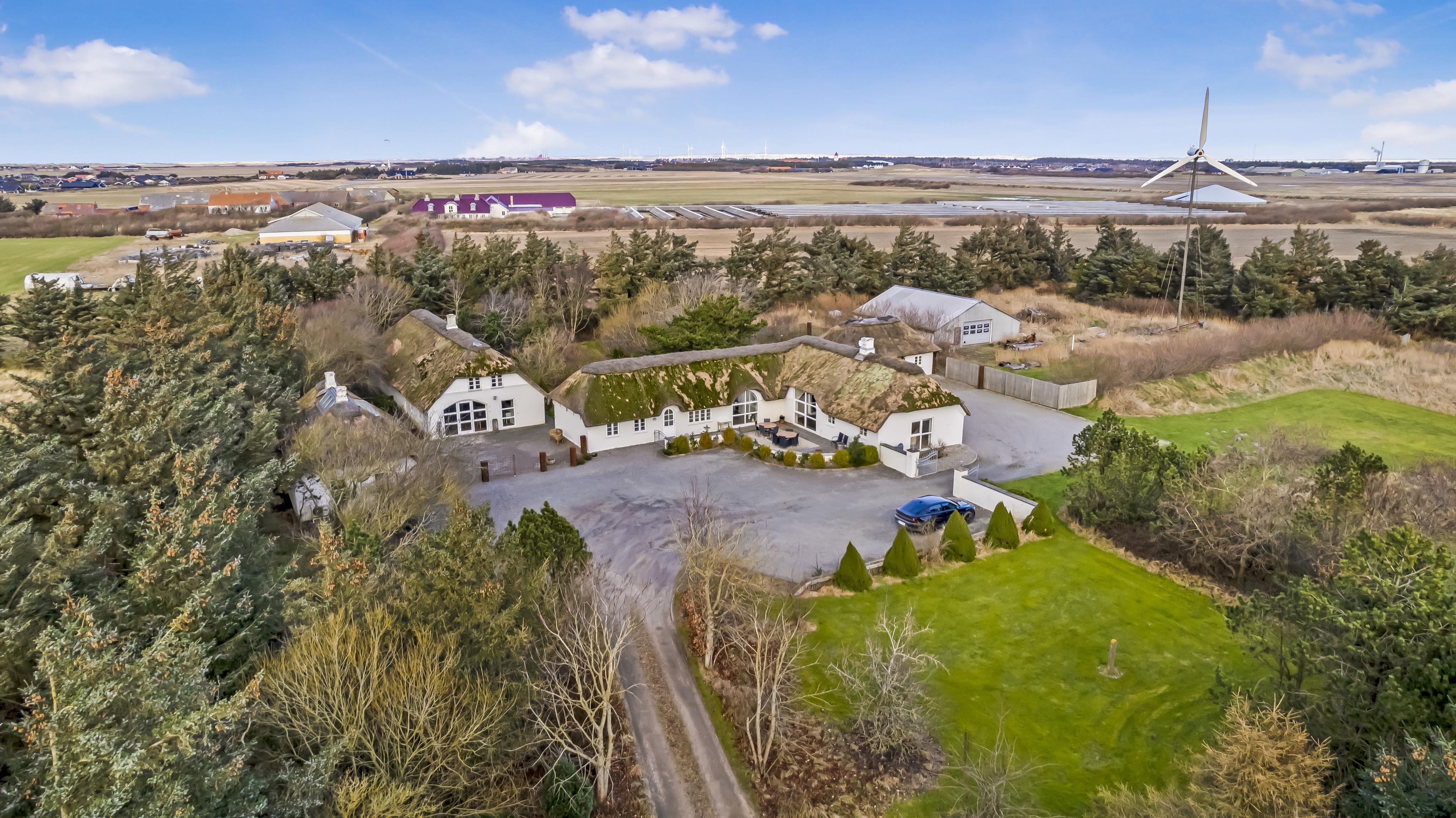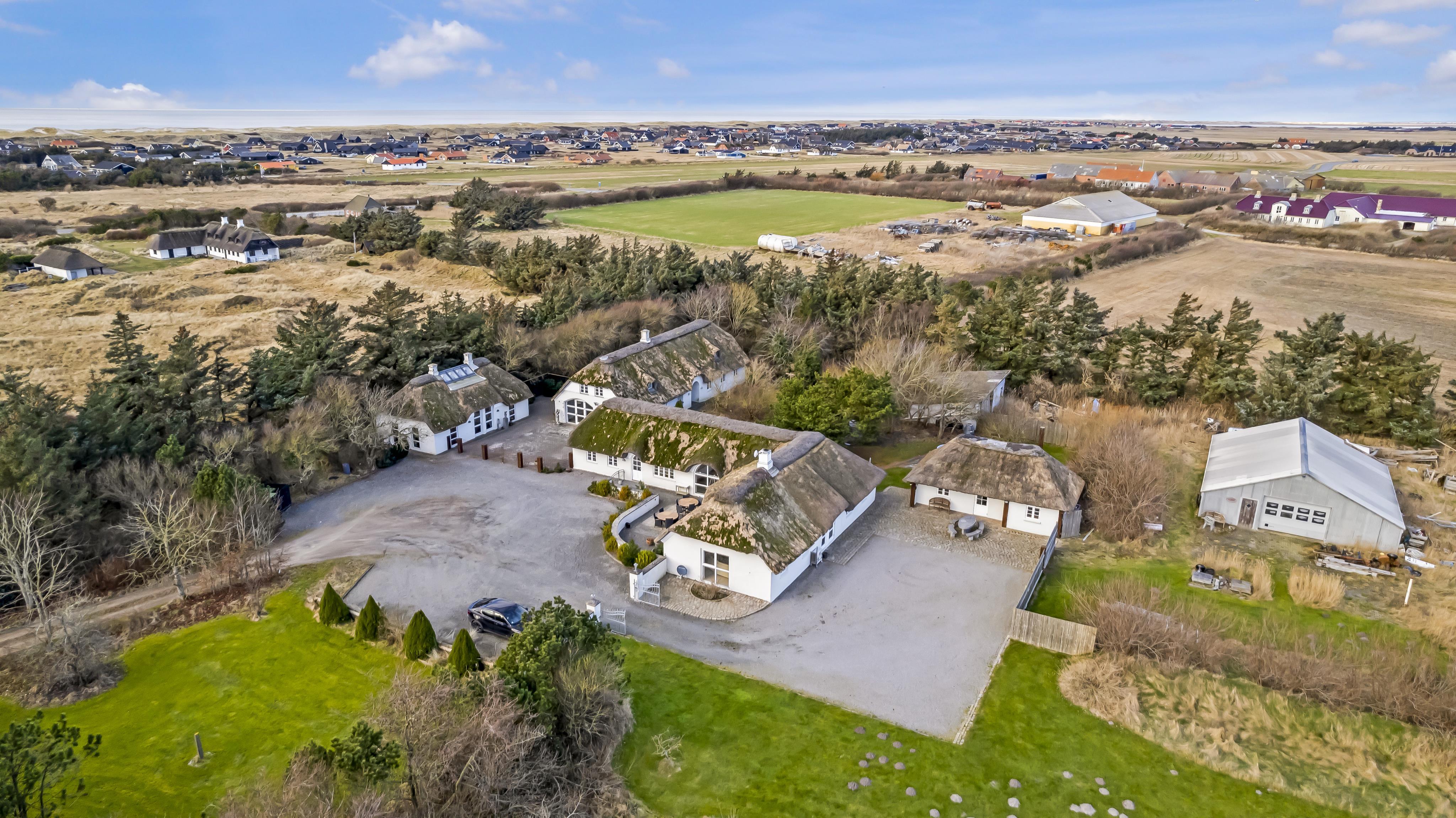 Denne strandgård består af 4 totalt nyrenoverede luksushuse med stråtag, hvor man kan bo sammen flere familier og samtidig have sit eget. Den har en fantastisk beliggenhed kun 500 meter fra Vesterhavet og 400 meter fra indkøb. I alle husene er der gratis internetforbindelse. Her kan hele familien samles og bo i meget naturskønne omgivelser.