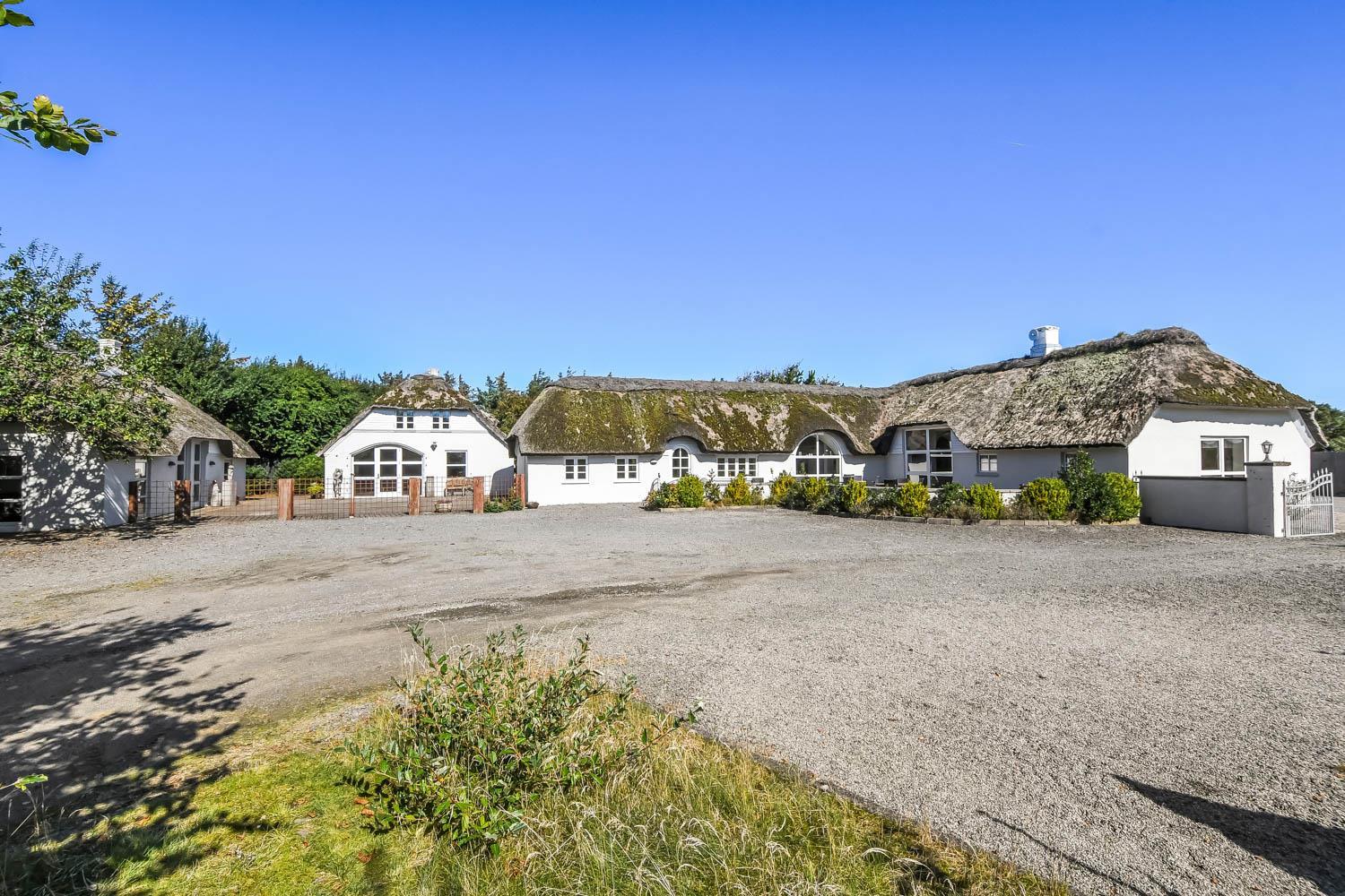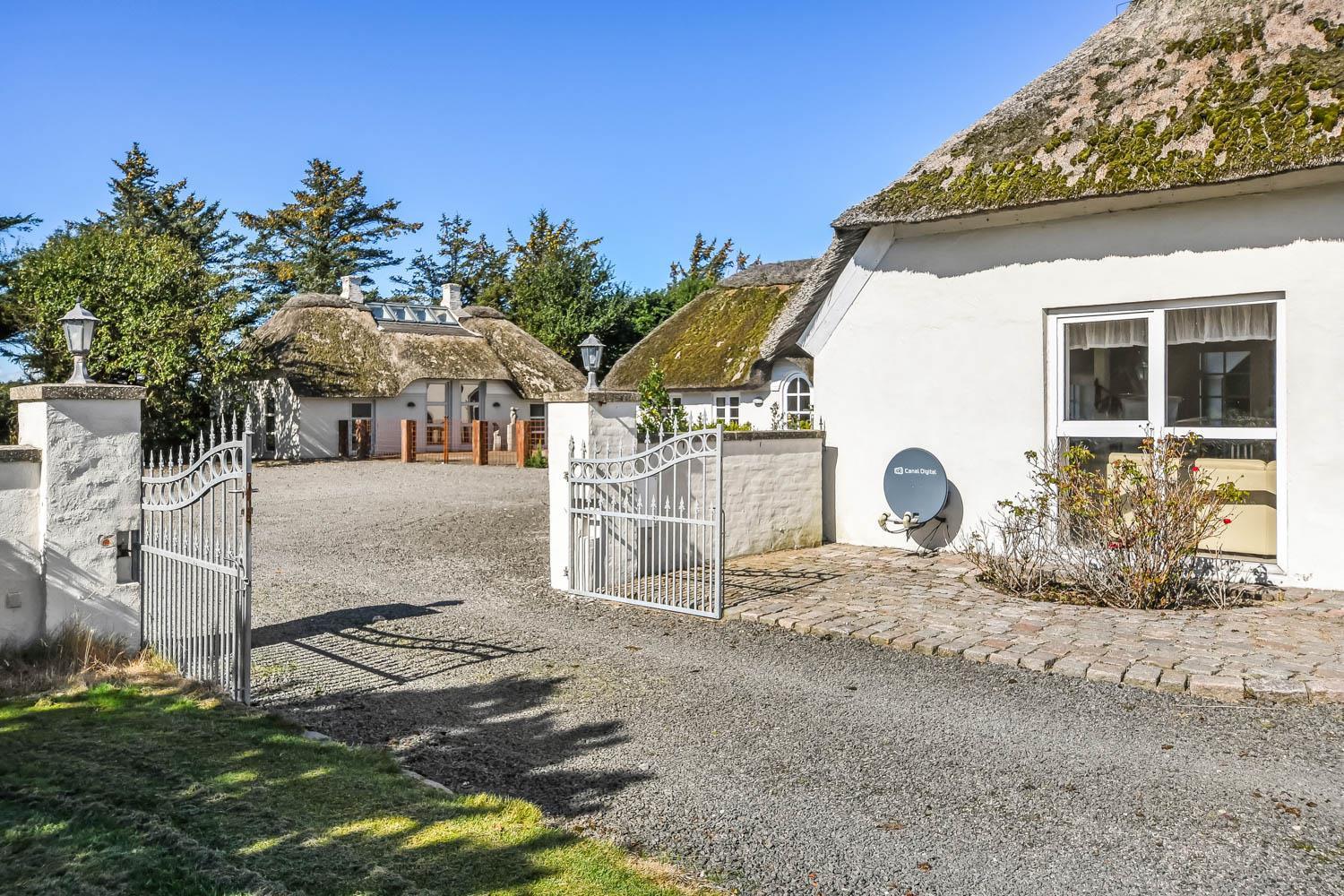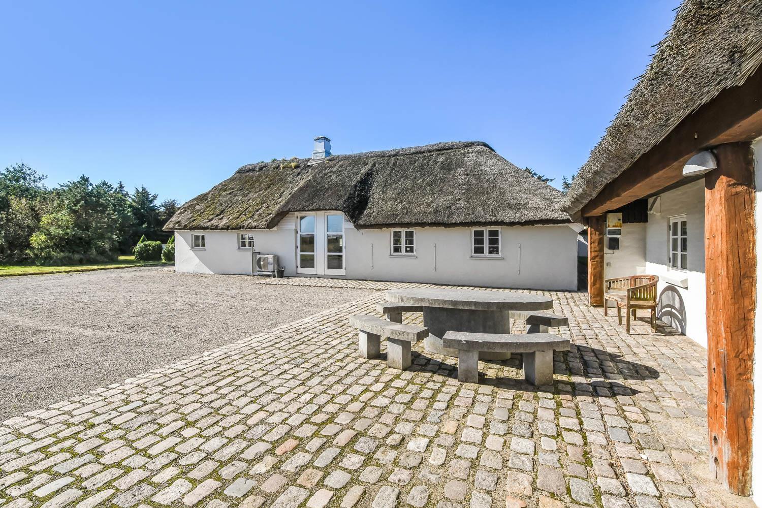 Denne strandgård består af 4 totalt nyrenoverede luksushuse med stråtag, hvor man kan bo sammen flere familier og samtidig have sit eget. Den har en fantastisk beliggenhed kun 500 meter fra Vesterhavet og 400 meter fra indkøb. I alle husene er der gratis internetforbindelse. Her kan hele familien samles og bo i meget naturskønne omgivelser.