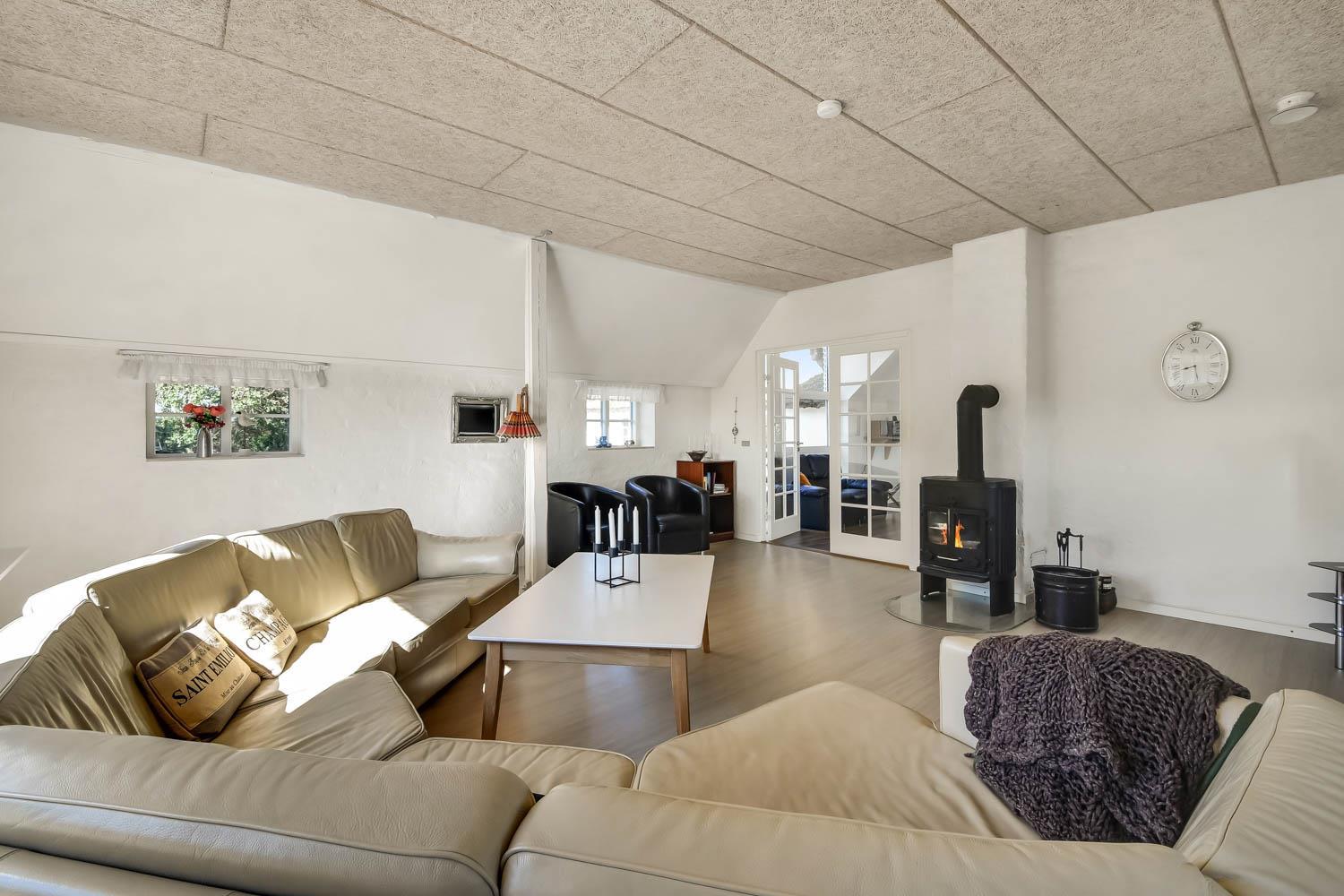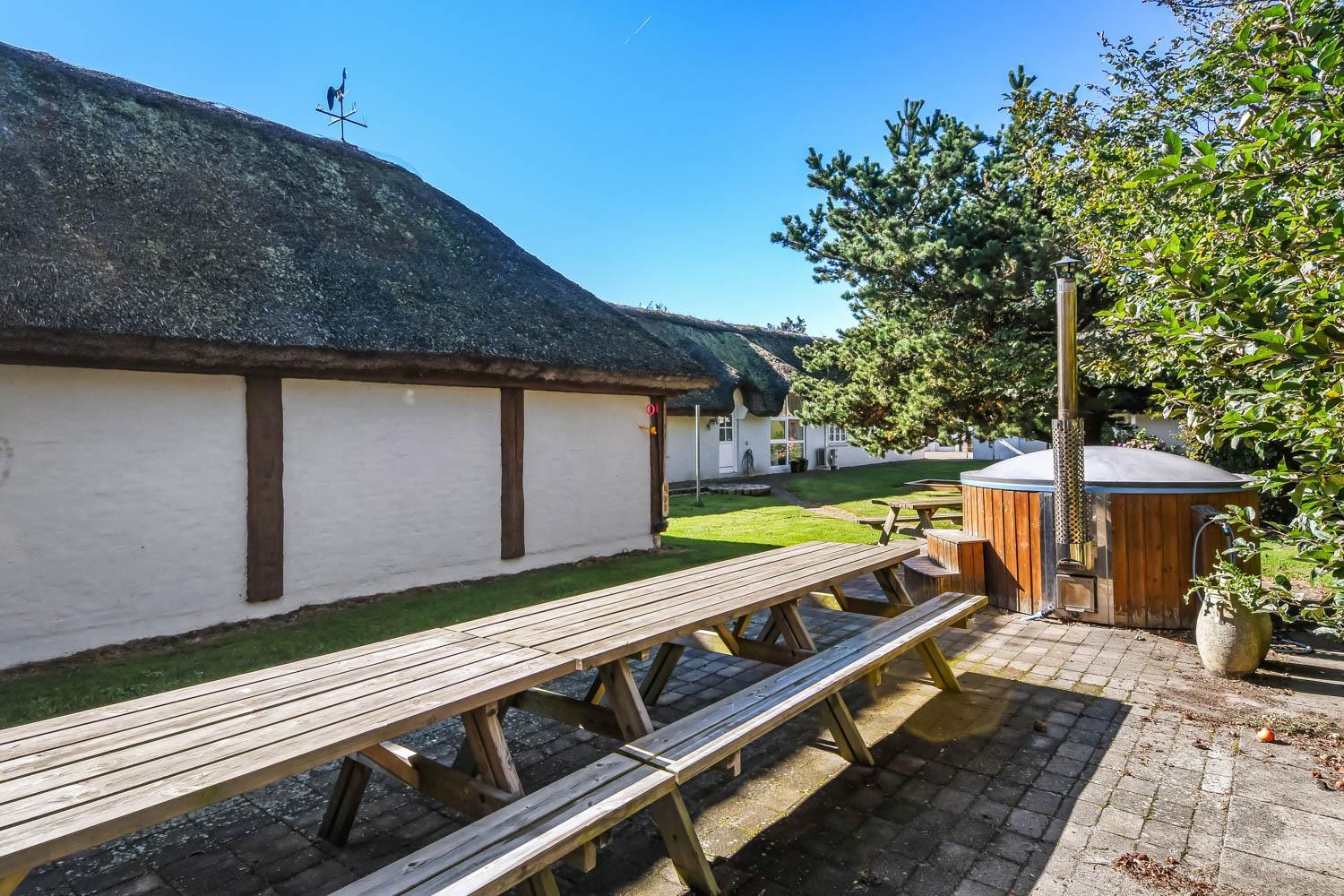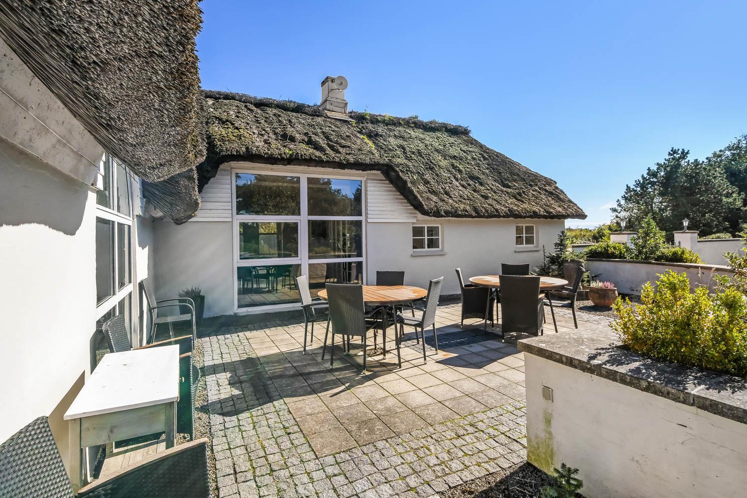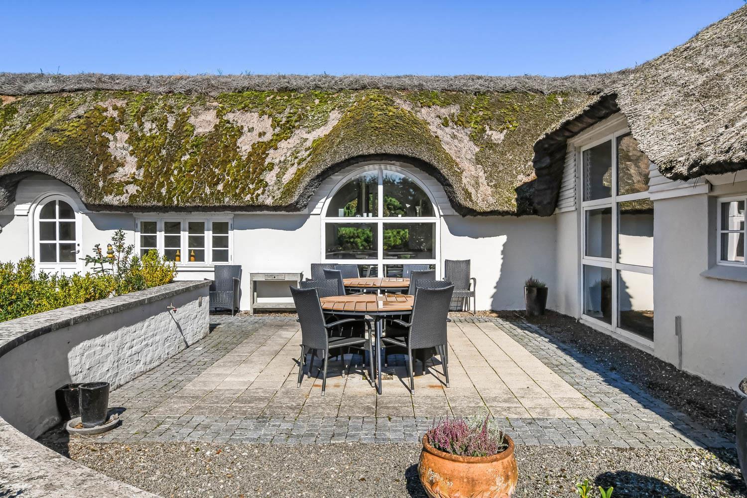 Denne strandgård består af 4 totalt nyrenoverede luksushuse med stråtag, hvor man kan bo sammen flere familier og samtidig have sit eget. Den har en fantastisk beliggenhed kun 500 meter fra Vesterhavet og 400 meter fra indkøb. I alle husene er der gratis internetforbindelse. Her kan hele familien samles og bo i meget naturskønne omgivelser.