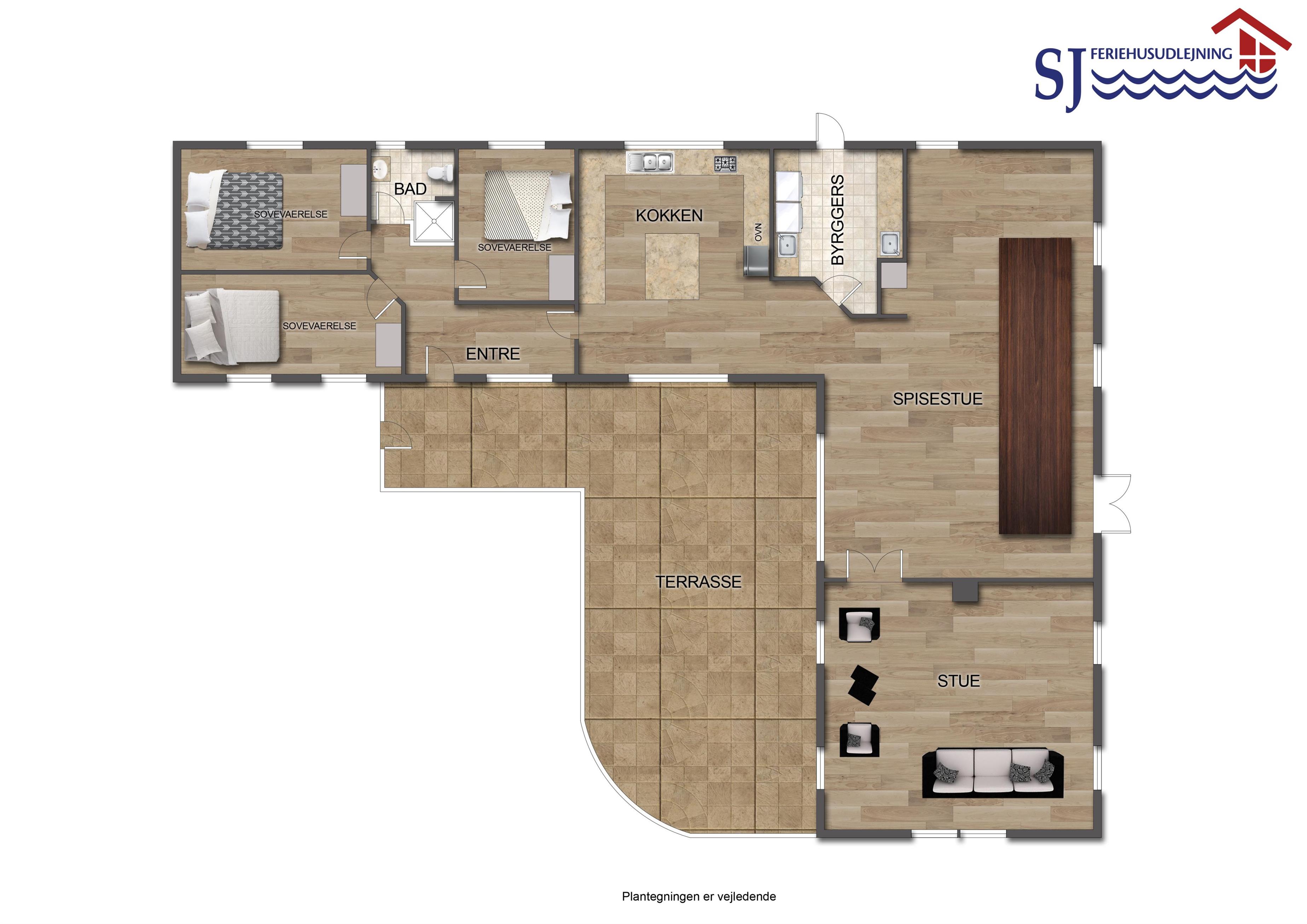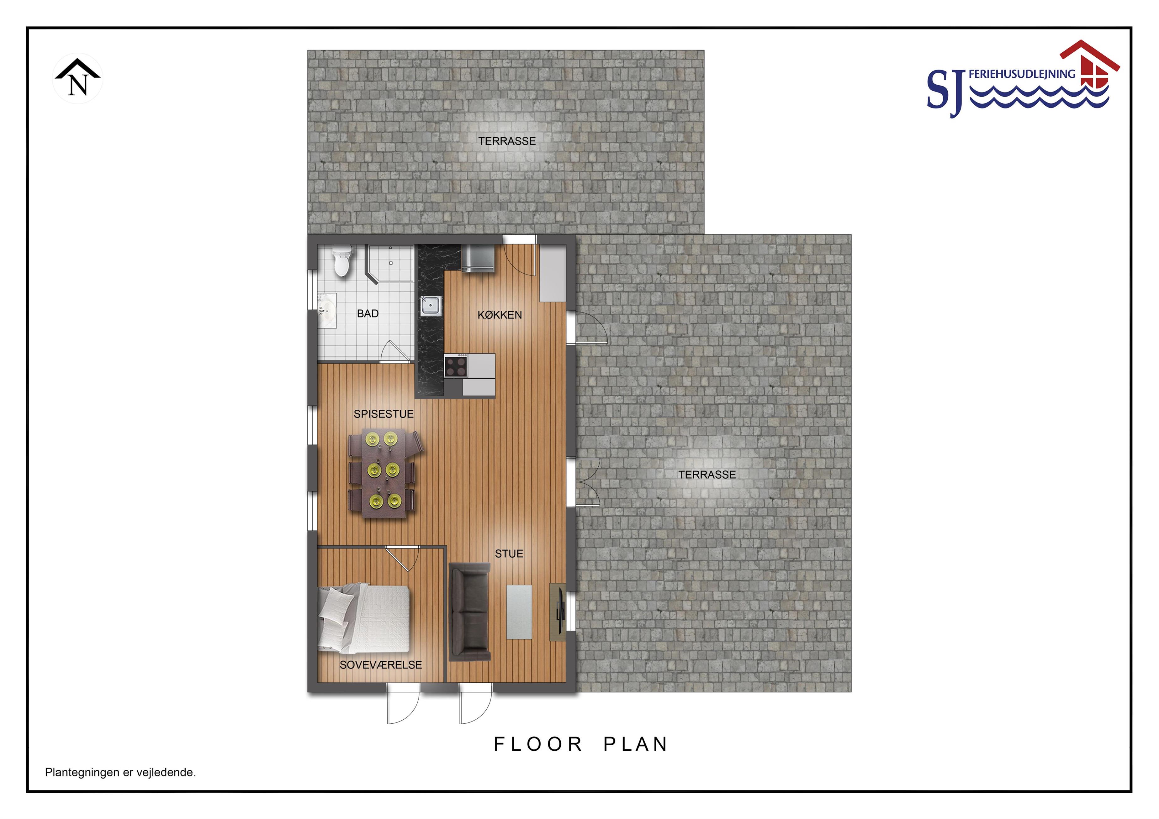 Hus 3 har 1 soverum samt 1 DB sovesofa i stuen. I alt plads til 4 personer samt badeværelse med toilet og brus og fuld køkkenafdeling.