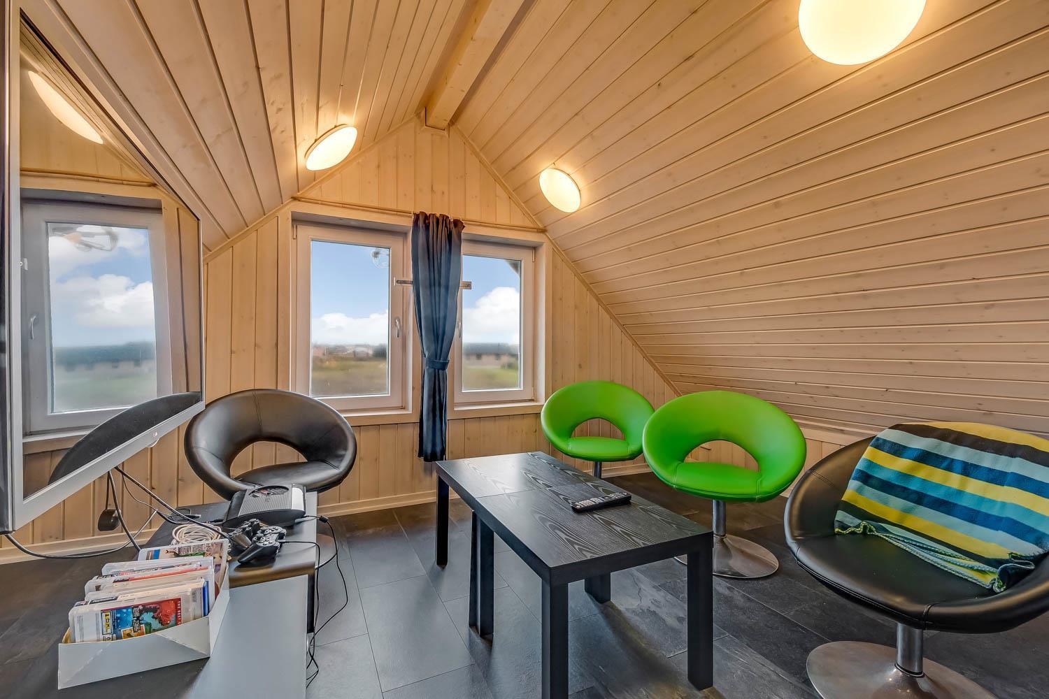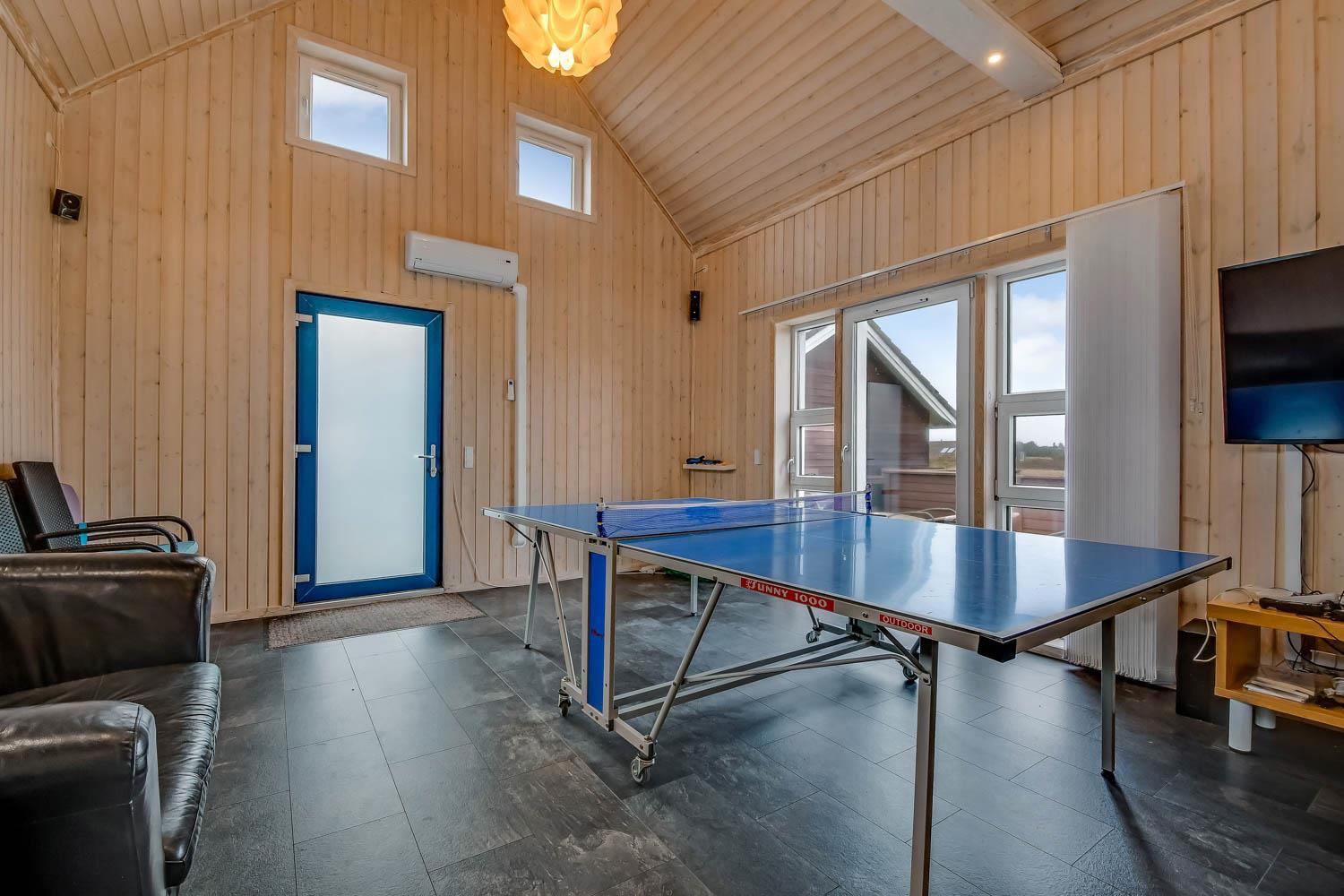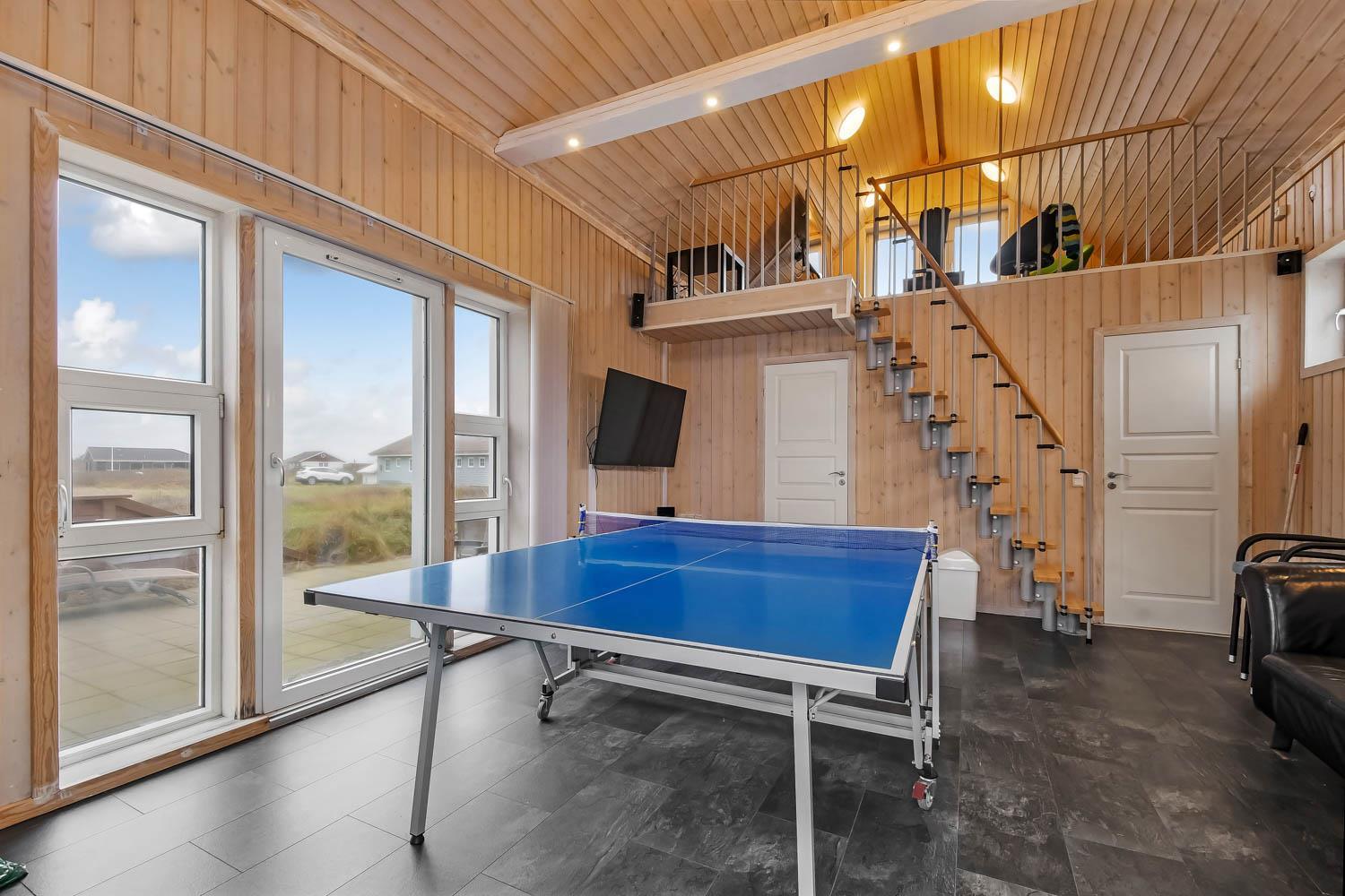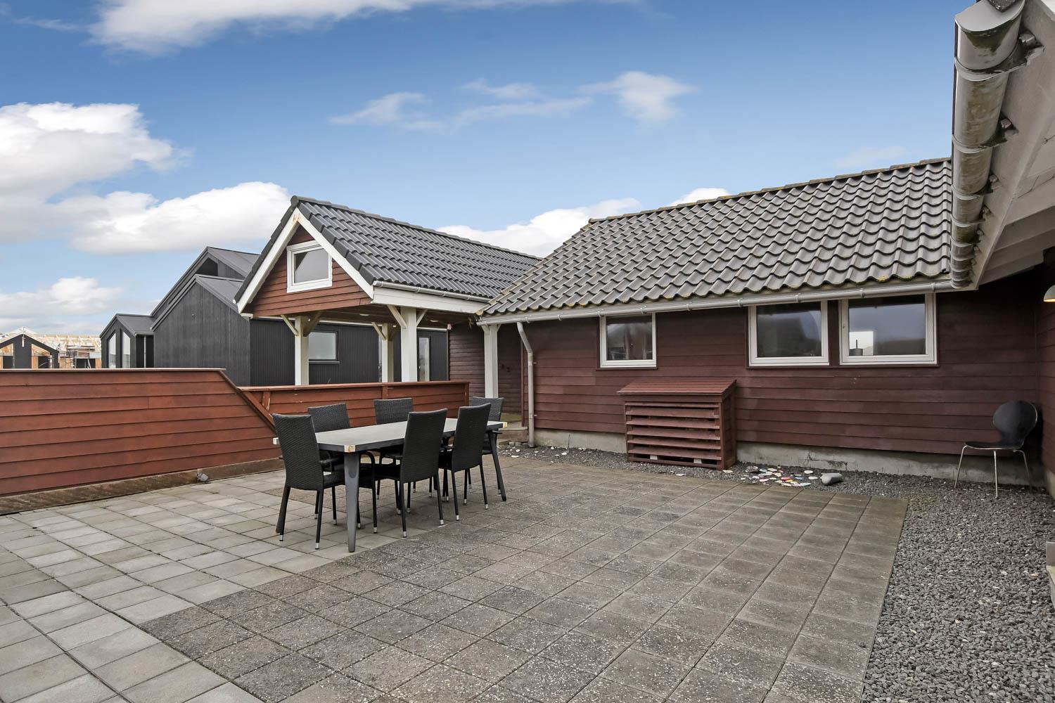 Huset er beliggende på en 1440 m2 naturgrund tæt på Vesterhavet. Dejlige terrasse hvoraf noget af det er overdækket. Der er altid mulighed for at finde et læ hjørne eller en plads i solen på terrassen. Havemøbler, solvogne og grill er også standard. Anneks med playstation 3, WII, musikanlæg, TV og bordtennis kan lejes med ekstra for kr. 725 pr. uge bestilles og betales ved ankomst. Et fantastisk feriehus for en stor familie eller 2 familier som ønsker at rejse sammen.
