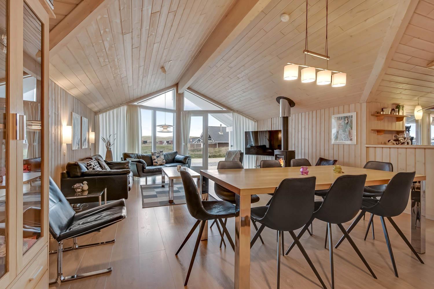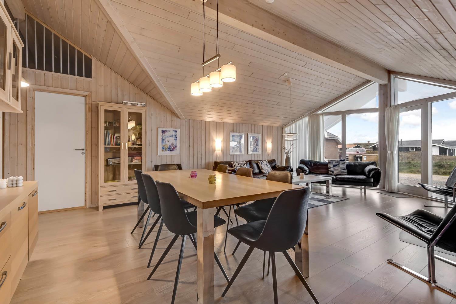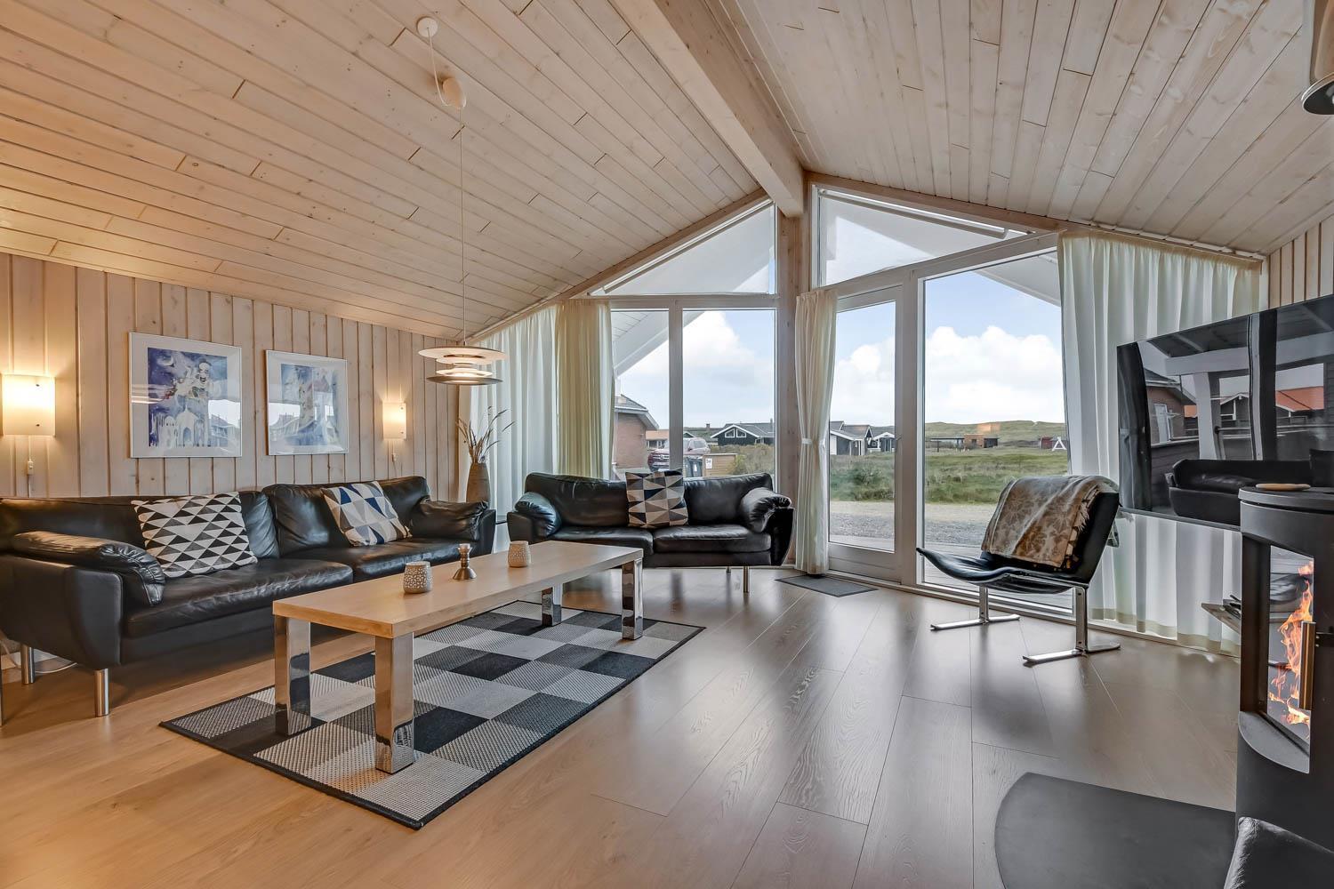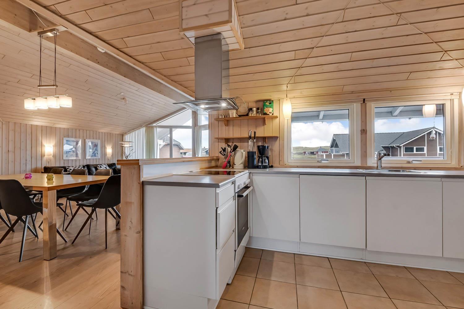 Når I ankommer til huset og parkere bilen foran, kommer I ind ad hoveddøren, ind i bryggerset, herfra er der adgang til hele huset. Stuen er kombineret med køkkenet og er meget velholdt og moderne indrettet med lædermøbler, skøn brændeovn og varmepumpe som begge er med til at give en dejlig varme og spare på elregningen, B&O F-TV med danske og tyske programmer, spisebord med stole og udgang til terrassen. Stue og køkkenet er åbnet op i kip og de store panoramavinduer giver et dejligt lysindfald i hele rummet. Stort køkken med alt i moderne hjælpemidler. Glaskeramisk komfur, emhætte, køleskab med 40 l. fryser, opvaskemaskine og klinkegulv. 4 gode soverum:1DB + 1DB + 1DB + 1DB. Hems med sovemuligheder. Badeværelse med toilet, håndvask, bruser, spa og adgang til sauna og flisegulv med gulvvarme. Ekstra badeværelse med toilet, håndvask og bruser, gulvvarme. Til de små er der barneseng og barnestol. Vaskemaskine og tørretumbler er selvfølgelig også til rådighed. 1 husdyr er tilladt. Ikke rygerhus.