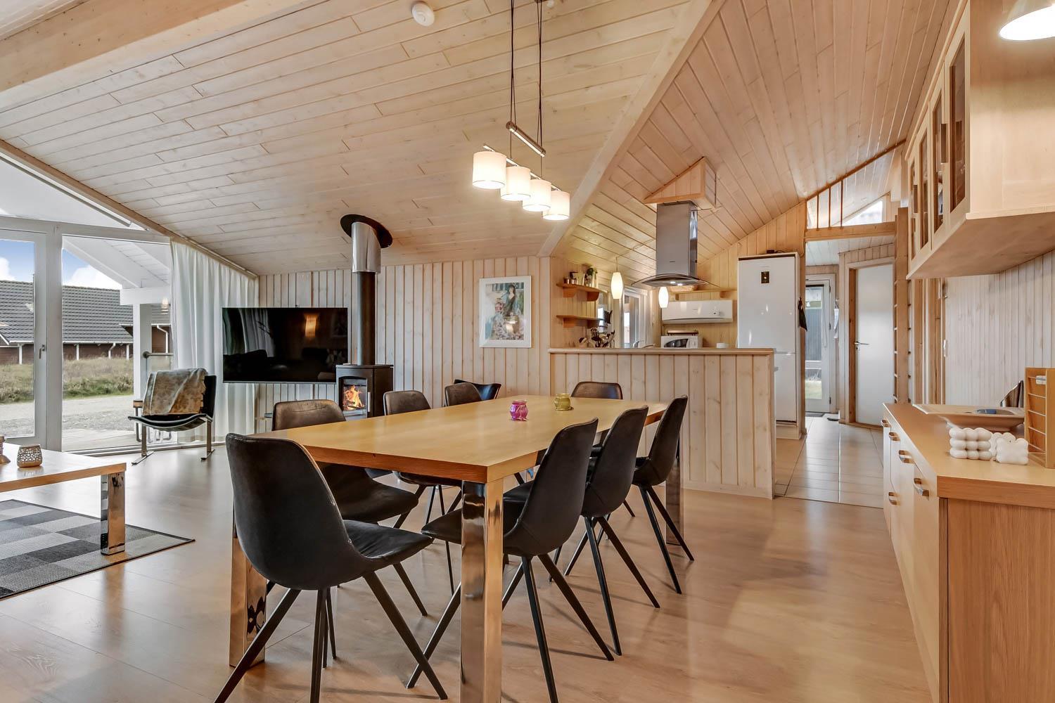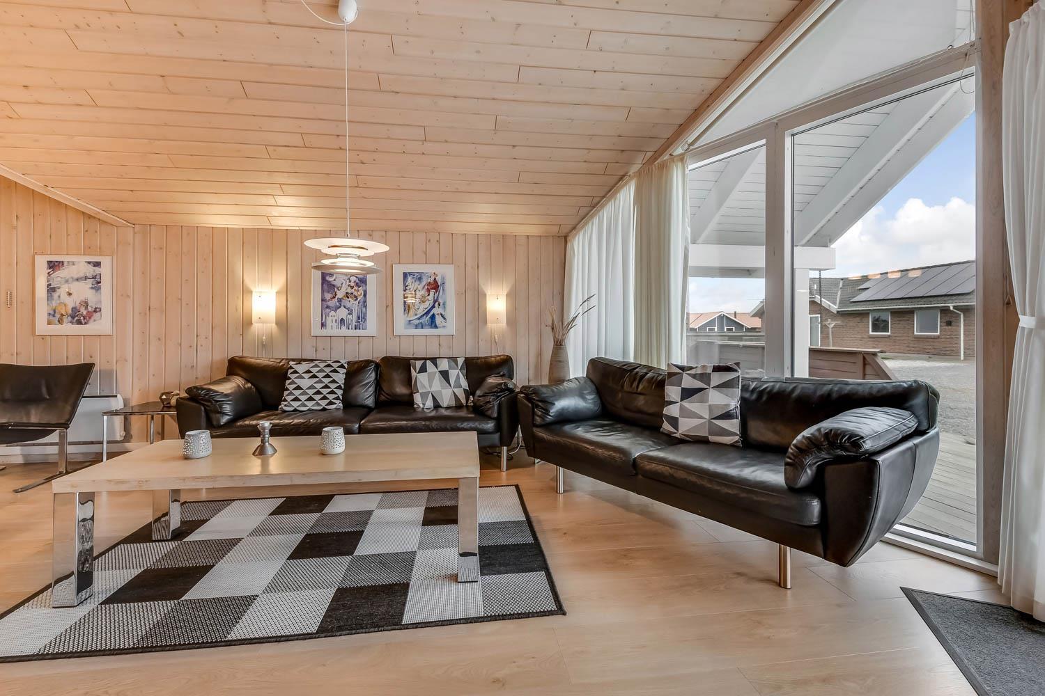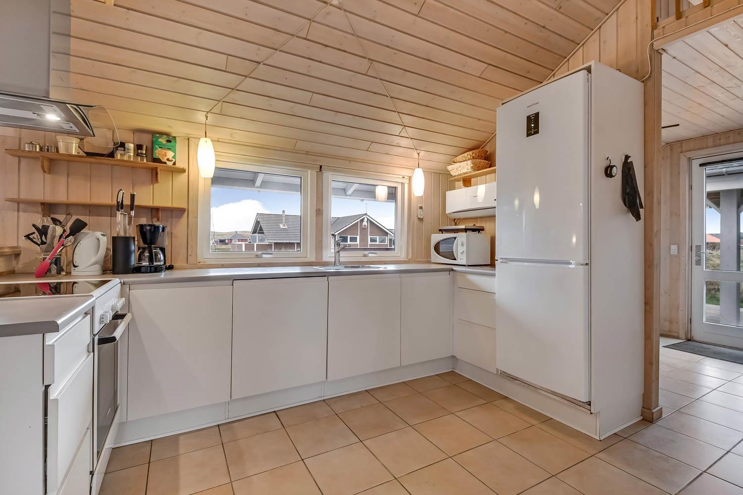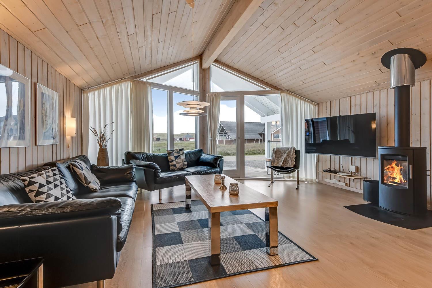 Når I ankommer til huset og parkere bilen foran, kommer I ind ad hoveddøren, ind i bryggerset, herfra er der adgang til hele huset. Stuen er kombineret med køkkenet og er meget velholdt og moderne indrettet med lædermøbler, skøn brændeovn og varmepumpe som begge er med til at give en dejlig varme og spare på elregningen, B&O F-TV med danske og tyske programmer, spisebord med stole og udgang til terrassen. Stue og køkkenet er åbnet op i kip og de store panoramavinduer giver et dejligt lysindfald i hele rummet. Stort køkken med alt i moderne hjælpemidler. Glaskeramisk komfur, emhætte, køleskab med 40 l. fryser, opvaskemaskine og klinkegulv. 4 gode soverum:1DB + 1DB + 1DB + 1DB. Hems med sovemuligheder. Badeværelse med toilet, håndvask, bruser, spa og adgang til sauna og flisegulv med gulvvarme. Ekstra badeværelse med toilet, håndvask og bruser, gulvvarme. Til de små er der barneseng og barnestol. Vaskemaskine og tørretumbler er selvfølgelig også til rådighed. 1 husdyr er tilladt. Ikke rygerhus.