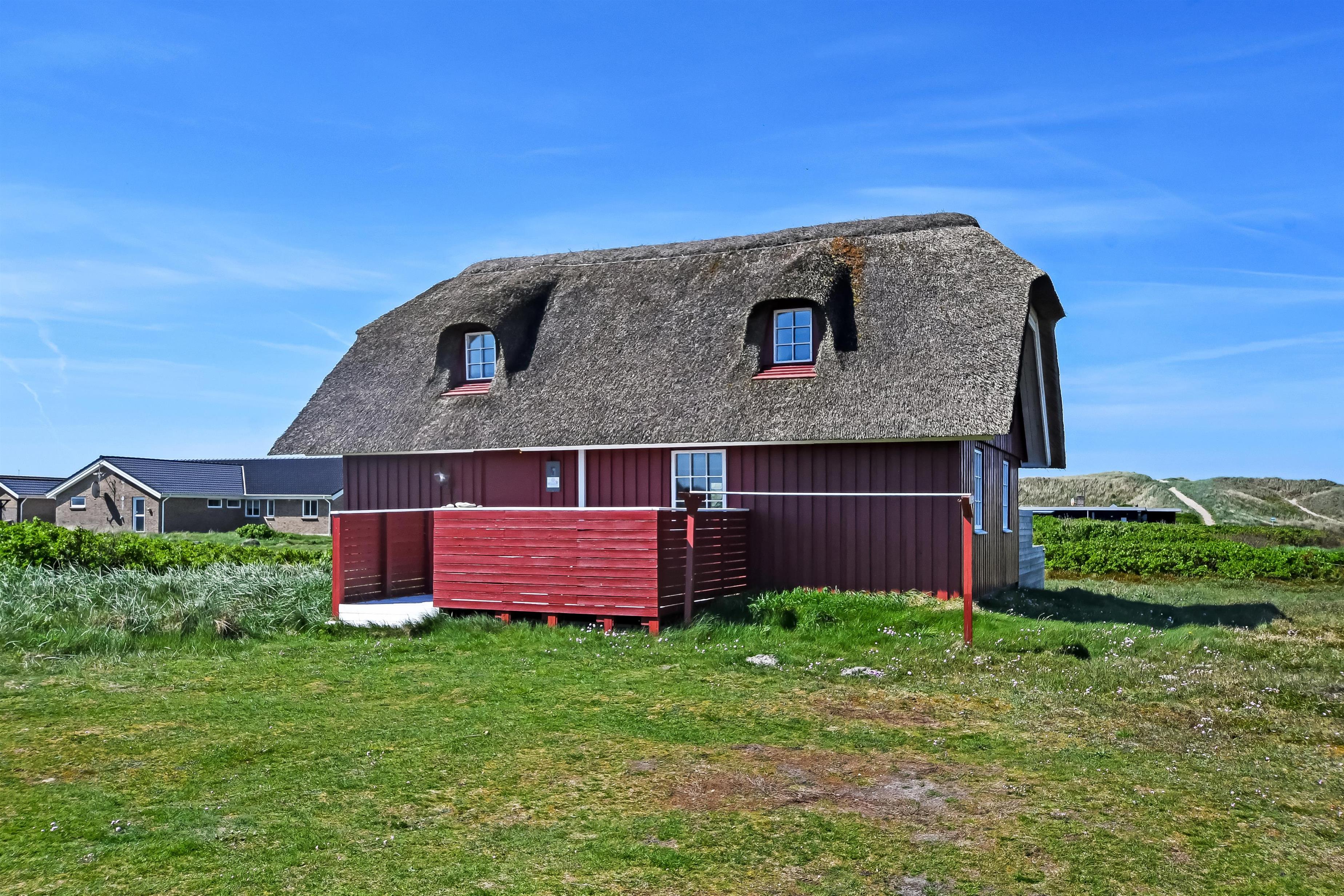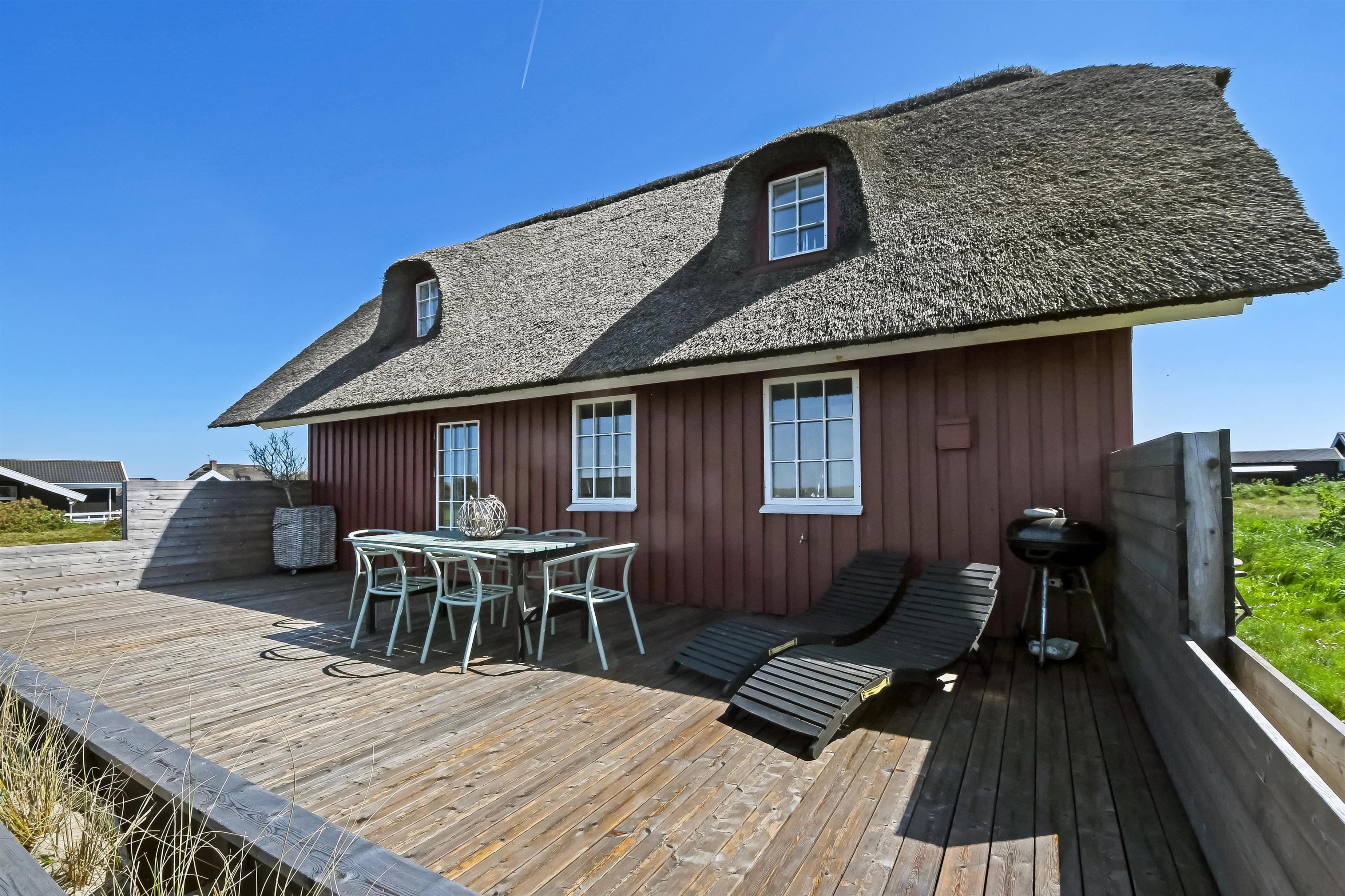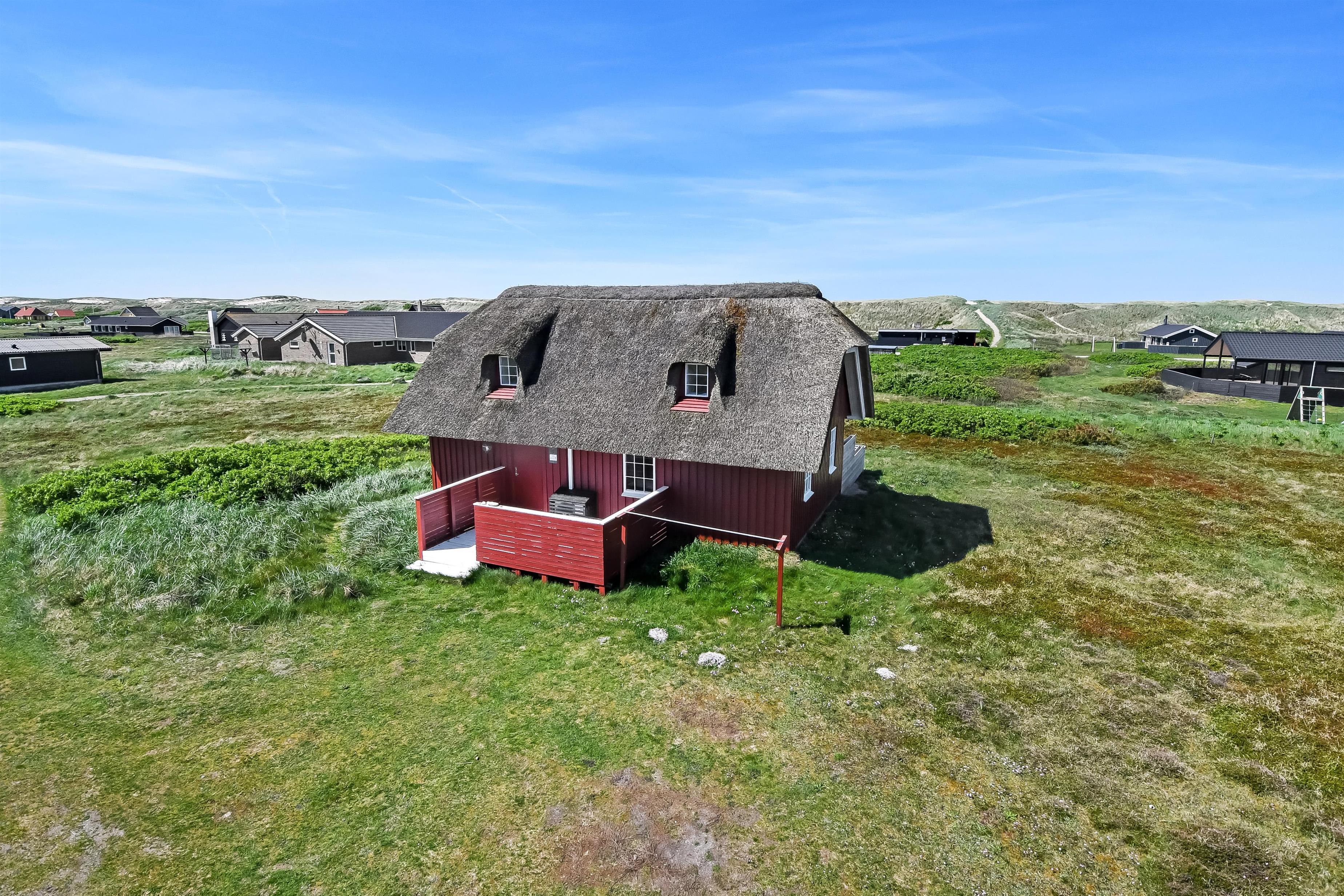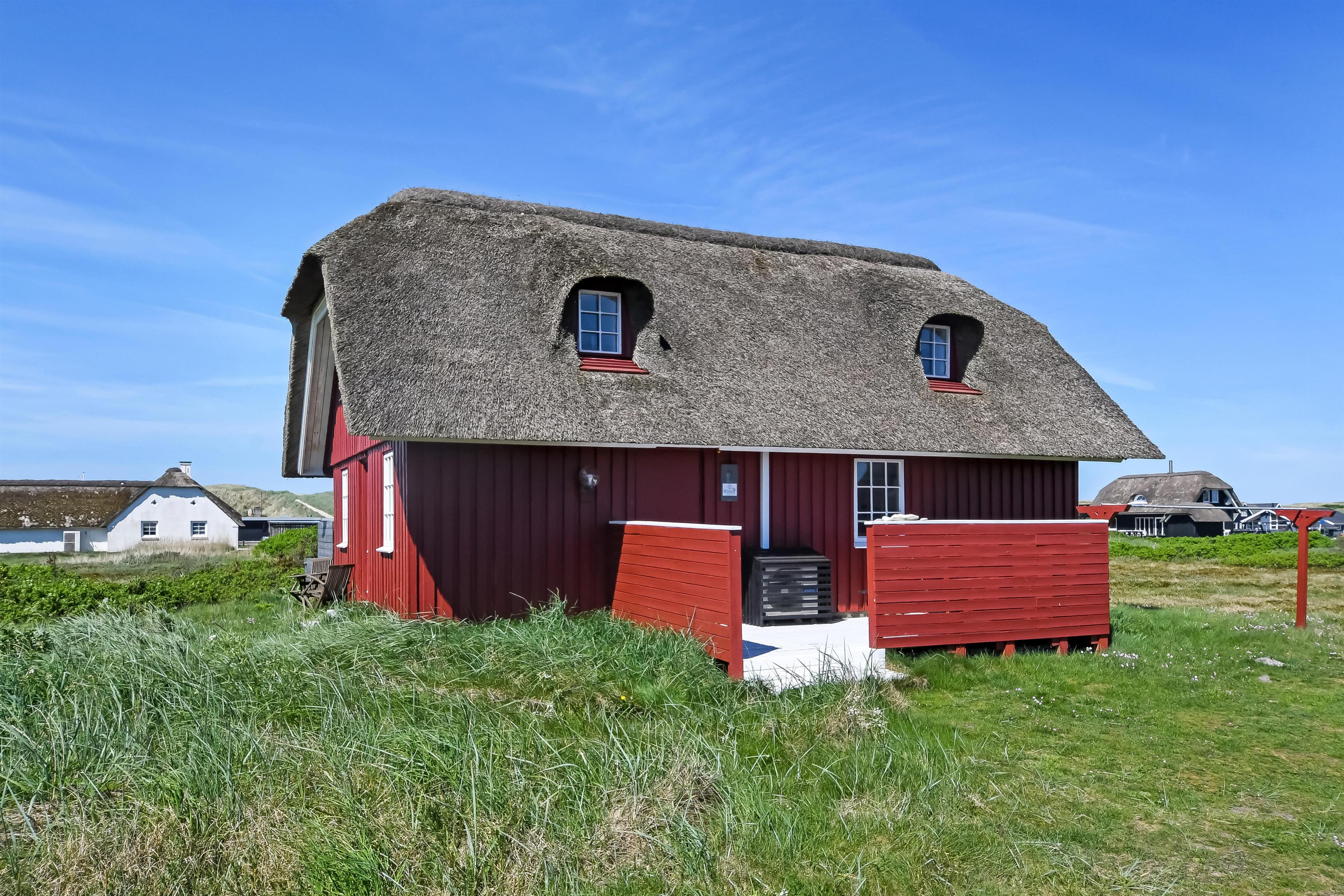 Dette idylliske nyrenoveret feriehus i træ med stråtag er beliggende på en naturgrund tæt på Vesterhavet, huset er bygget i 2 etager, og har plads til 6 personer. I 2023 er huset moderniseret blandt andet nye møbler og nyt køkkenservice m.m. Der er gratis trådløs internetadgang.