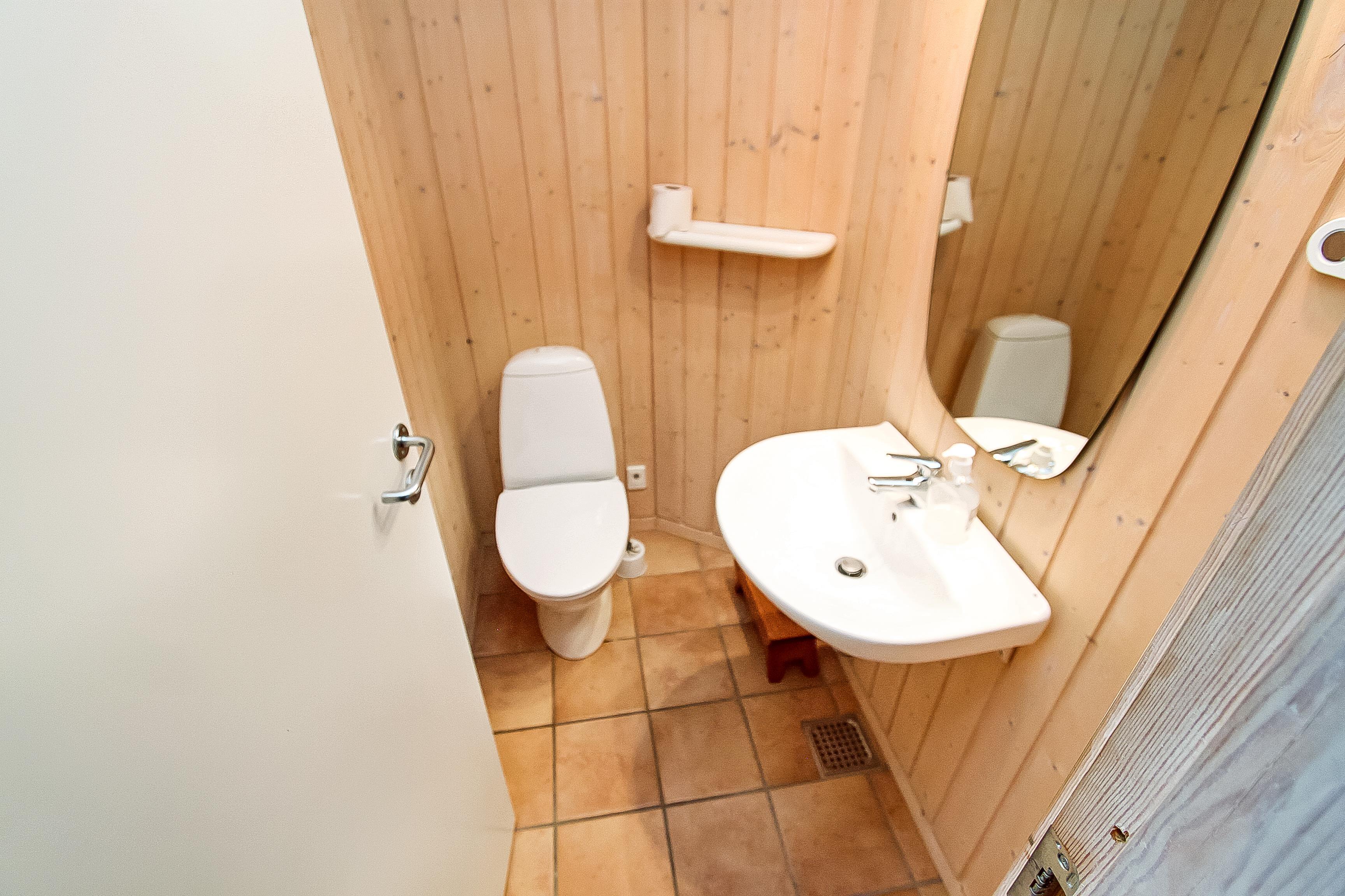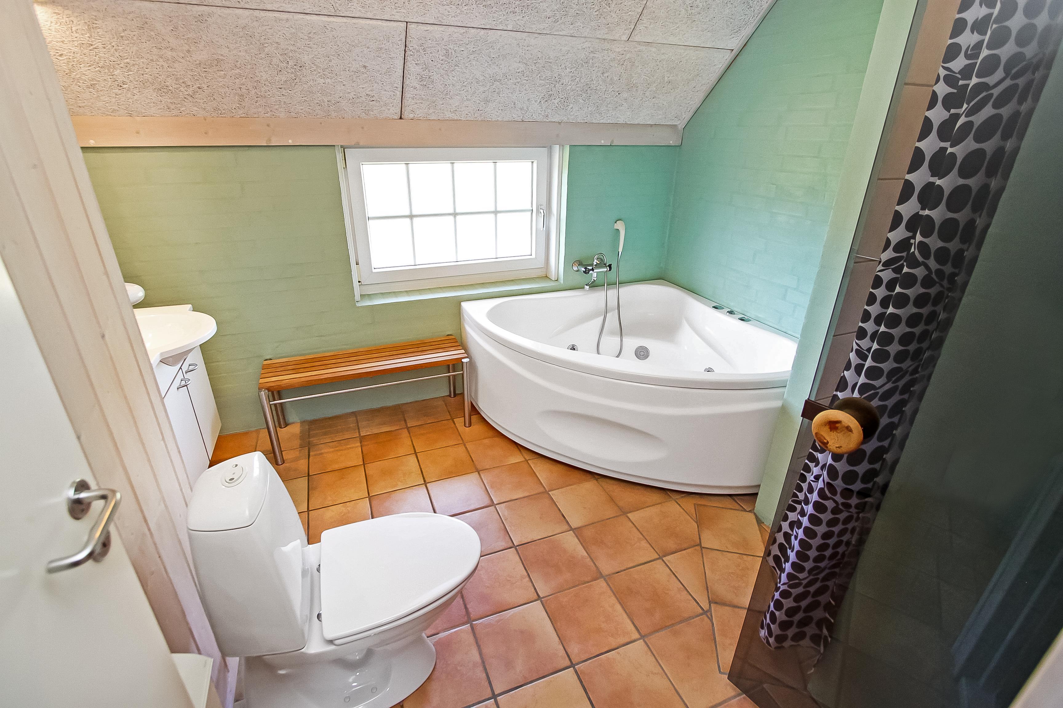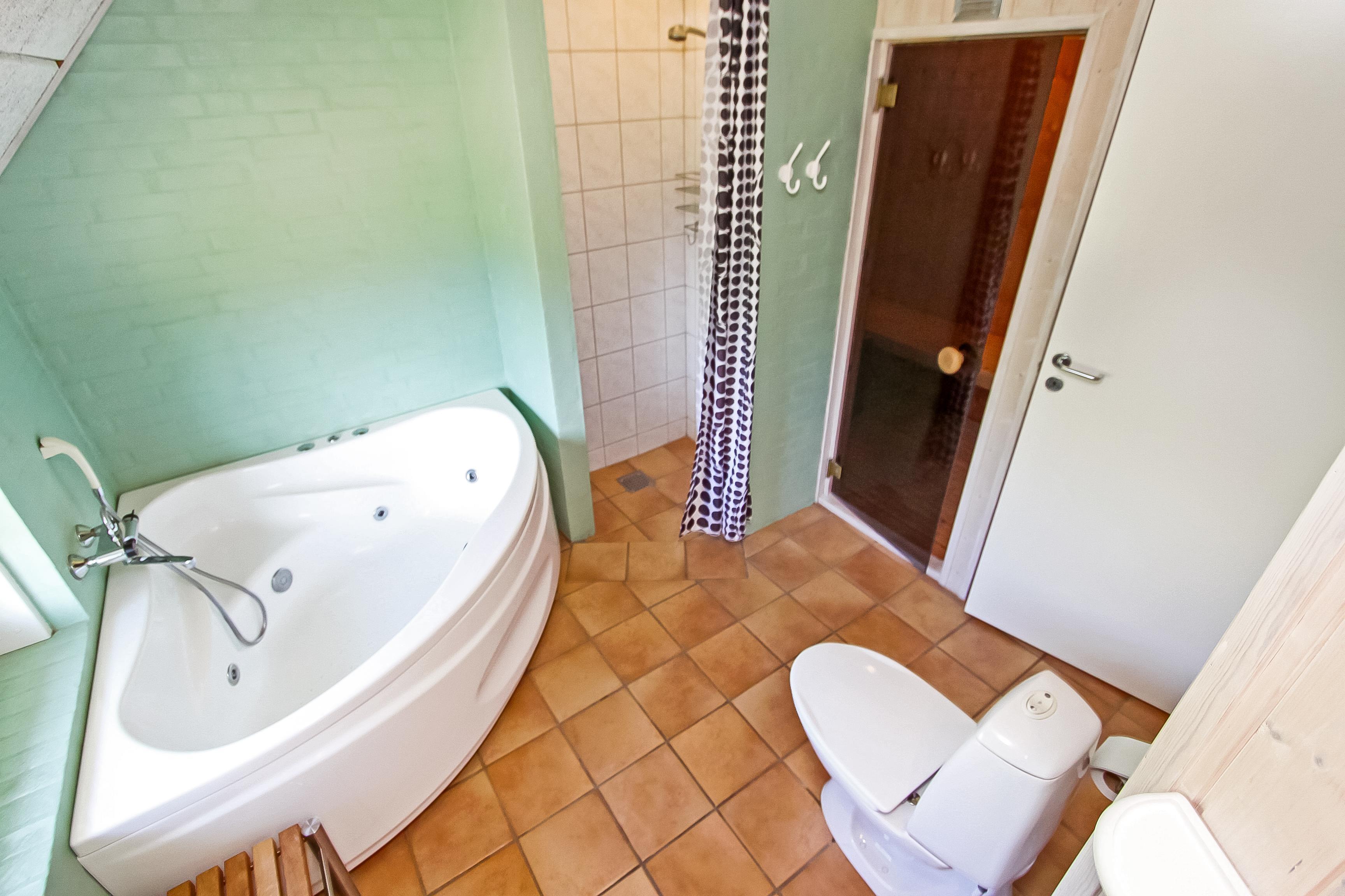 Køkkenet er veludstyret med glaskeramisk komfur, køle-/fryseskab, opvaskemaskine og mikroovn. Badeværelset er med toilet, håndvask, bruser, spabad og adgang til sauna. Der er også vaskemaskine og tørretumbler.