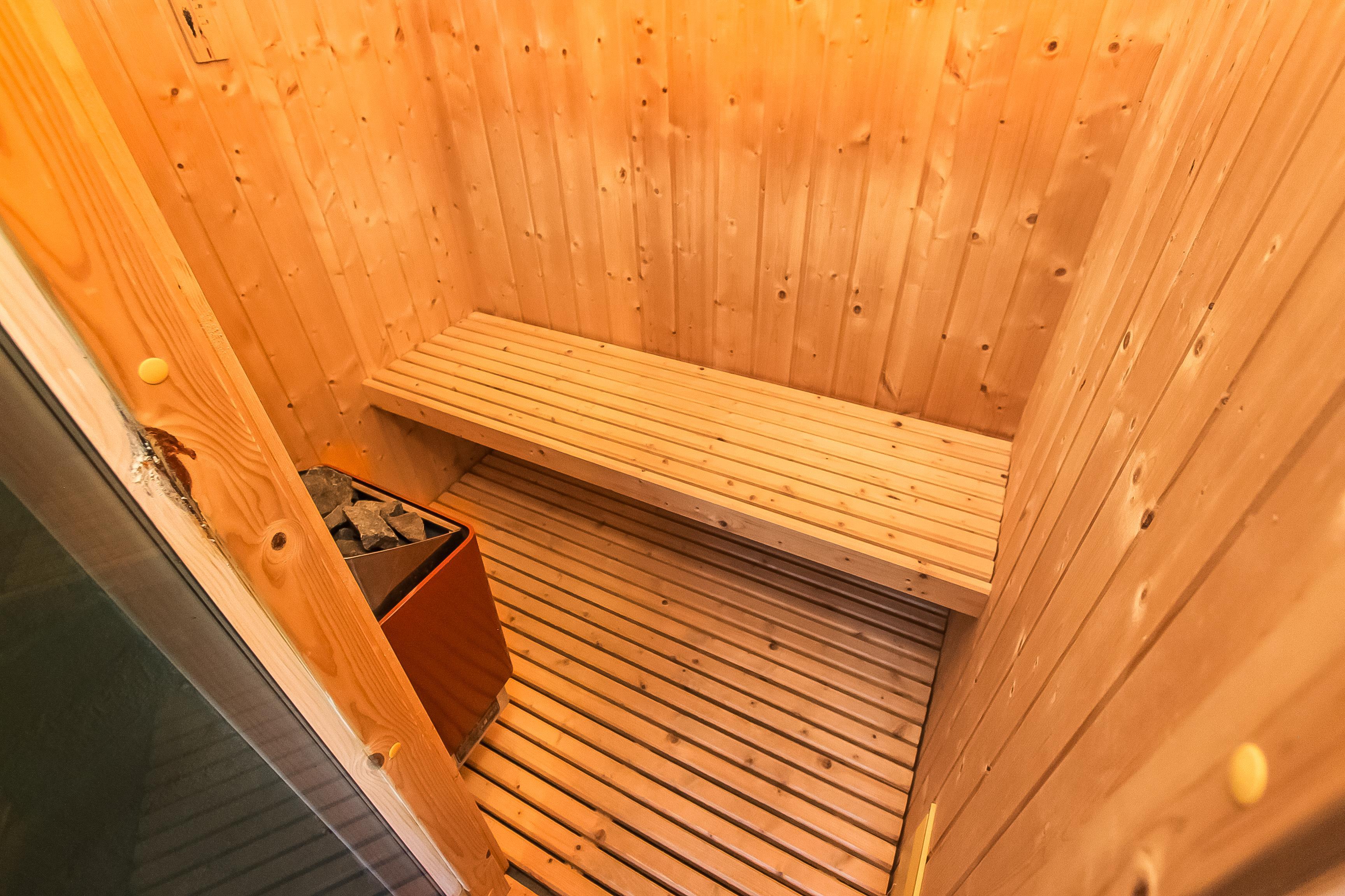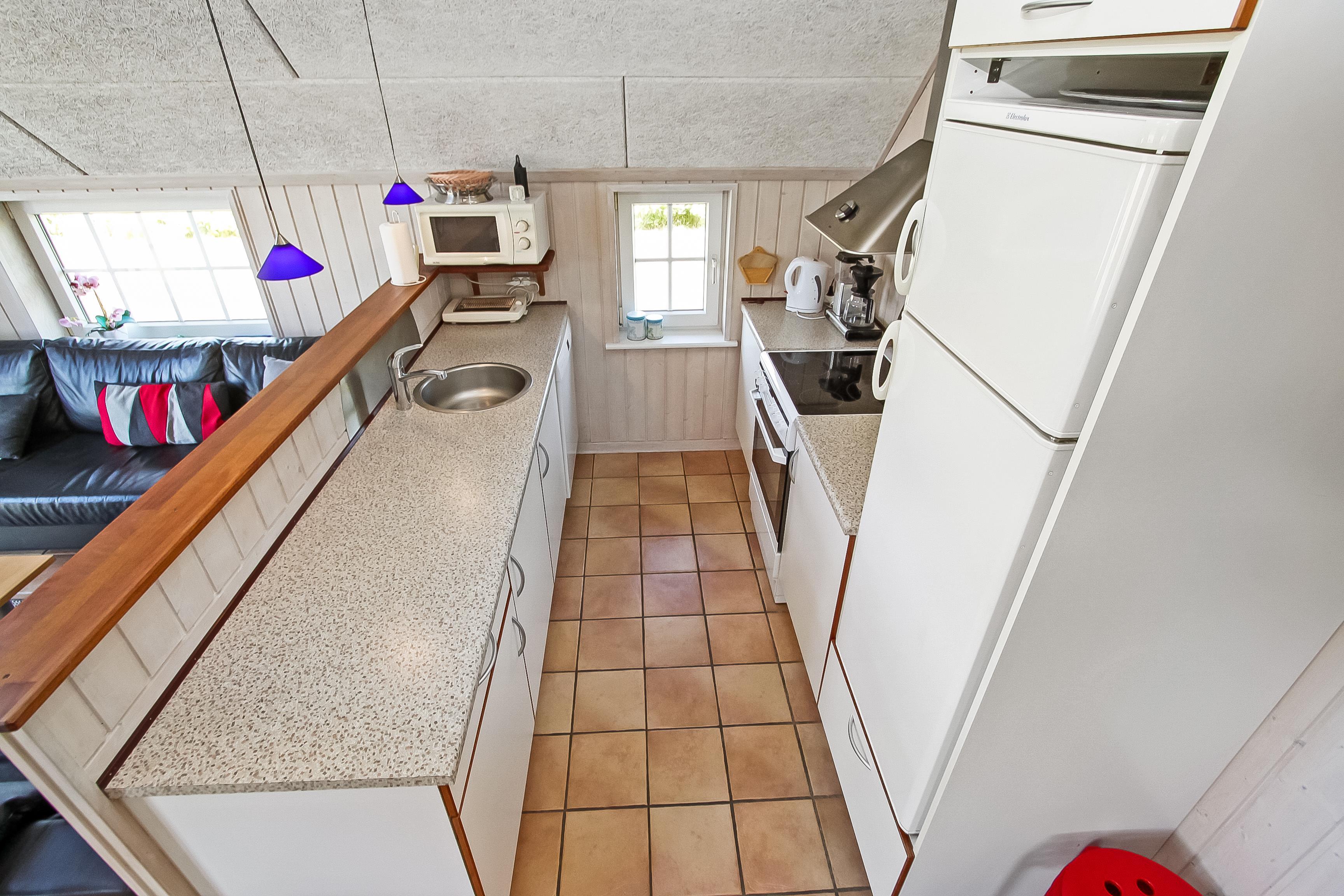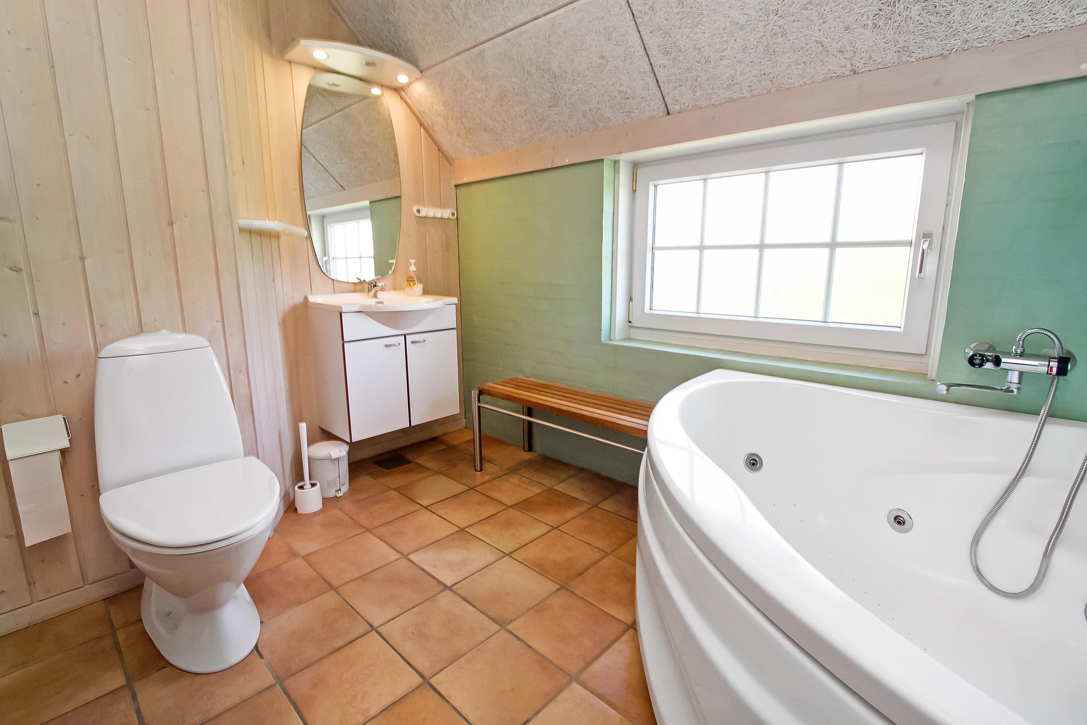 Køkkenet er veludstyret med glaskeramisk komfur, køle-/fryseskab, opvaskemaskine og mikroovn. Badeværelset er med toilet, håndvask, bruser, spabad og adgang til sauna. Der er også vaskemaskine og tørretumbler.
