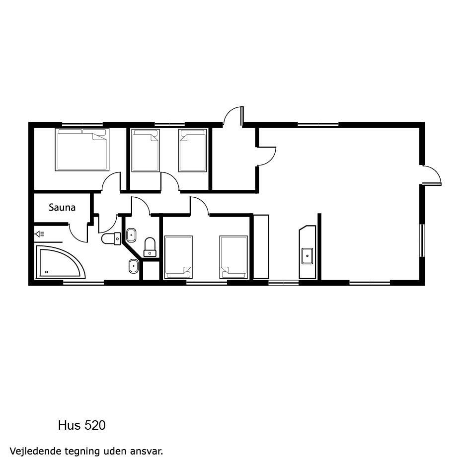 Der er tre soveværelser: (DS) + (2 ES) + (2 ES) samt en hems med plads til 2 personer. Huset er ikke-ryger og tillader op til 2 husdyr. Gratis adgang til Harboøre-centeret følger med.