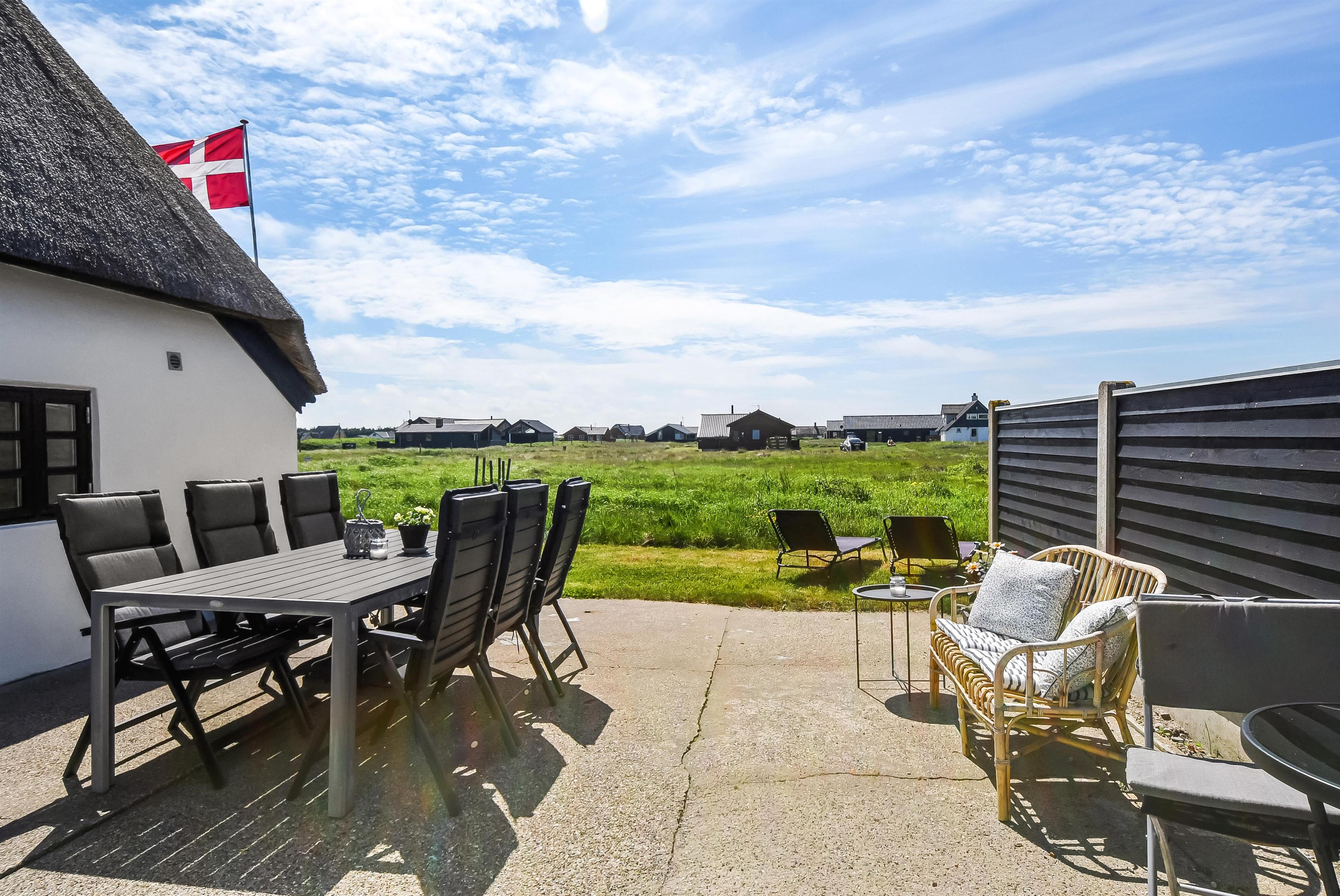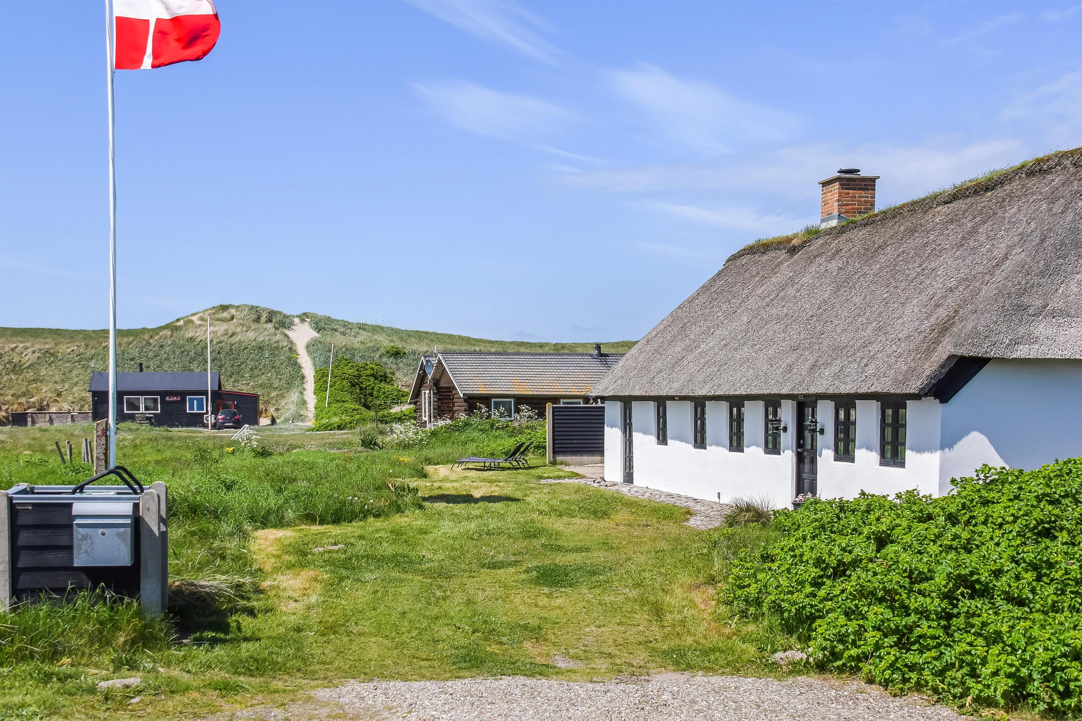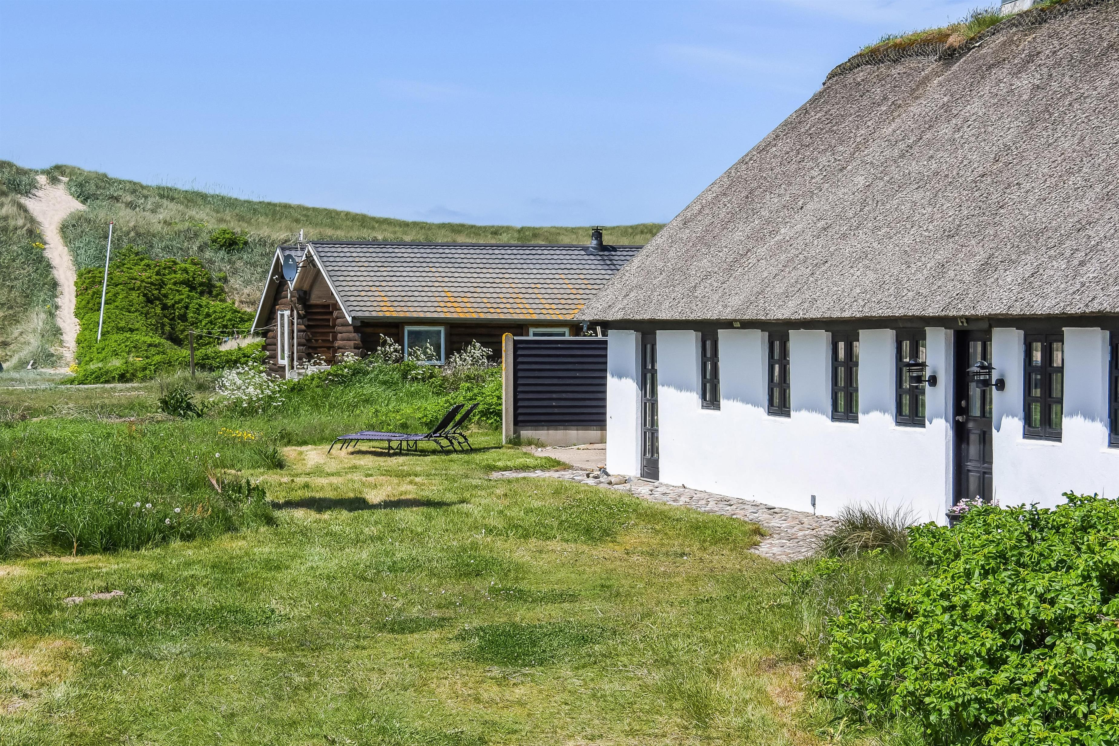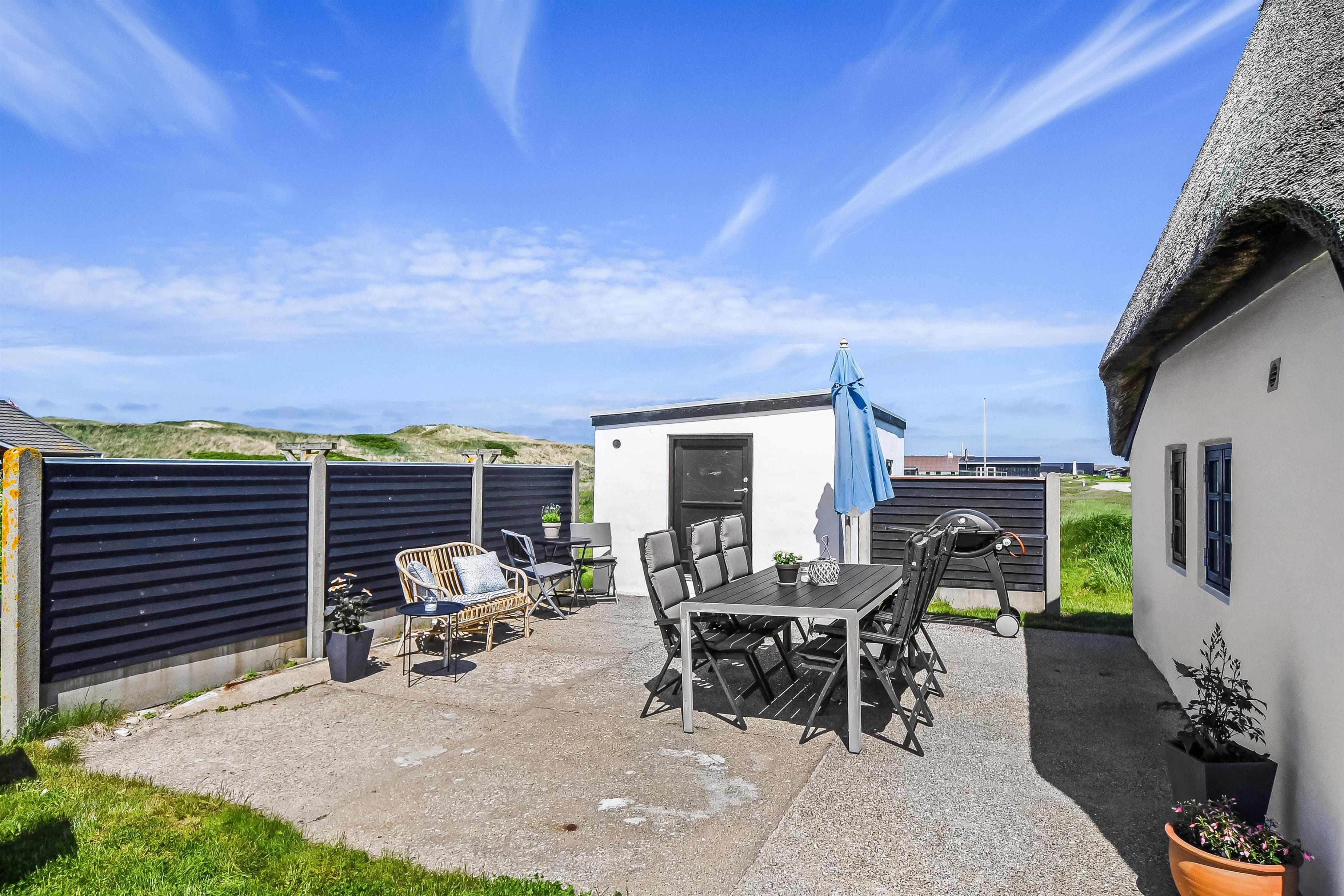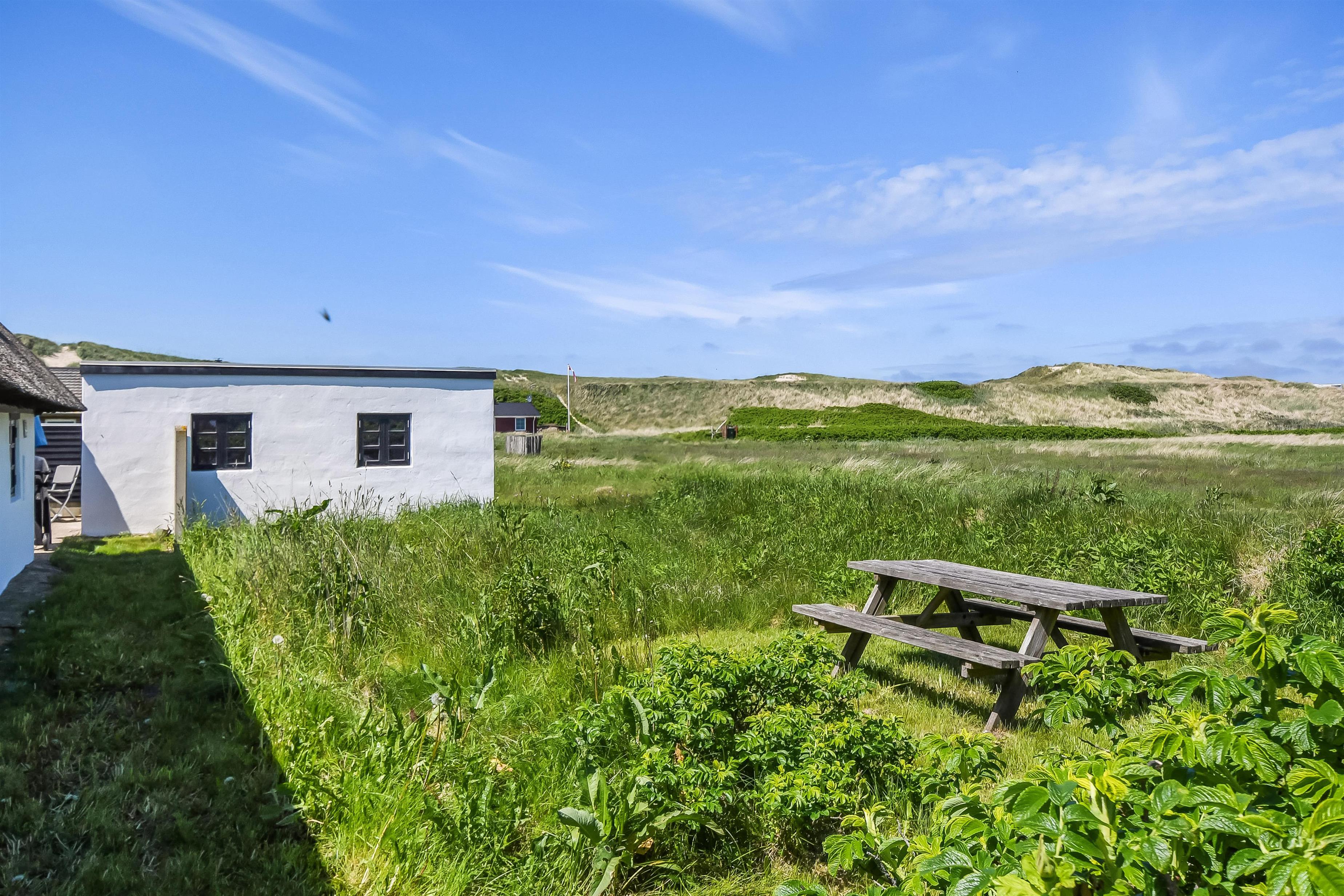 Huset ligger på en ca. 1.361m2 dejlig natur- / klitgrund. Dejlig terrasse med havemøbler, liggestole, hynder og gasgrill. Udhus med mulighed for at stille cykler m.m. Nyd en grillaften eller nyd solen og beliggenheden. Huset har også en bænk, hvor morgenkaffen kan nydes. Flere steder i huset er der kig til klitterne ved Vesterhavet som ligger ca. 200 fra huset. Kun ca. 250 m. fra huset ligger det sæsonåbne minimarked, som byder på frisk morgenbrød og hvor de daglige indkøb også kan klares. Gå en kort tur i område, hen over de høje klitter og straks derefter åbenbarer Vesterhavet sig. Hver dag byder Vesterhavet på nye maleriske oplevelse, der inviterer til en frisk gå- eller løbetur. Indenfor kort køreafstand nås både den aktive handelsby i Lemvig med flere specialbutikker eller den unikke fiskerby Thyborøn, som udover den aktive fiskerihavn også byder på badestrand og op til flere aktivitetstilbud, som alle er et besøg værd.