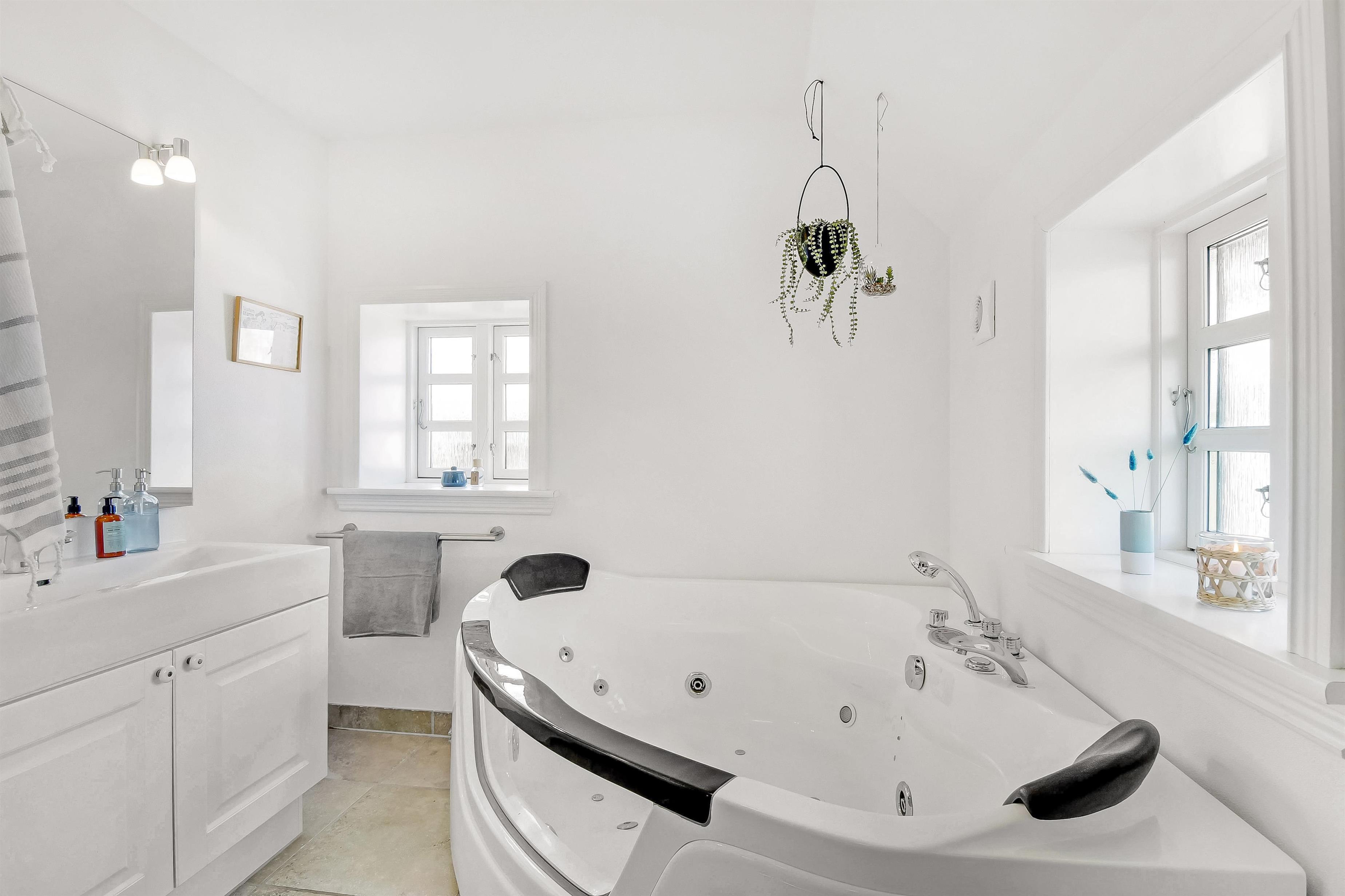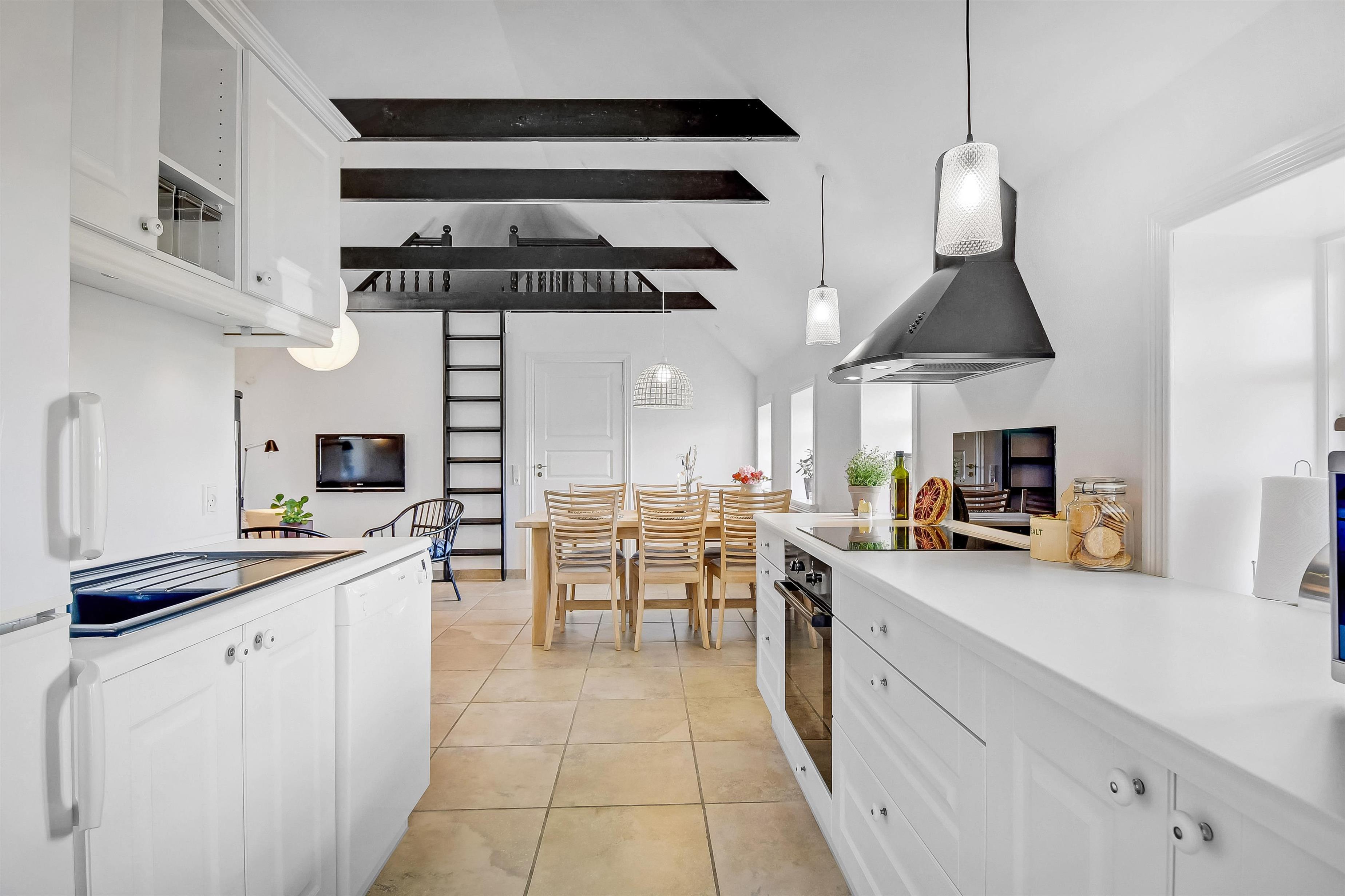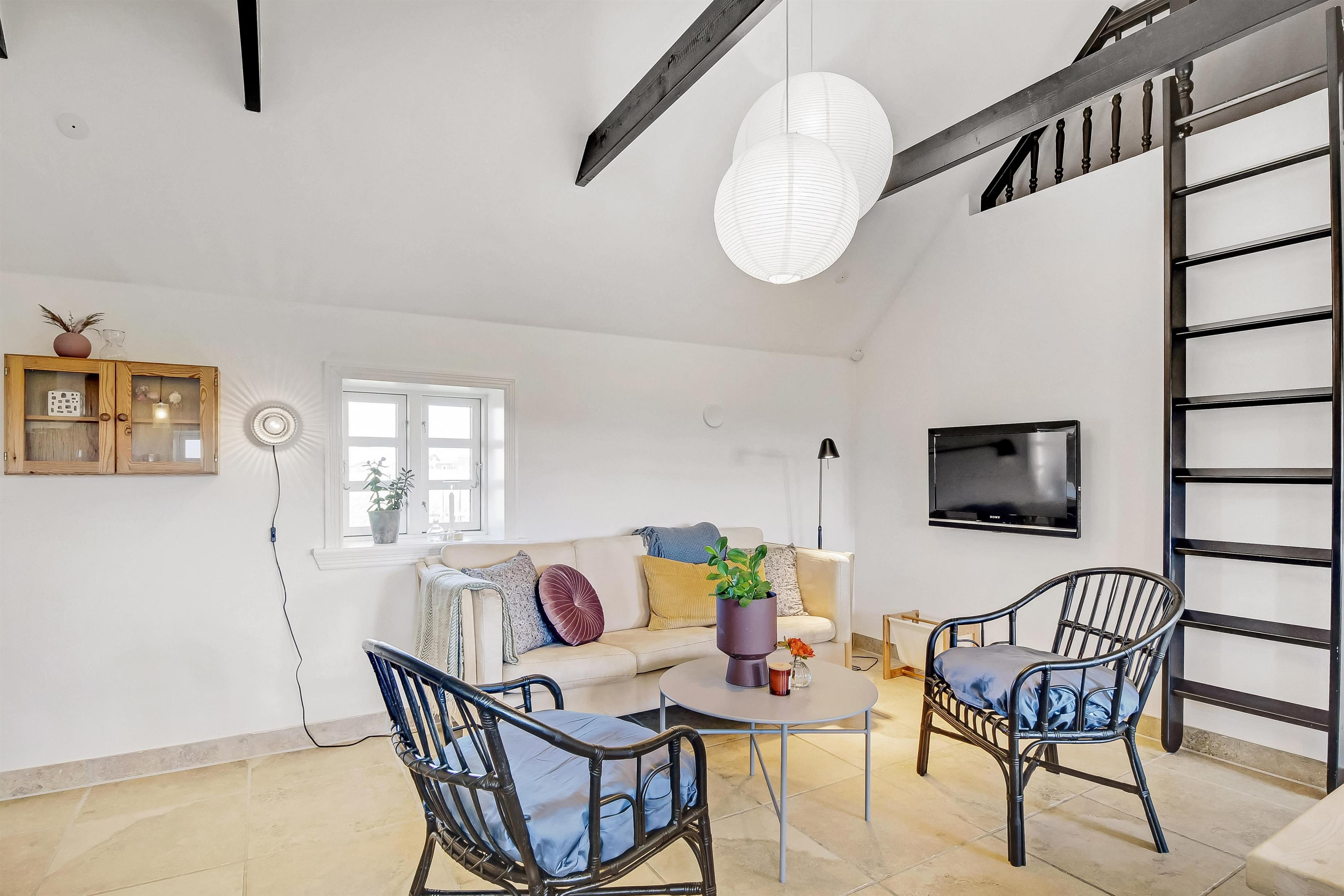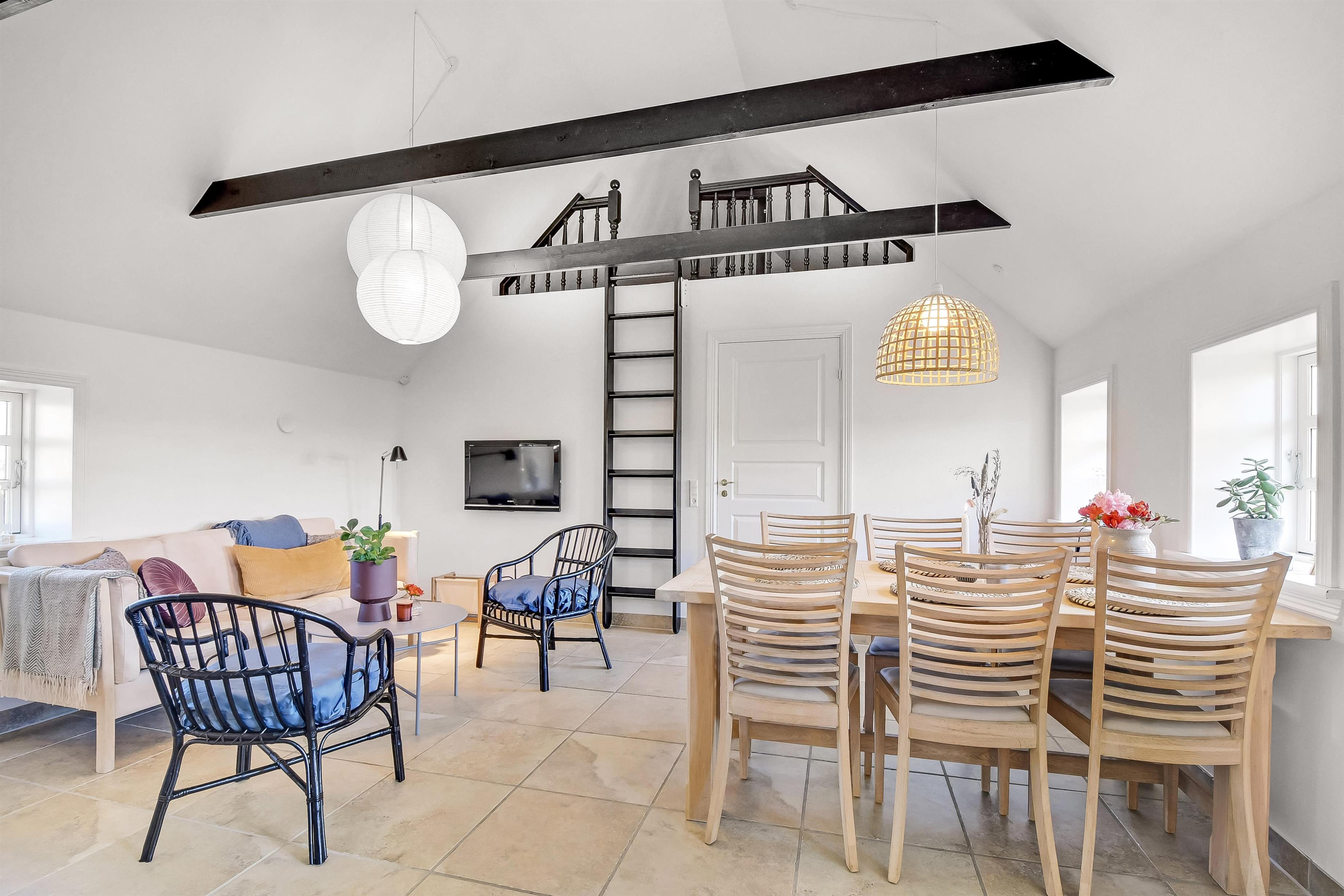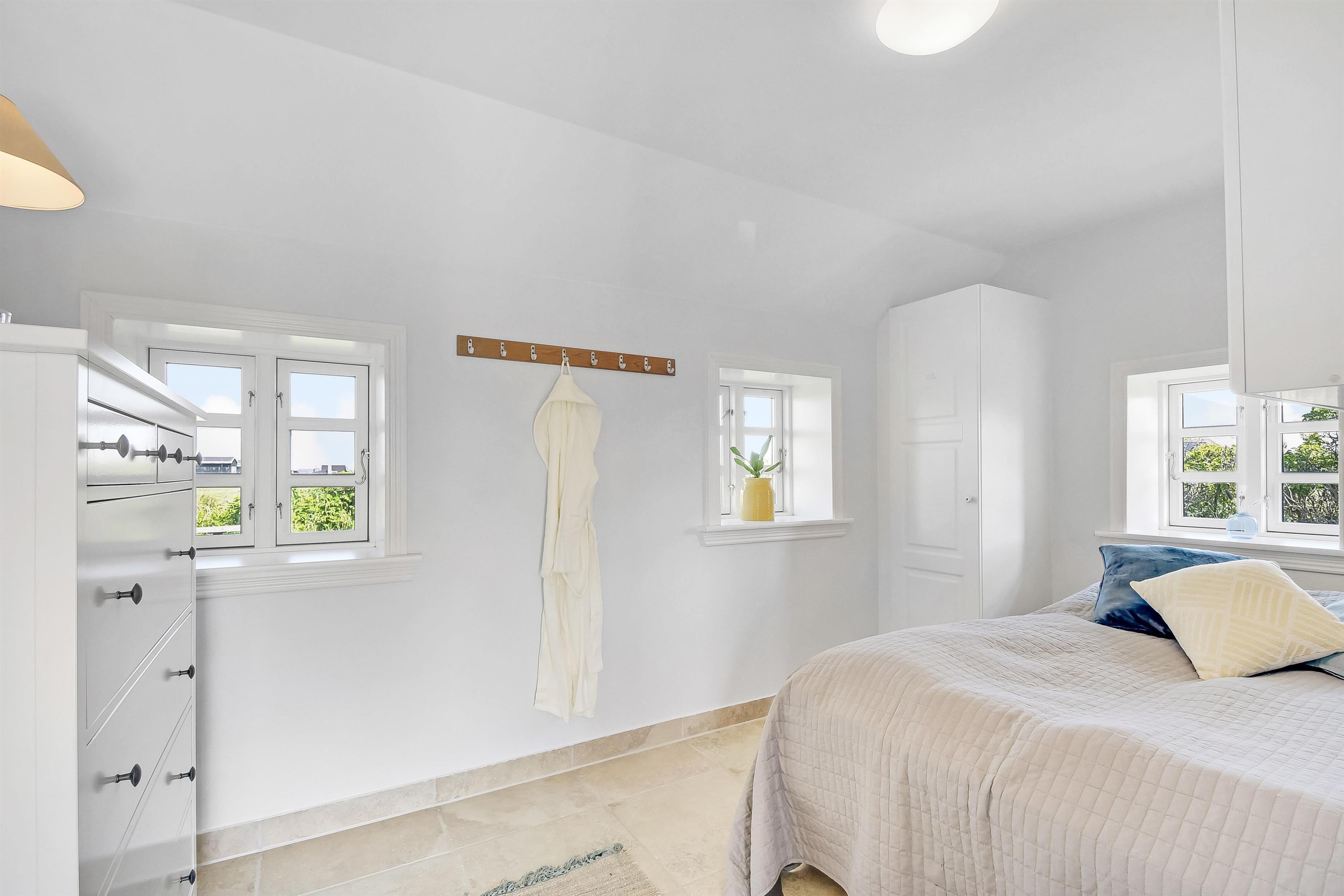 Allerede når bilen rammer grusvejen, med få meter til huset, bliver det klart at belliggenhed og hus er noget ganske særligt. Når man drejer ind på grunden og parkerer bilen begynder ferien. En dejlig entre byder velkommen (men pas på – døren er lav). Dejlig opholdsstue kombineret med et flot køkkenhjørne byder jer velkommen. Køkkenet har alt i service og køkkengrej og er også udstyret med keramisk kogeplade, indbygningsovn, emhætte, køleskab med fryseboks og opvaskemaskine. Tæt ved køkkenet står spisebordet til 6 personer, som hele familien kan samles ved når sulten skal stilles. Opholdsstuen har en polstersofa, fibernet-TV som også har en Chromecast så der er mulighed for streaming af radio og TV programmer samt adgang via en stige til en hyggelig hems – som de små helt sikkert sætter stor pris på. En flot væghængt brændeovn kan opvarme huset, så man kan holde varmen på de kolde efterårsdage. 3 flotte værelser (1DS, 1DS, 1DS). Fantastisk badeværelse med muret bruseniche, vaskesøjle med vaskemaskine og tørretumbler, toilet, håndvask og klinkegulv med gulvvarme samt lækkert spabad. Hele huset har klinkegulv med gulvvarme, så du aldrig fryser om fødderne, ligesom det er meget rengøringsvenligt. Opholdsrummet er bygget i kip og det føles rummeligt og luftigt. Ikke ryger hus. Husdyr ikke tilladt.