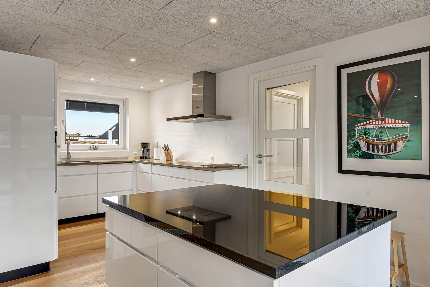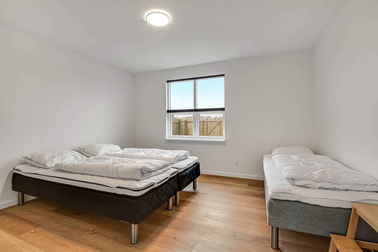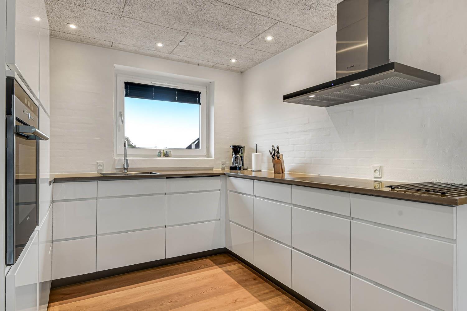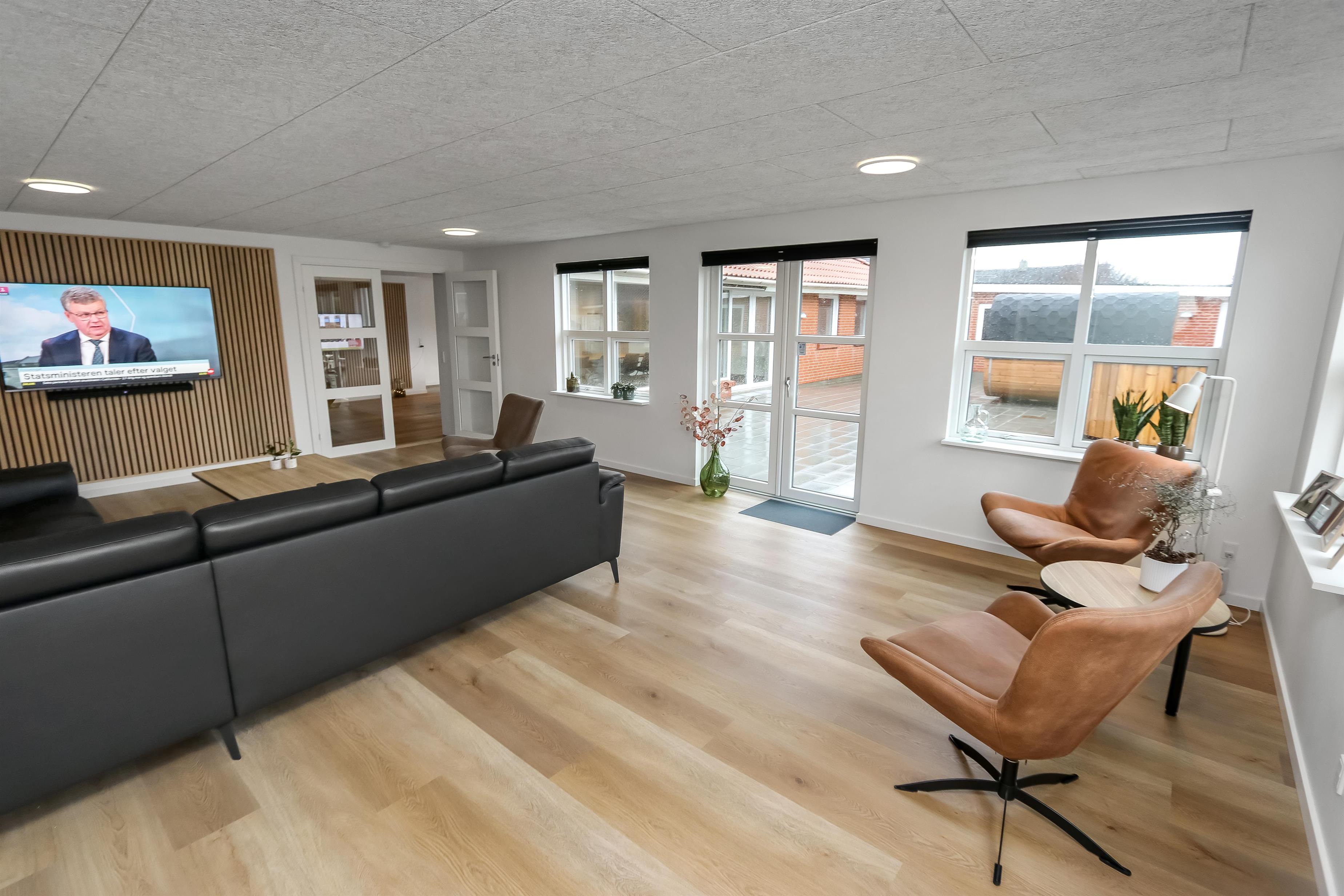 Feriehus på 240 m2. Huset er bygget i 1997 – men er i 2022 blevet totalt istandsat. Huset er minimalistisk i sit udtryk, praktisk indrettet og holdt i lyse, venlige og indbydense farver og materialer. Stor Entrè med vaskemaskine, tørretumbler og indbyggede skabe med loft til gulv låger byder velkommen. Fra entréen åbenbarer der sig et flot kombineret spisestue- og køkkenhjørne med gulvvarme. Helt nyt og indbydende køkkenhjørne med alt i service og køkkengrej, opvaskemaskine, keramiske kogeplader, indbygningsovn, emhætte Køle- / fryseskab, mikroovn. I køkkenafdelingen er der også en helt ny brændeovn ligesom den første af huset i alt 3 varmepumper hænger. Alt sammen optimeringer som gør huset særdeles energioptimeret og billigt i forbrug. En forlængelse af køkkenet er det store spisebord praktisk placeret, hvor der er rigeligt plads til alle gæster. Opholdsstuen med, nye lækre lædermøbler, Smart-TV med danske og tyske programmer samt mulighed for streaming af TV / radio / Apps via Chromecast. I huset er der 6 gode soverum med gode nye senge (1DS, 1DS, 1DS, 1DS, 1DS+1ES, 1DS+1ES). Flotte og lækre badeværelser med klinkegulv med gulvvarme, toilet, håndvask og bruser. Ekstra badeværelse med klinkegulv med gulvvarme, toilet, håndvask og bruser. Ikke ryger hus. Max 1 husdyr tilladt.