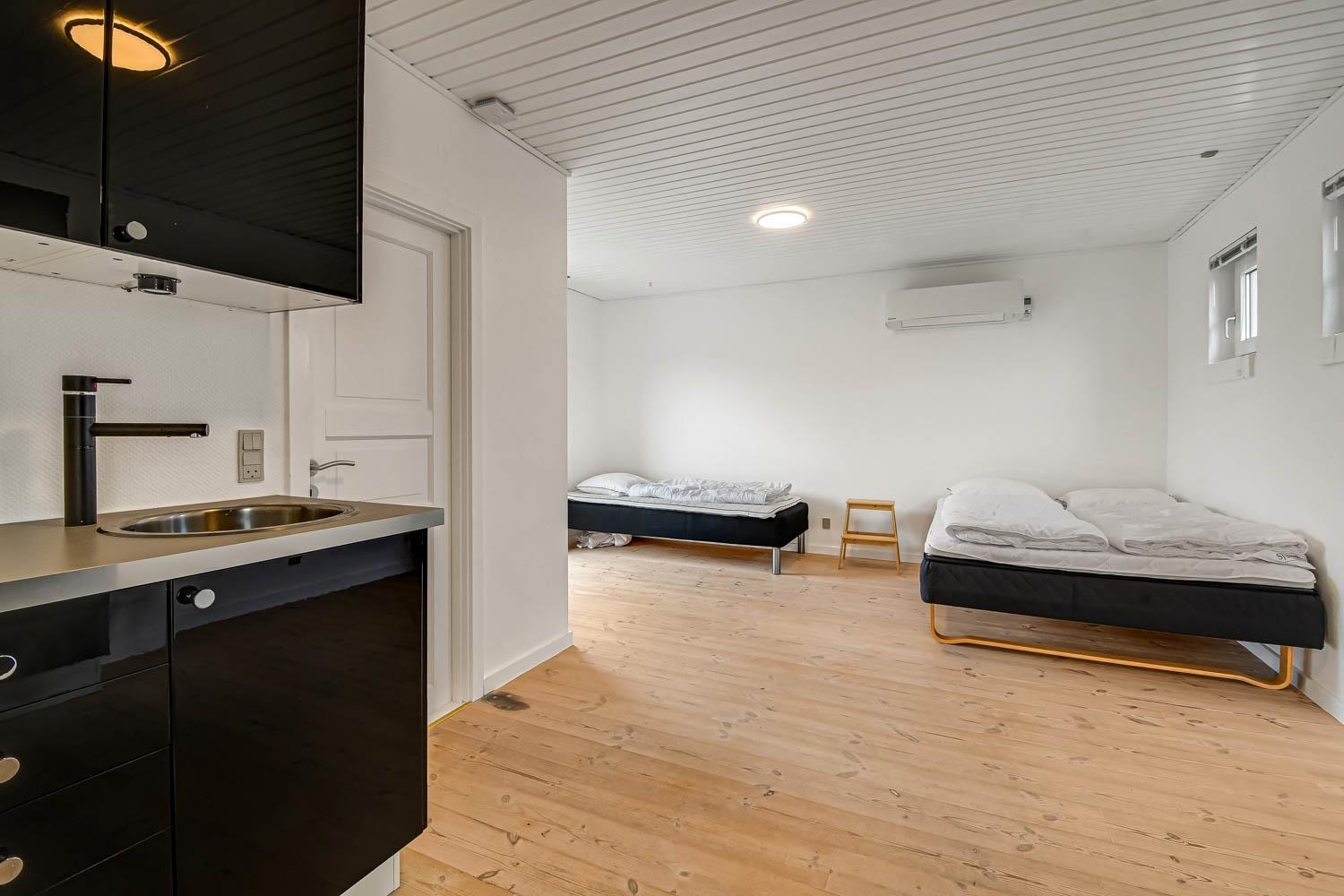 Ved huset er der også bygget et fantastisk anneks. I annekset er der 2 sovepladser (1DS) og adgang til lækket badeværelse med toilet, håndvask og bruser. Der er også et lille tekøkken. Det perfekte opholdssted til de unge mennesker eller måske bedstefar og bedstemor.