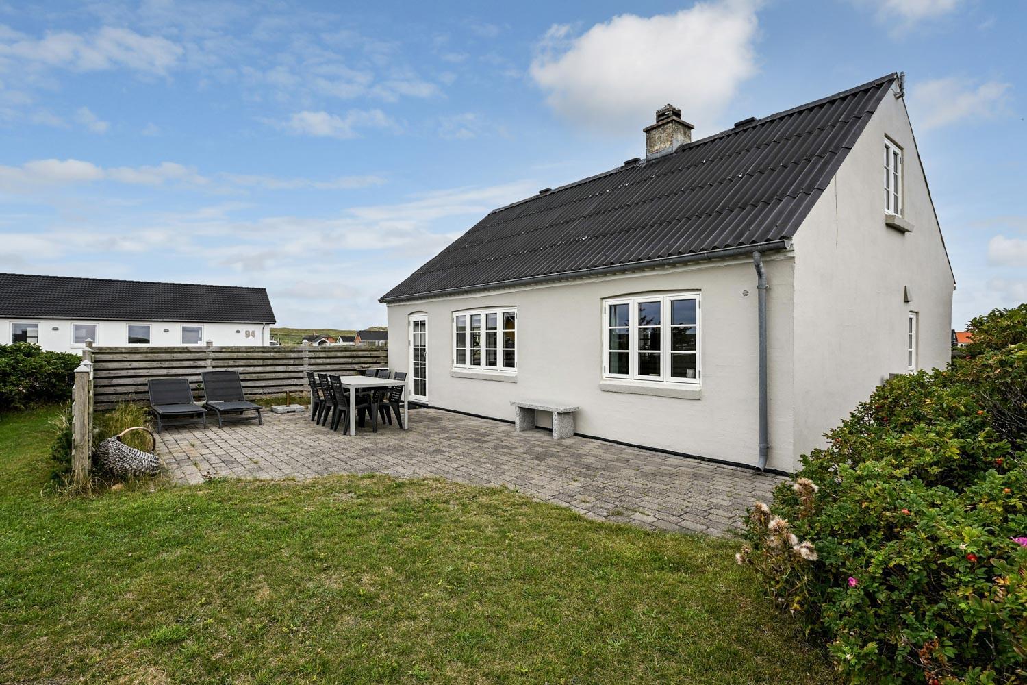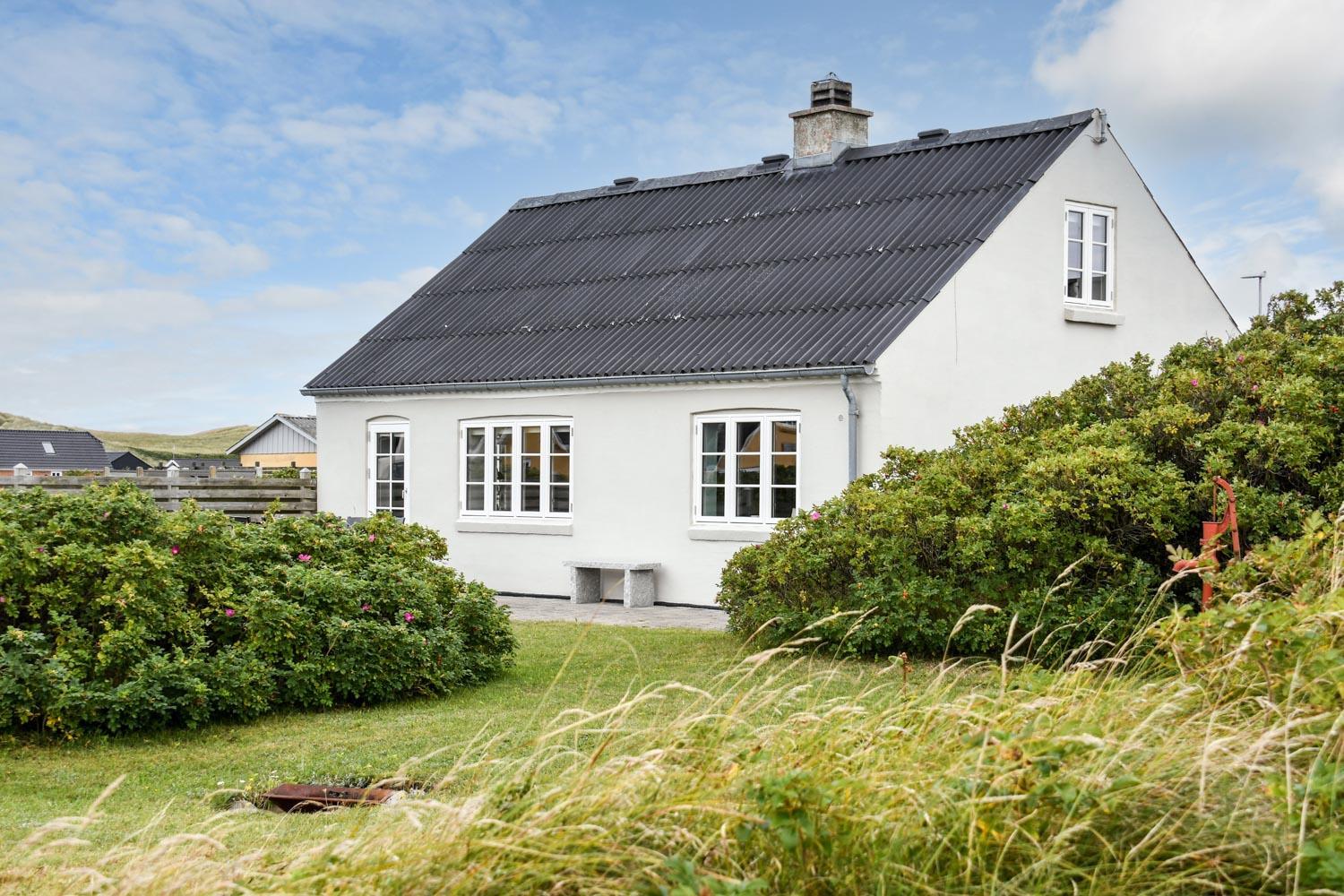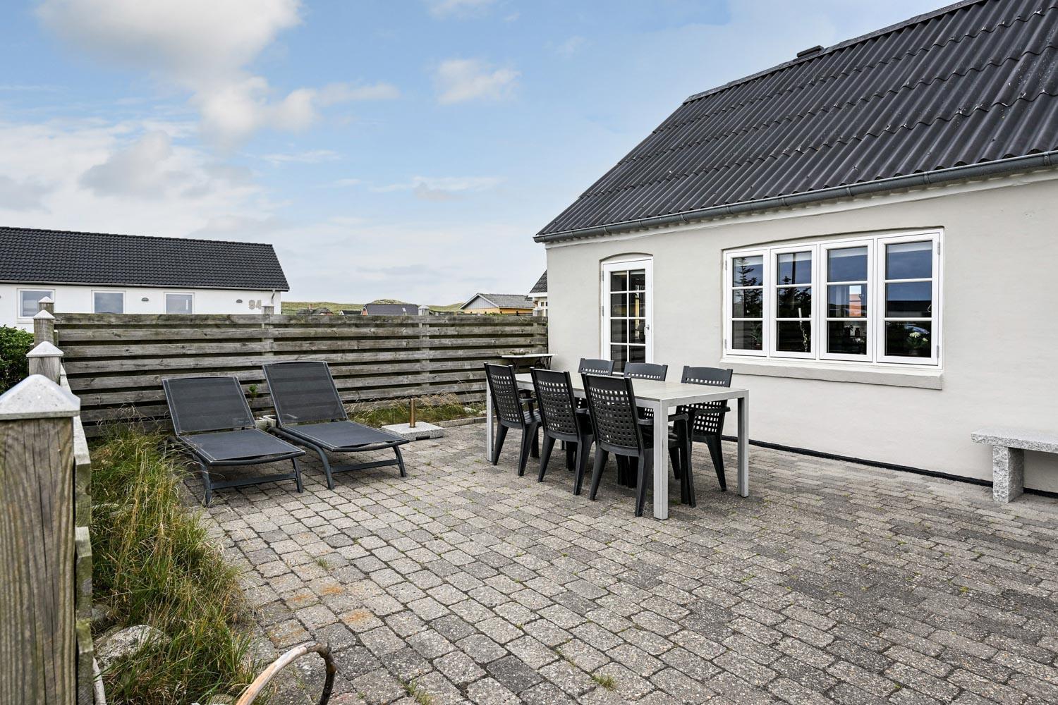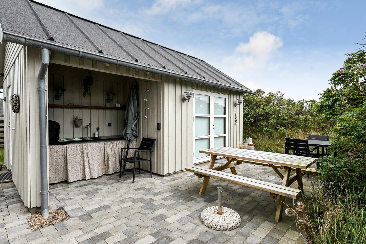 Huset ligger på en 900 m² stor naturgrund blot 300 meter fra Vesterhavet. Udenfor findes flere dejlige terrasser med havemøbler, gasgrill samt et praktisk, integreret udekøkken med bordplade og vask – perfekt til madlavning under åben himmel.