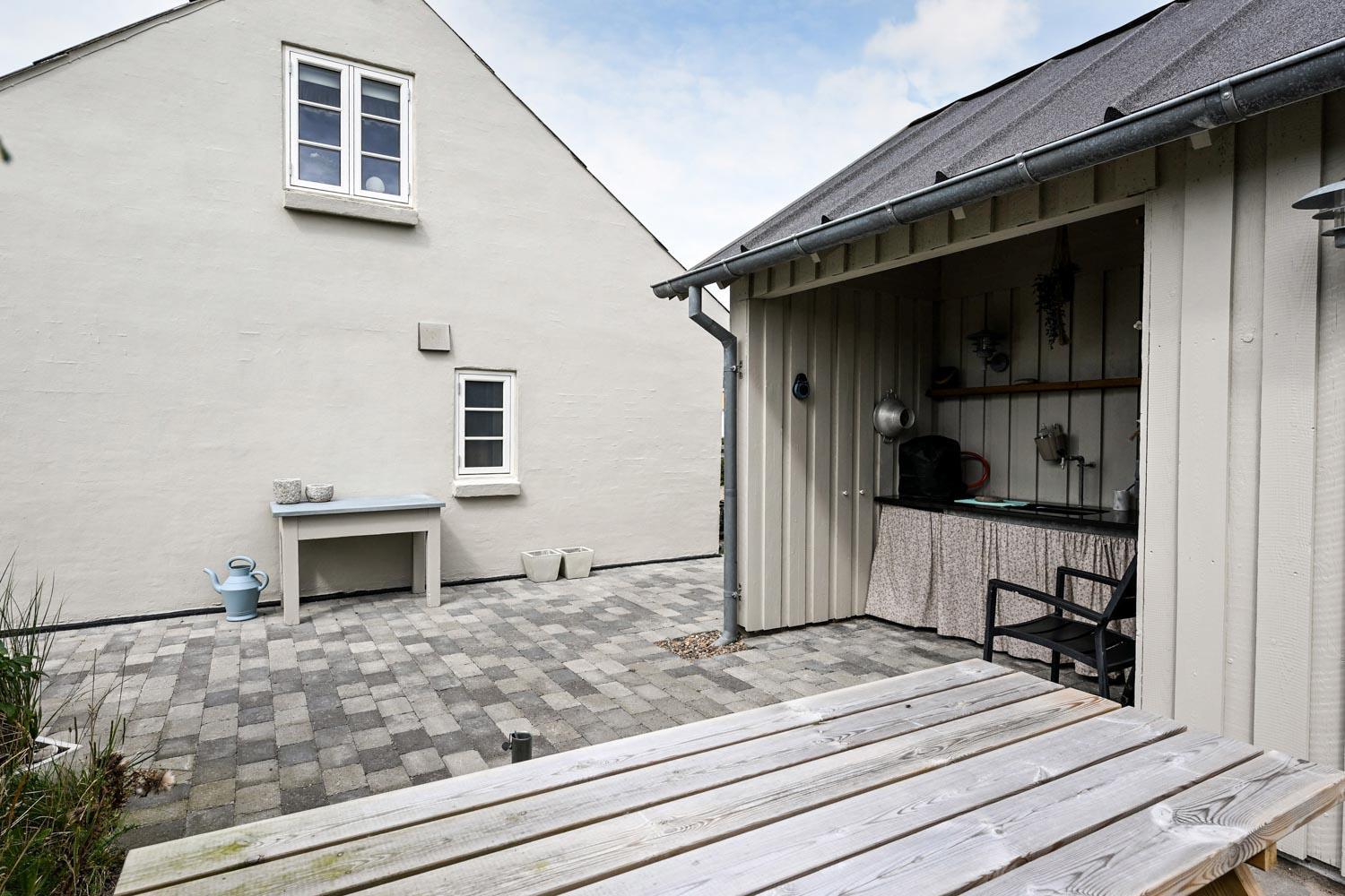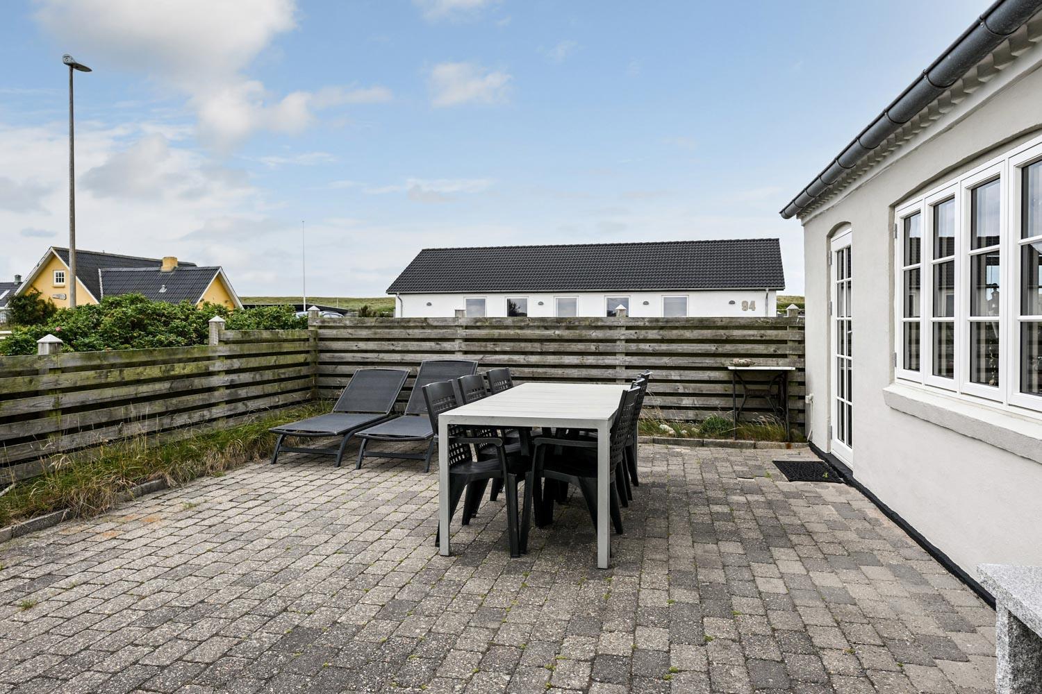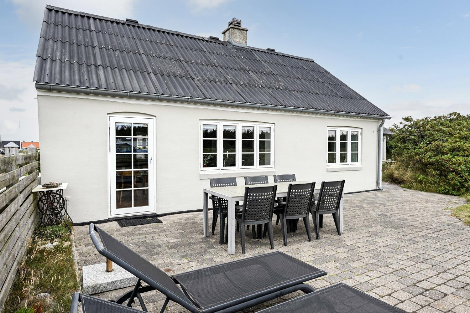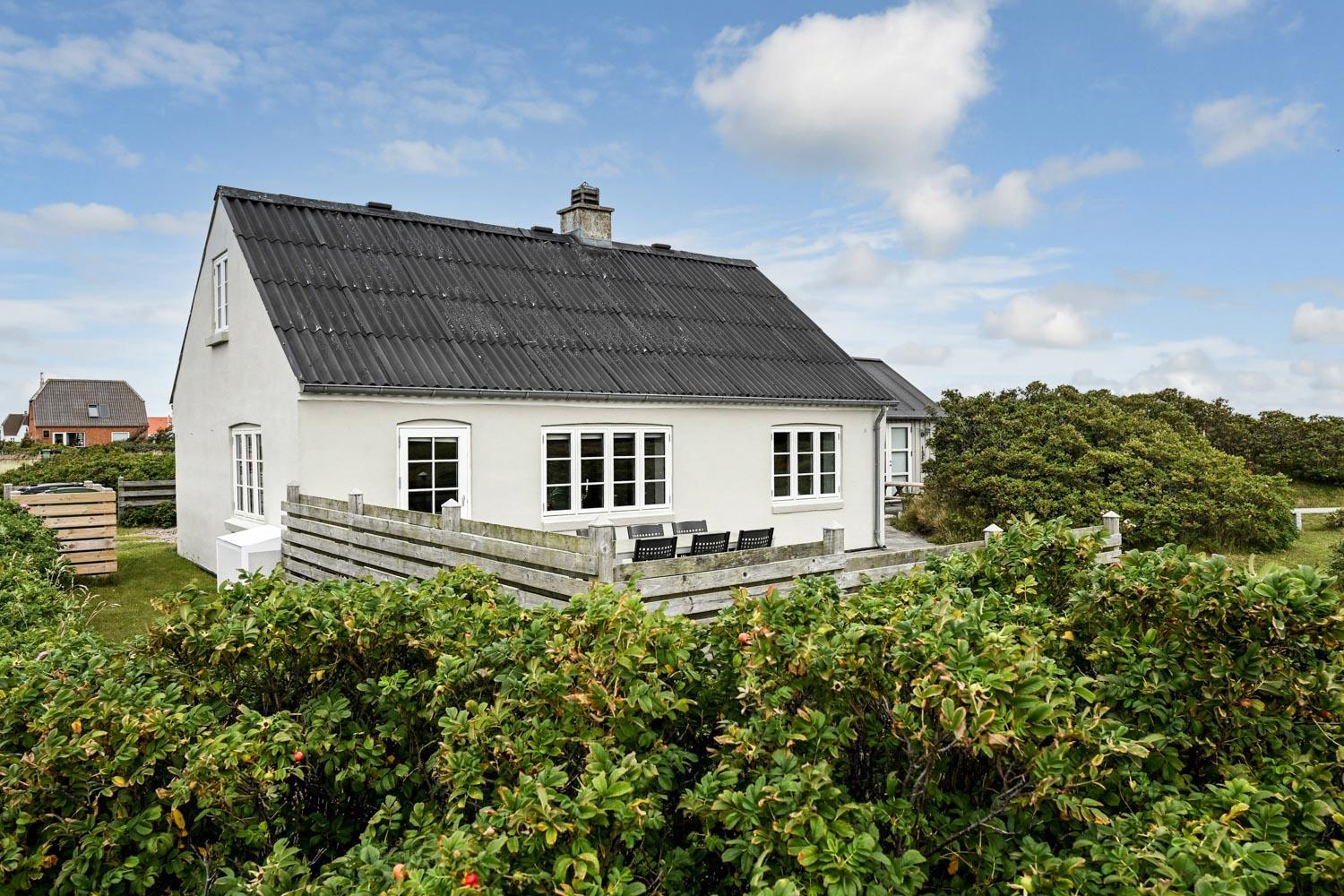 Huset ligger på en 900 m² stor naturgrund blot 300 meter fra Vesterhavet. Udenfor findes flere dejlige terrasser med havemøbler, gasgrill samt et praktisk, integreret udekøkken med bordplade og vask – perfekt til madlavning under åben himmel.