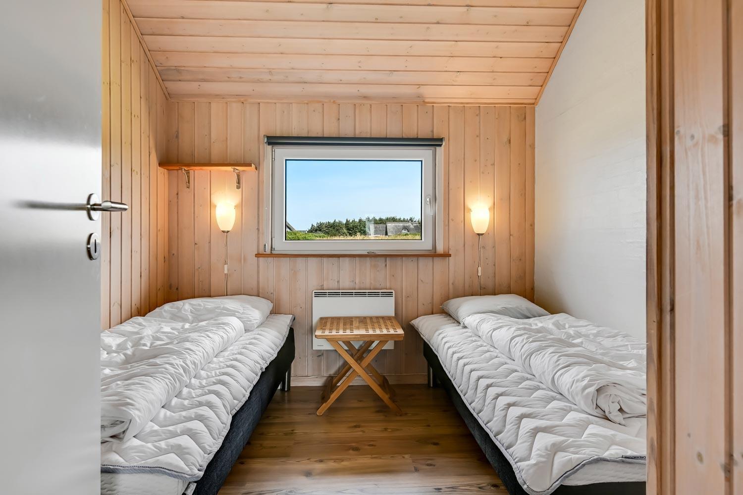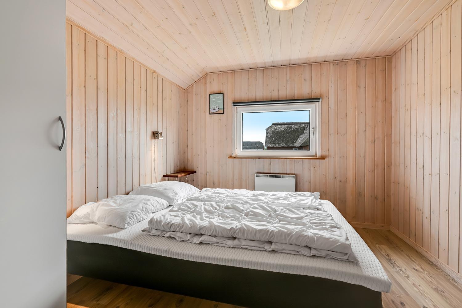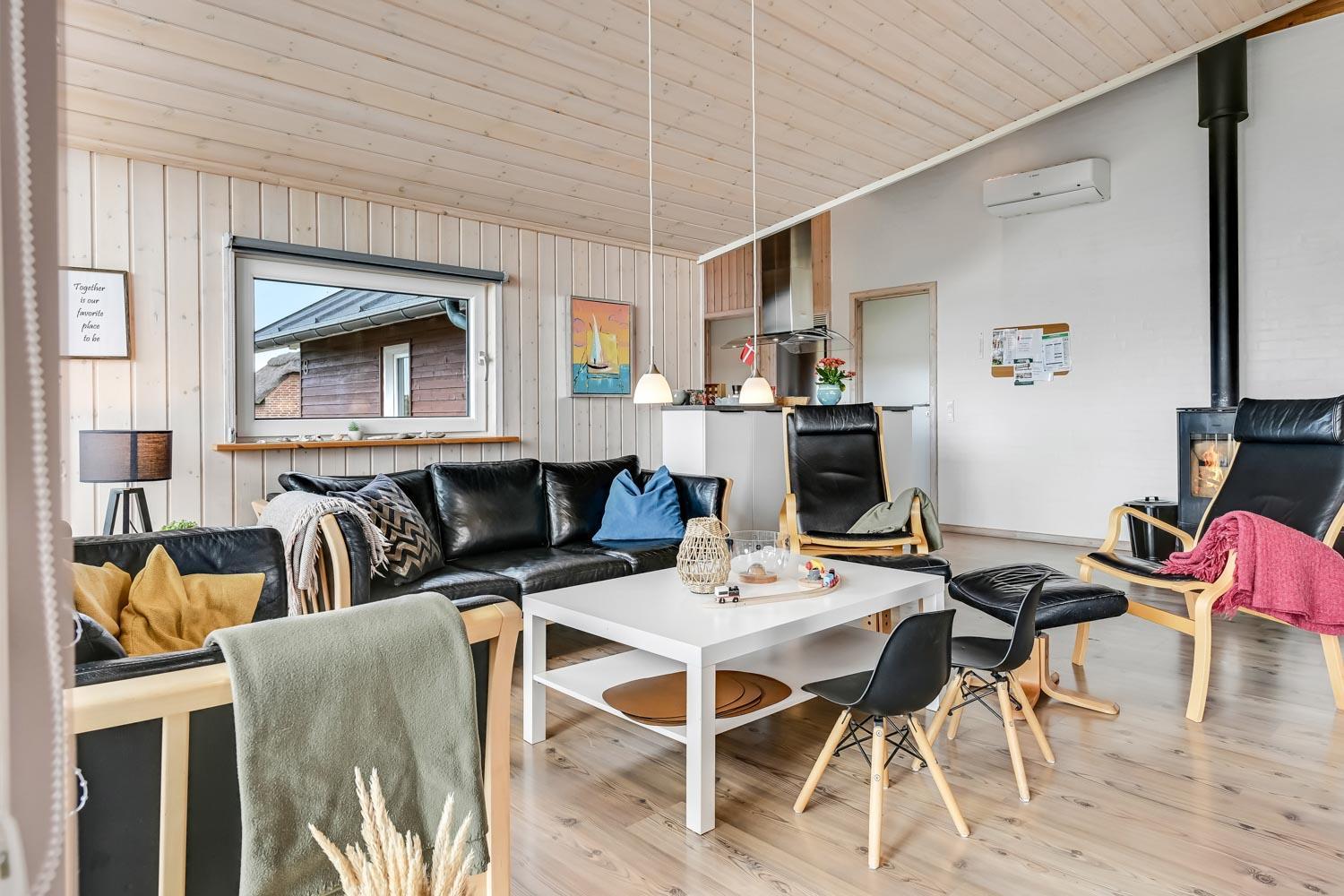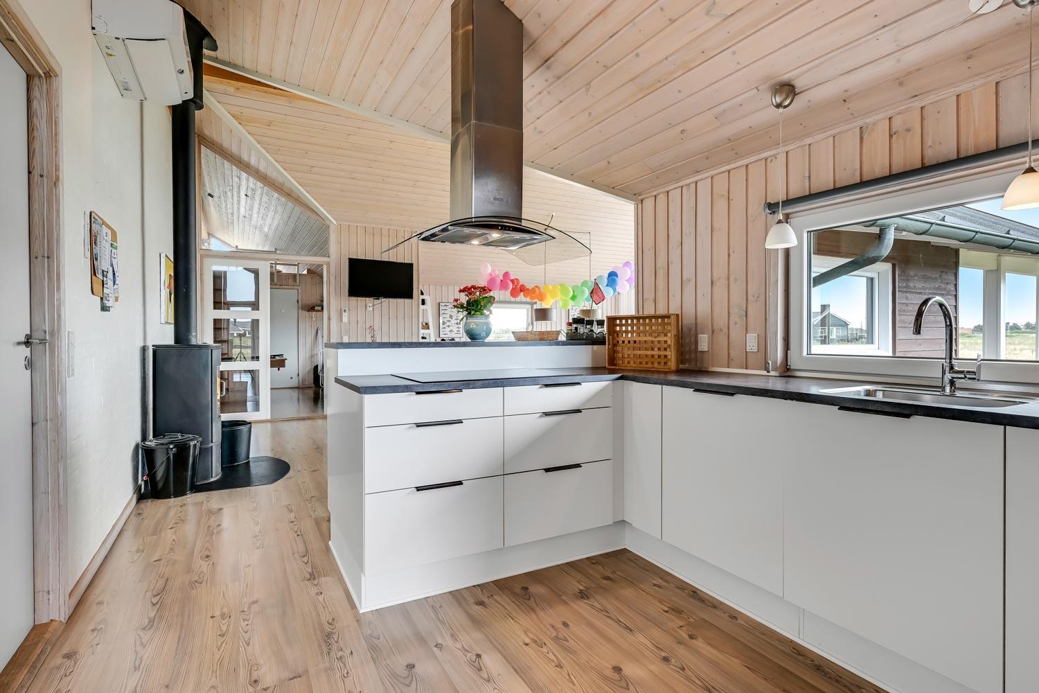 Fantastisk hus som er bygget i 2007 er 140 m2 stort. Efter at have parkeret bilen ved huset byder en entré velkommen. Entréen byder på ekstra skabsplads, håndvask, klinkegulv. Huset har i alt 4 rummelige soveværelser (1DS, 1DS, 2S, 2S) samt en hems med 2 sovemuligheder. Til de mindste gæster er der barneseng og barnestol. Huset har et fantastiske hovedrum, som består af et flot åbent køkken og en dejlig kombineret opholdsstue med spiseplads og lædermøbler. Det stilfulde køkkenhjørne er moderne indrettet og byder på alt i hårde hvidevare og service / køkkengrej. Opvasken klares nemt i den indbyggede opvaskemaskine. Dagligvarer indkøbene opbevares på køl i det store køleskab med fryseboks og måltiderne klares ubesværet ved den keramiske kogeplade. I det åbne køkkenhjørne er der også emhætte, mikroovnen og indbygget bageovn. Fra vinduerne i køkkenet er der en dejlig udsigt til området. Et flot spisebord med plads til alle mand er placeret praktisk lige ved køkkenet og selvfølgelig kan den tilberedte mad serveres på terrassen via terrassedøren i opholdstuen som fører direkte ud til den ene terrasse. Opholdsstuen byder også på lædermøbler ved husets smart-TV, som har danske og tyske TV-programmer, radio og mulighed for streamings tjenester. Nyd flammerne i brændeovnen, som både sørger for god varme og ekstra hygge. Varmepumpen hjælper til at spare på omkostningerne til opvarmning og sørger for et super indeklima Fra opholdsstuen er der også udgang til husets terrasseanlæg.