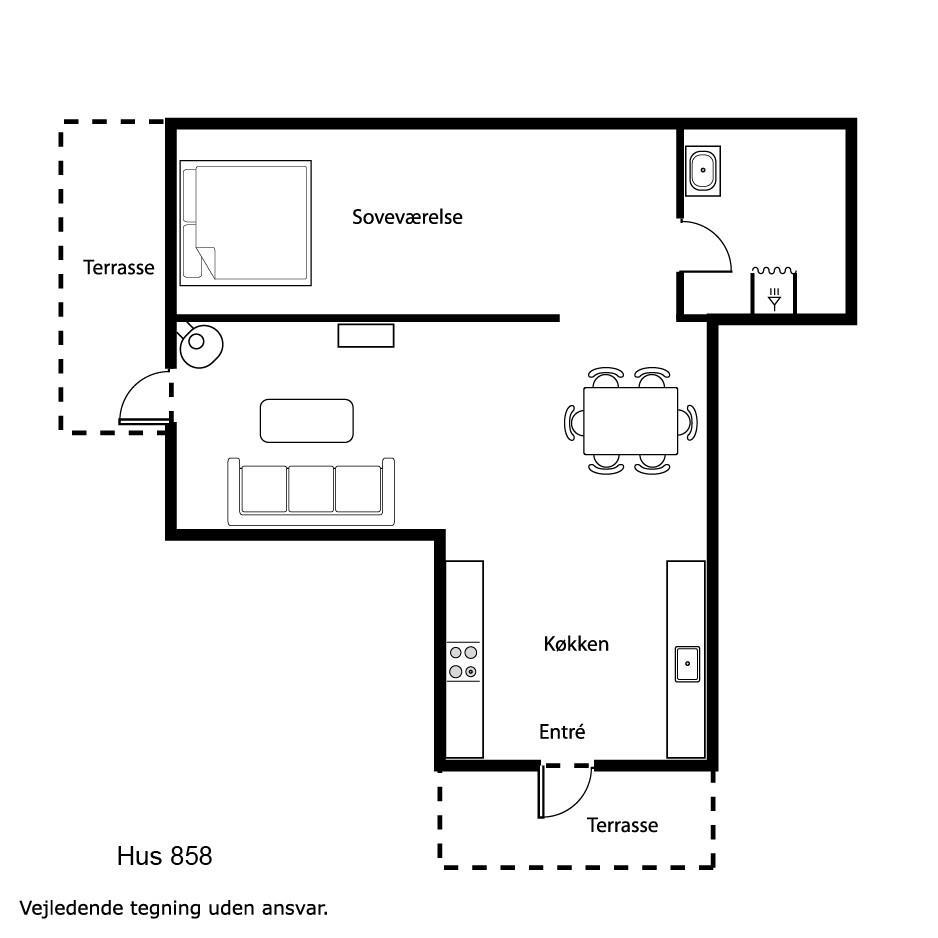 Udendørs findes der to åbne terrasser med havemøbler, hvor I kan nyde solen fra morgen til aften, læse en bog eller blot lytte til havets brusen i baggrunden. Huset opvarmes med el-varme.