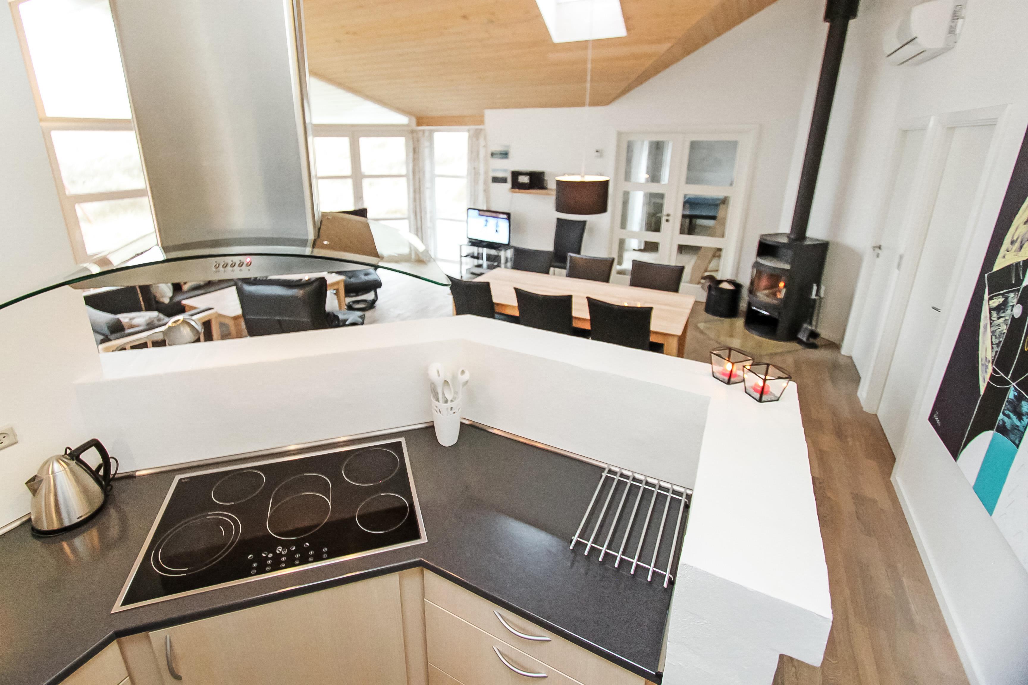 Fra stuen og aktivitetsrummet er der udsigt til klitterne. Fra stuen er der udgang til dejlig stor terrasse med havemøbler og grill. Her fra terrassen kan I høre det brusende Vesterhavet og den korte afstand til stranden gør at huset har en meget unik beliggenhed. Så hvad enten I er til aktiv ferie eller total afslapning danner dette flotte hus en fantastisk ramme både hvad angår hus, beliggenhed og omgivelser. Så alt i alt et komfortabelt hus direkte ved Vesterhavet.