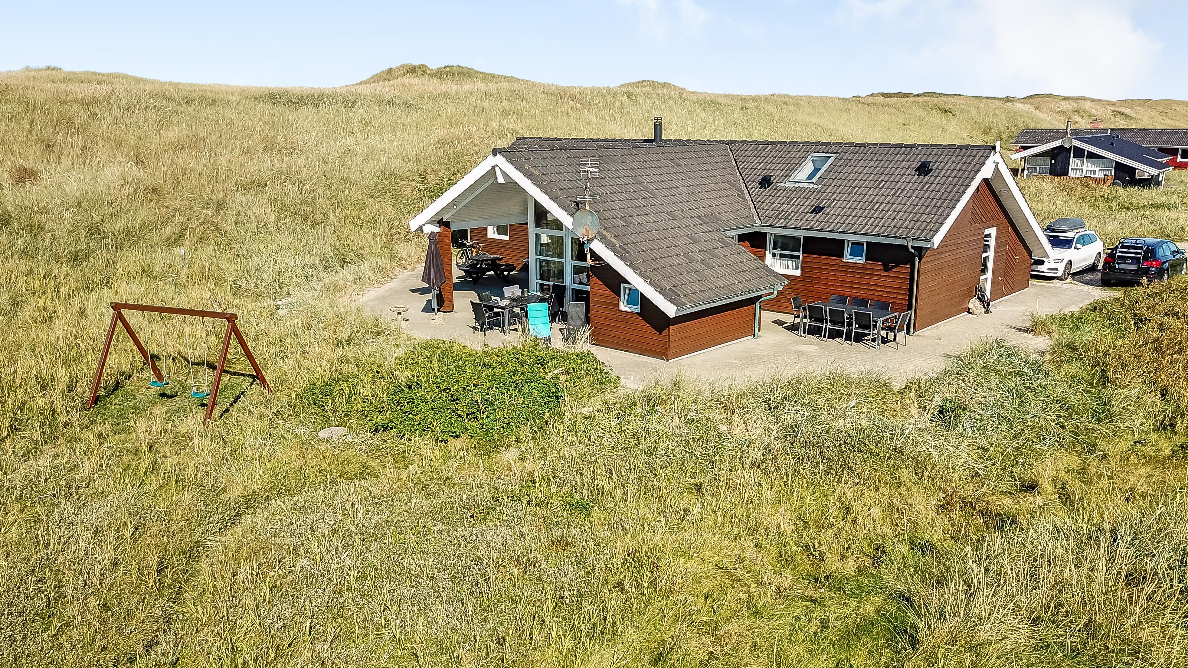 Pragtfuldt feriehus beliggende på en klitgrund ca 1985 m2, for enden af en lukket vej helt op af diget ved Vesterhavet, som blot ligger 50 m væk. Huset er bygget i 2007, Et hus som danner rammen om den perfekte ferie.