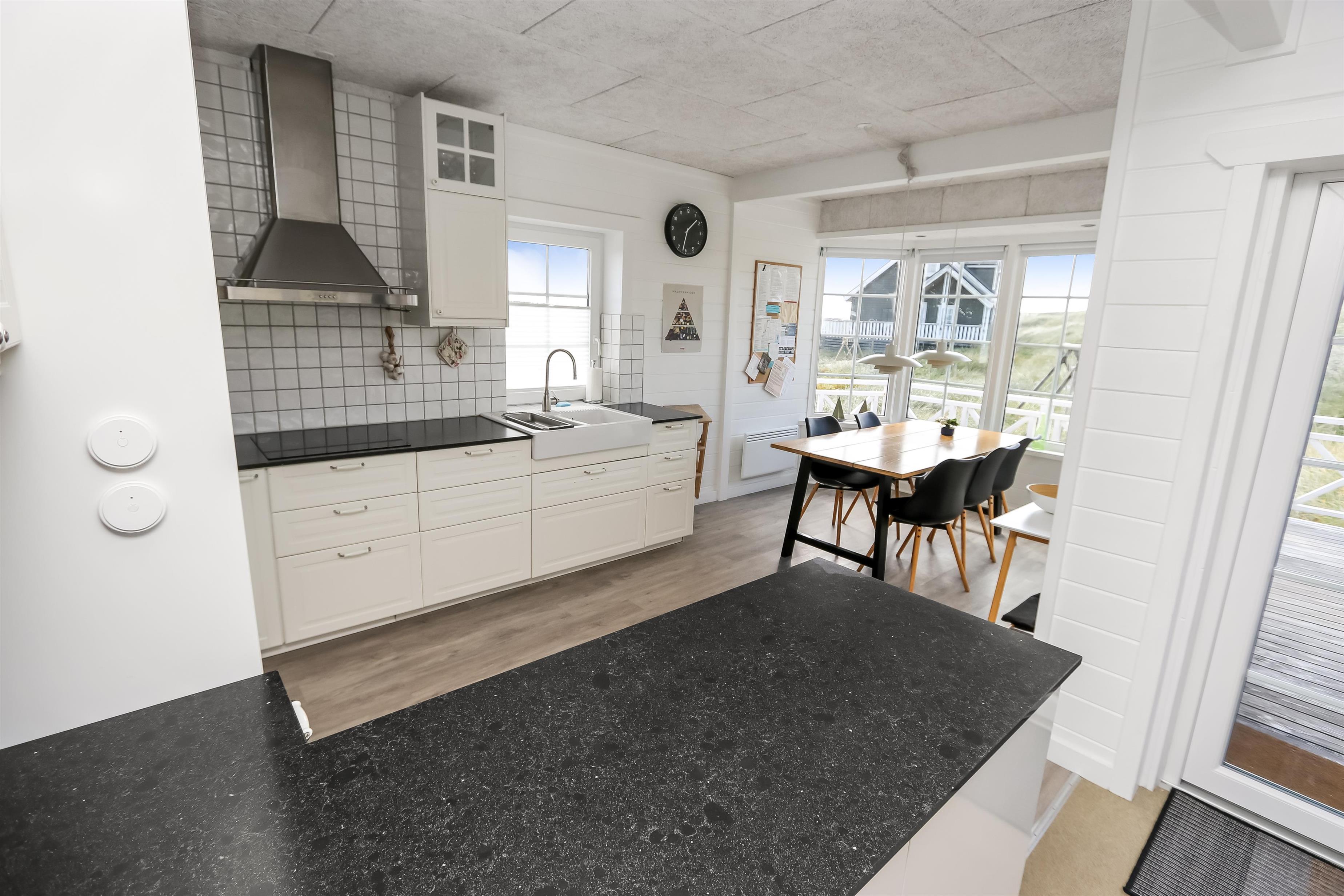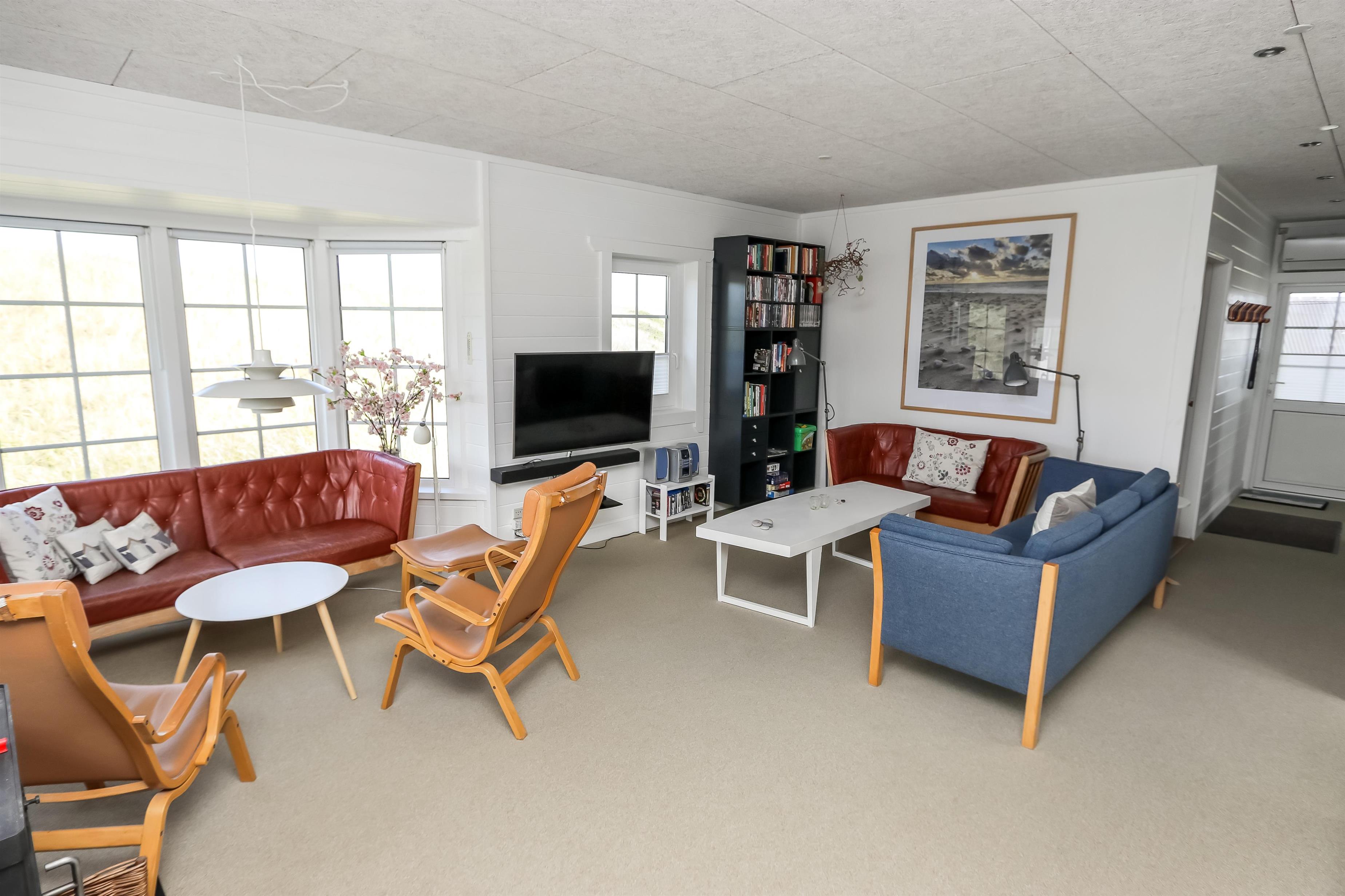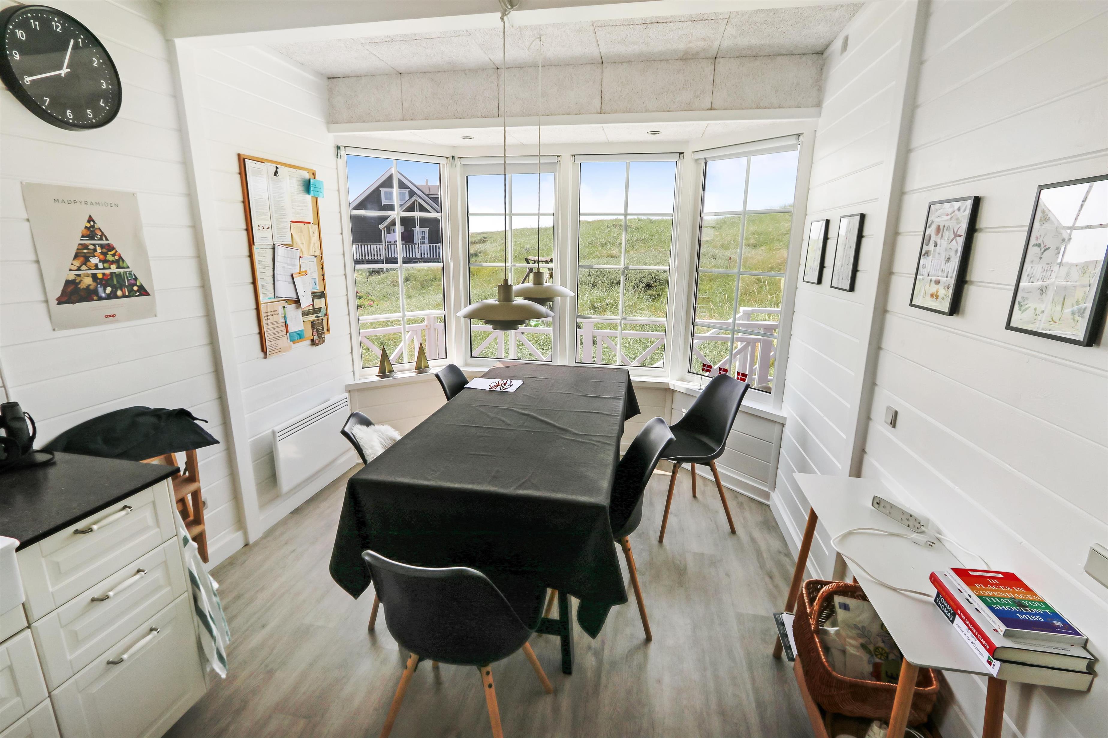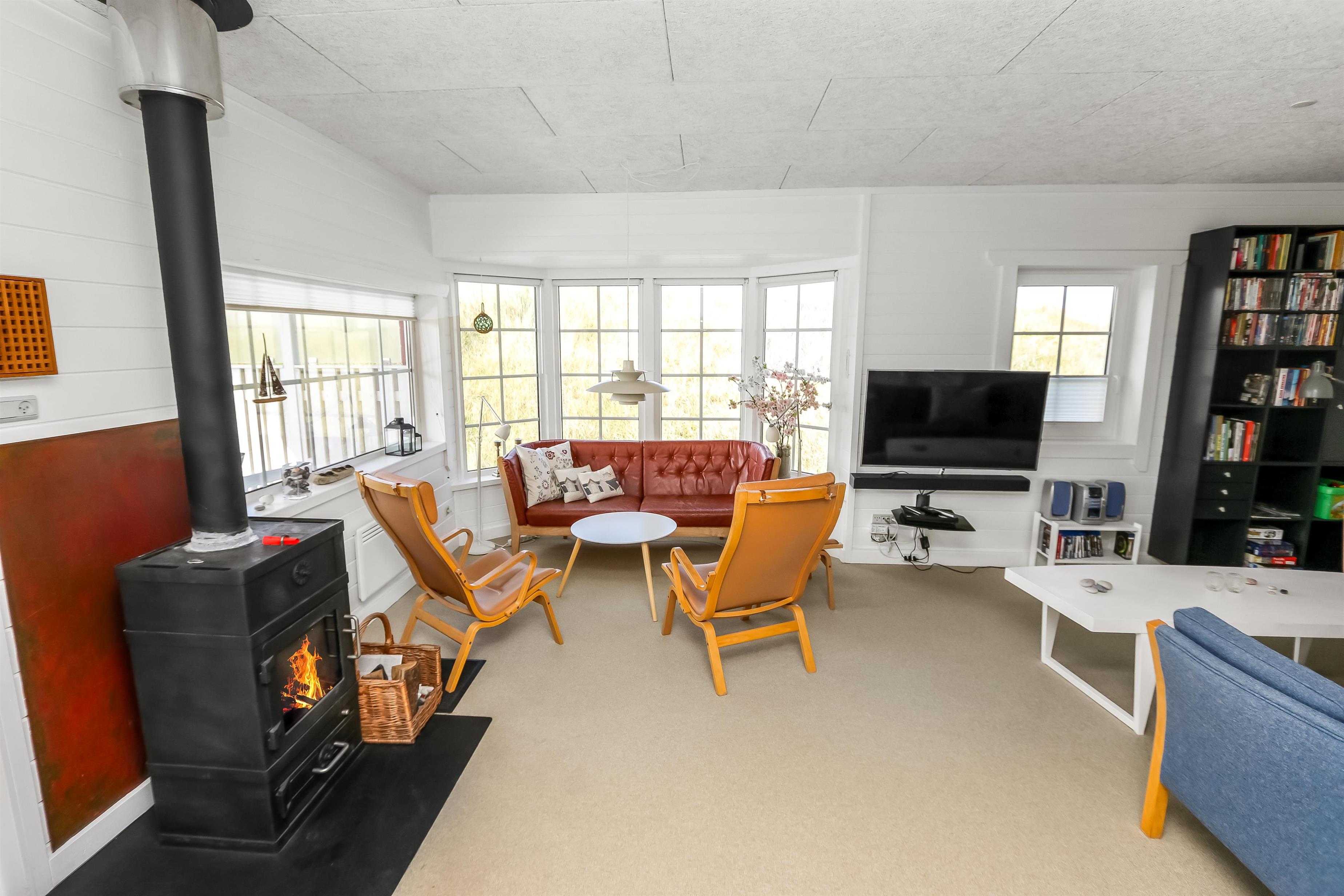 Huset er smagfuldt møbleret, og fra første sal kan I nyde en storslået udsigt over klitterne og det omkringliggende område. Den sydvendte terrasse på samme etage indbyder til afslapning i solen med havemøbler og grill – perfekt til en hyggelig grillaften eller en stille stund med lyden af bølgernes brusen blot 50 meter væk.