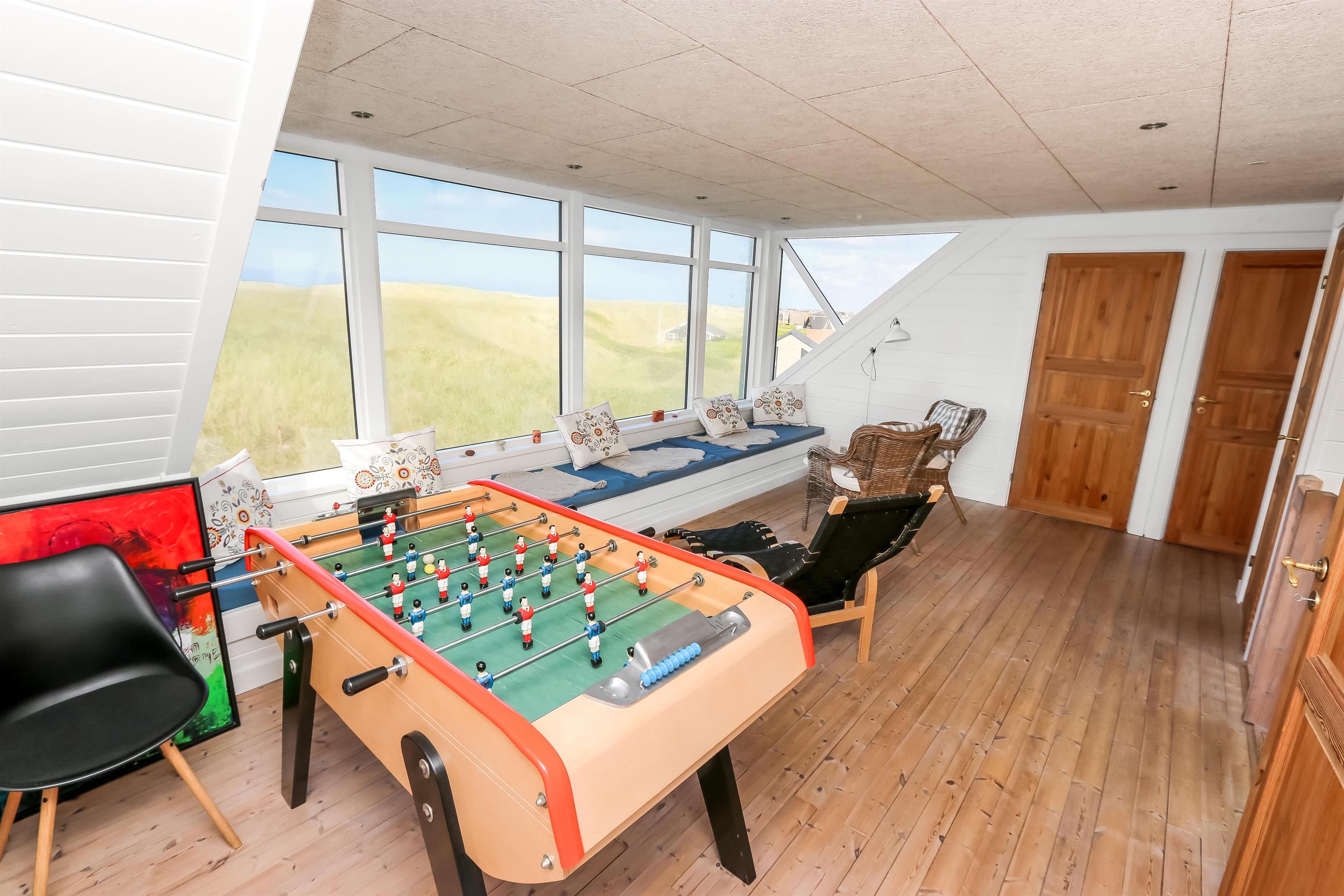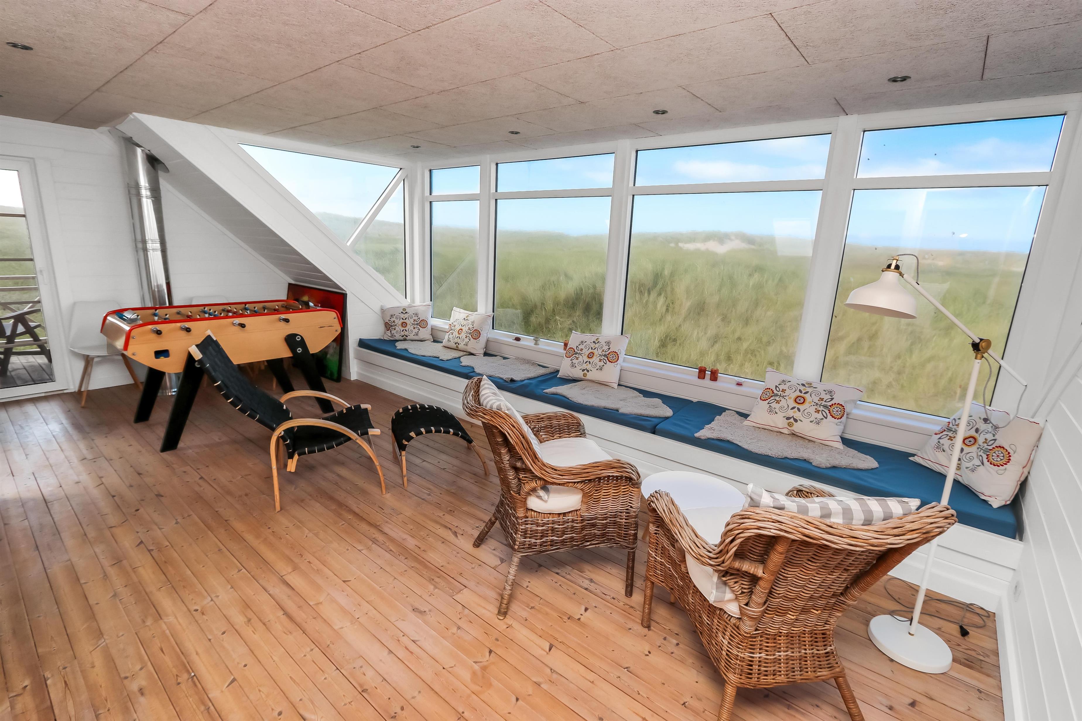 Husets omgivelser er lige så imponerende som selve huset. Den store 2400 m² klitgrund giver masser af plads til leg, afslapning og oplevelser i solen. Terrassen er delvist overdækket og udstyret med solvogne, havemøbler og grill, så I kan nyde havets nærvær uanset vejret. Som ekstra bonus får I gratis adgang til Wærket i Thyborøn med svømmehal og andre aktiviteter – perfekt til familieoplevelser.