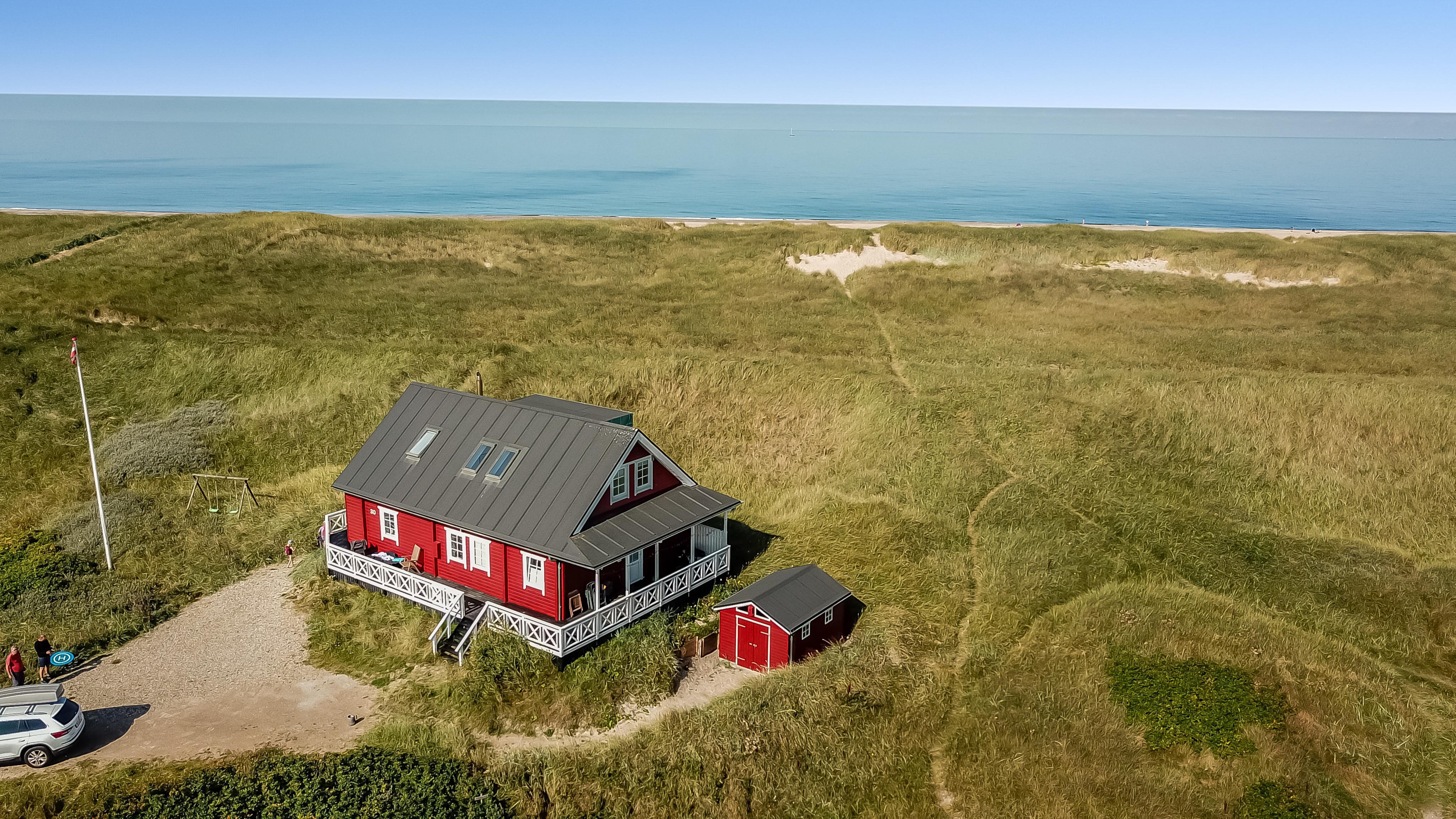 Drømmer I om en ferie med udsigt, havbrus og total afslapning? Dette fantastiske feriehus i to etager ligger på en højtliggende klitgrund direkte ned til stranden – tættere på Vesterhavet kan man ikke komme. Huset kombinerer komfort, luksus og en helt unik beliggenhed, der gør det til det perfekte valg for familier, som vil nyde naturens ro og havets nærvær.