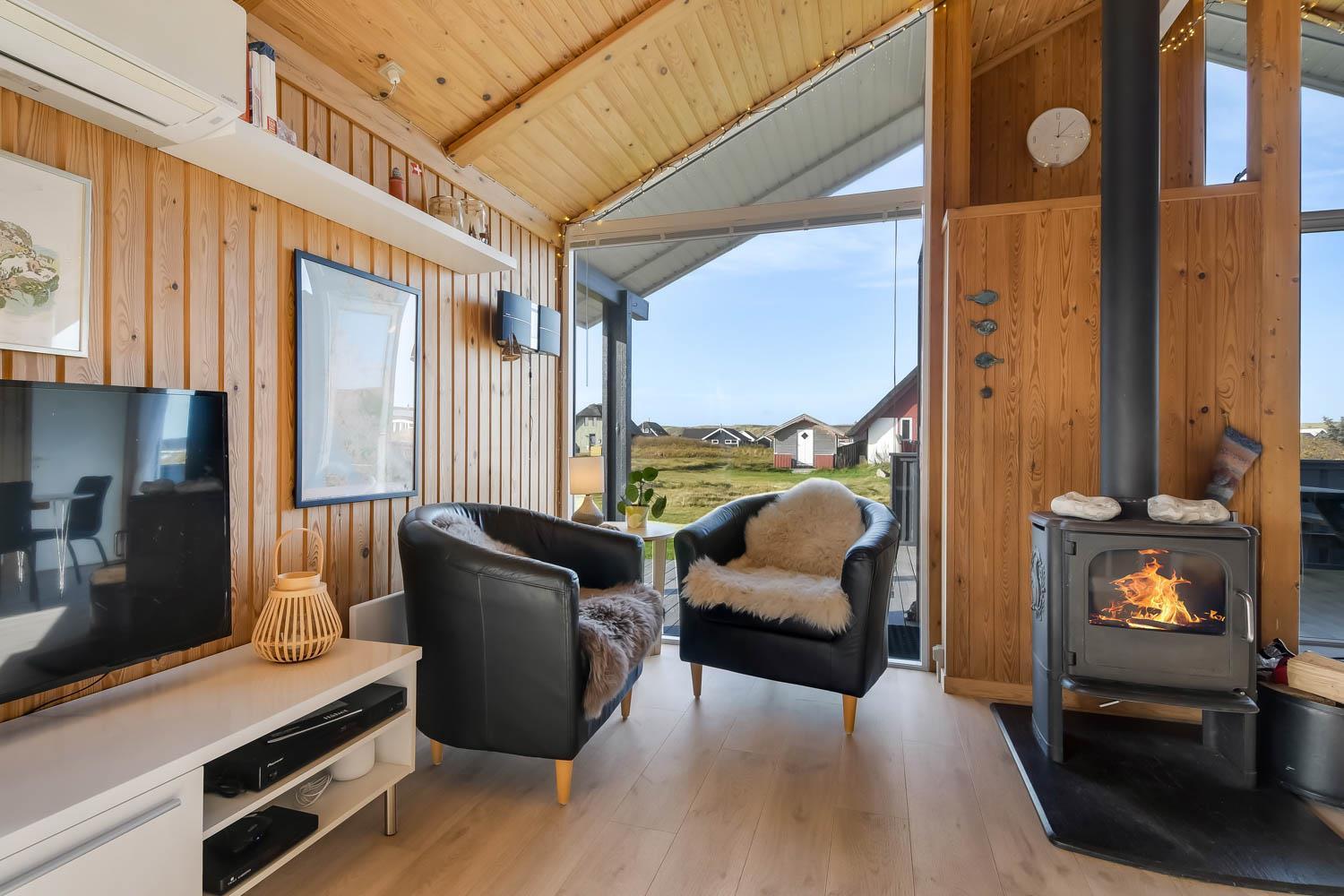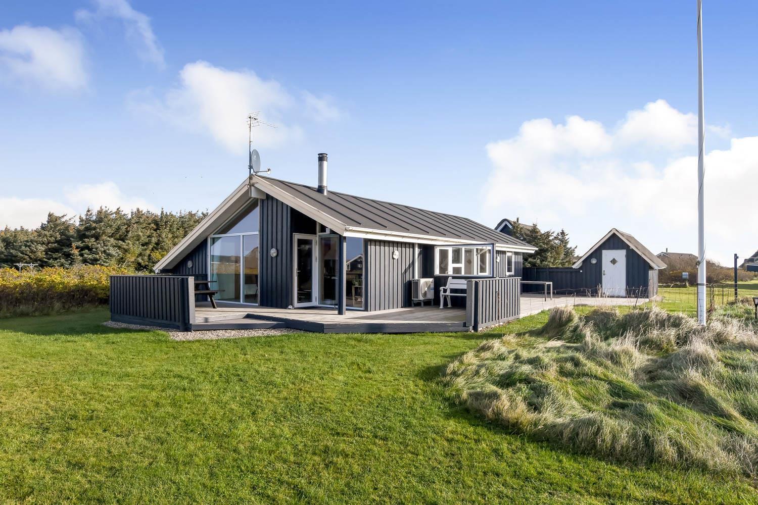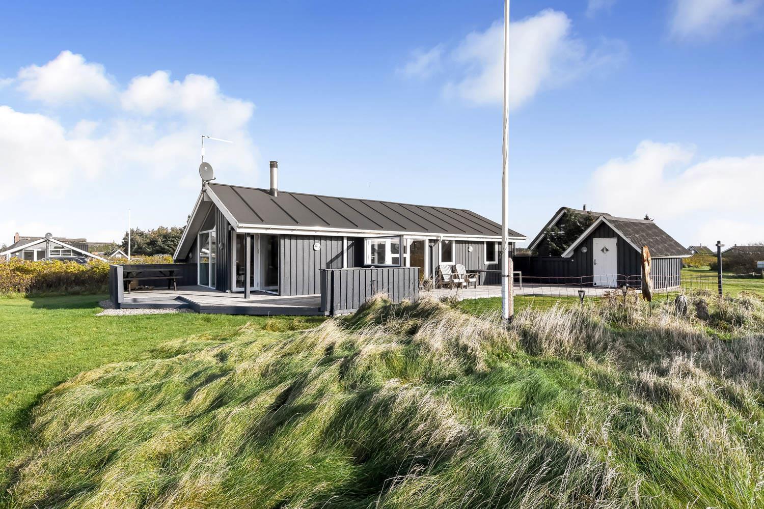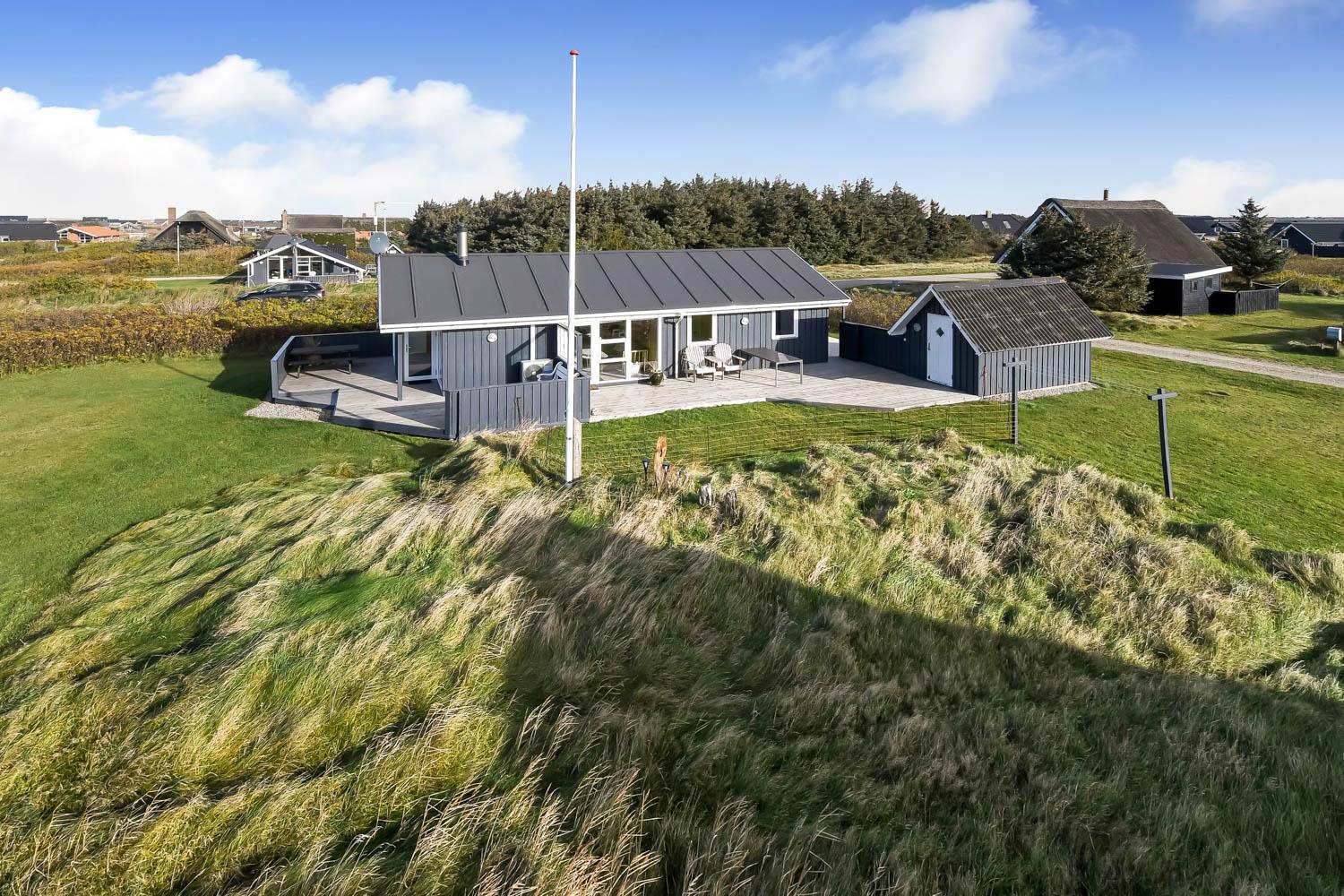 Huset er beliggende på en åben grund tæt ved Vesterhavet og har et dejlig terrasseanlæg med havemøbler, liggestole og grill. Nyd at der altid er mulighed for at finde en plads i solen og nyd udsigten til de høje klitter. Et dejligt feriehus kun ca. 250m fra det brusende Vesterhav, som hver dag byder på nye maleriske oplevelse. Så hvad enten I er til aktiv ferie eller total afslapning danner dette flotte hus en fantastisk ramme både hvad angår hus, beliggenhed og omgivelse