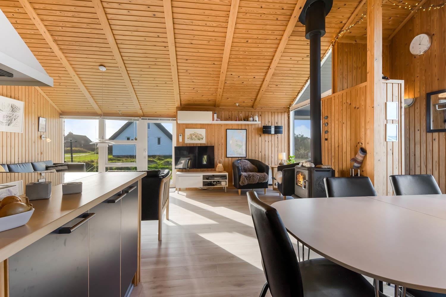 Populært Stenhøj sommerhus i træ med gratis internet, udsigt til klitterne og kun 250 m fra det skønne og unikke Vesterhav. Huset er bygget i 1998 og er særdeles velholdt og løbende renoveret. Et hus som danner rammen om den perfekte ferie.