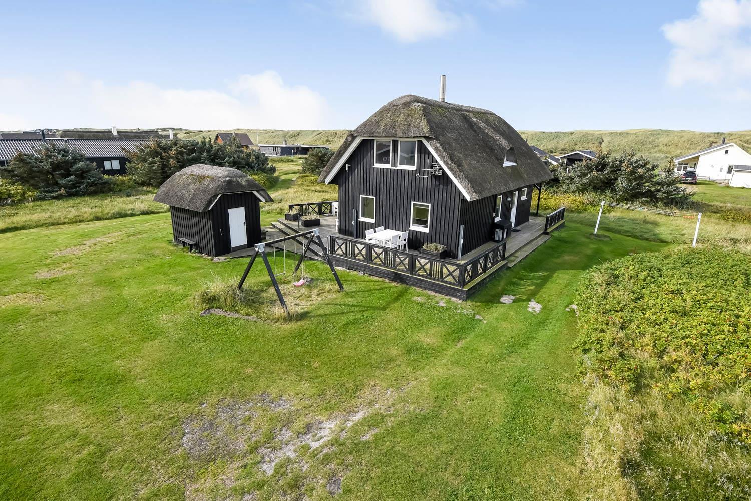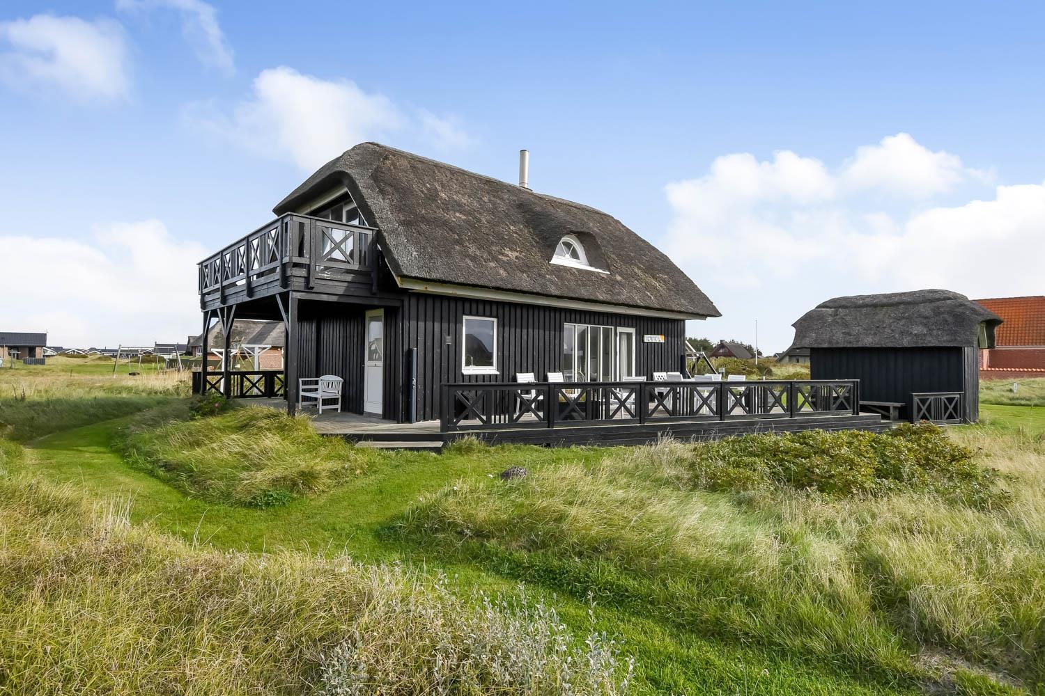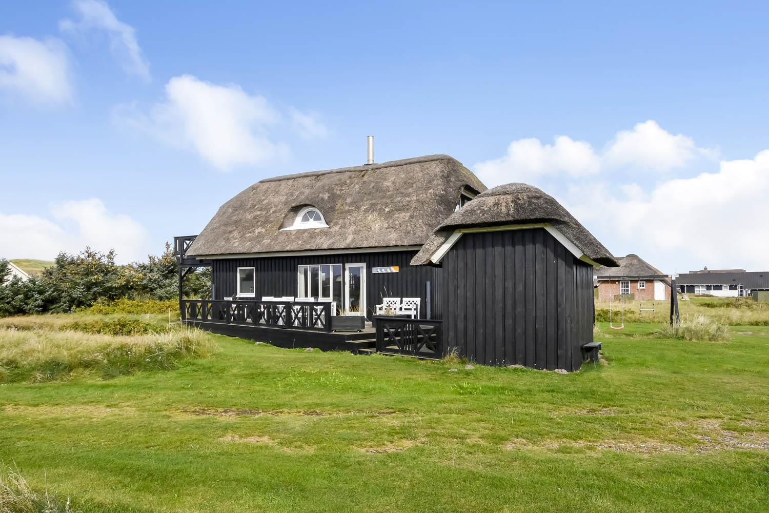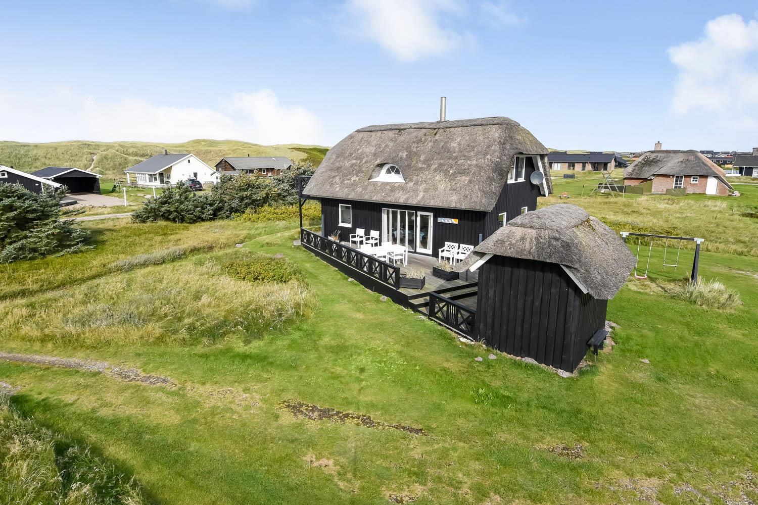 Romantisk, kvalitetshus med stråtag og gratis Internet. Flot og særdeles velholdt træhus med klitudsigt og kun et stenkast fra Vesterhavet. Et flot feriehus med god plads til hele familien eller til parret som ønsker en romantisk ferie. Nyd husets mange muligheder eller gå en dejlig tur ved Vesterhavet.