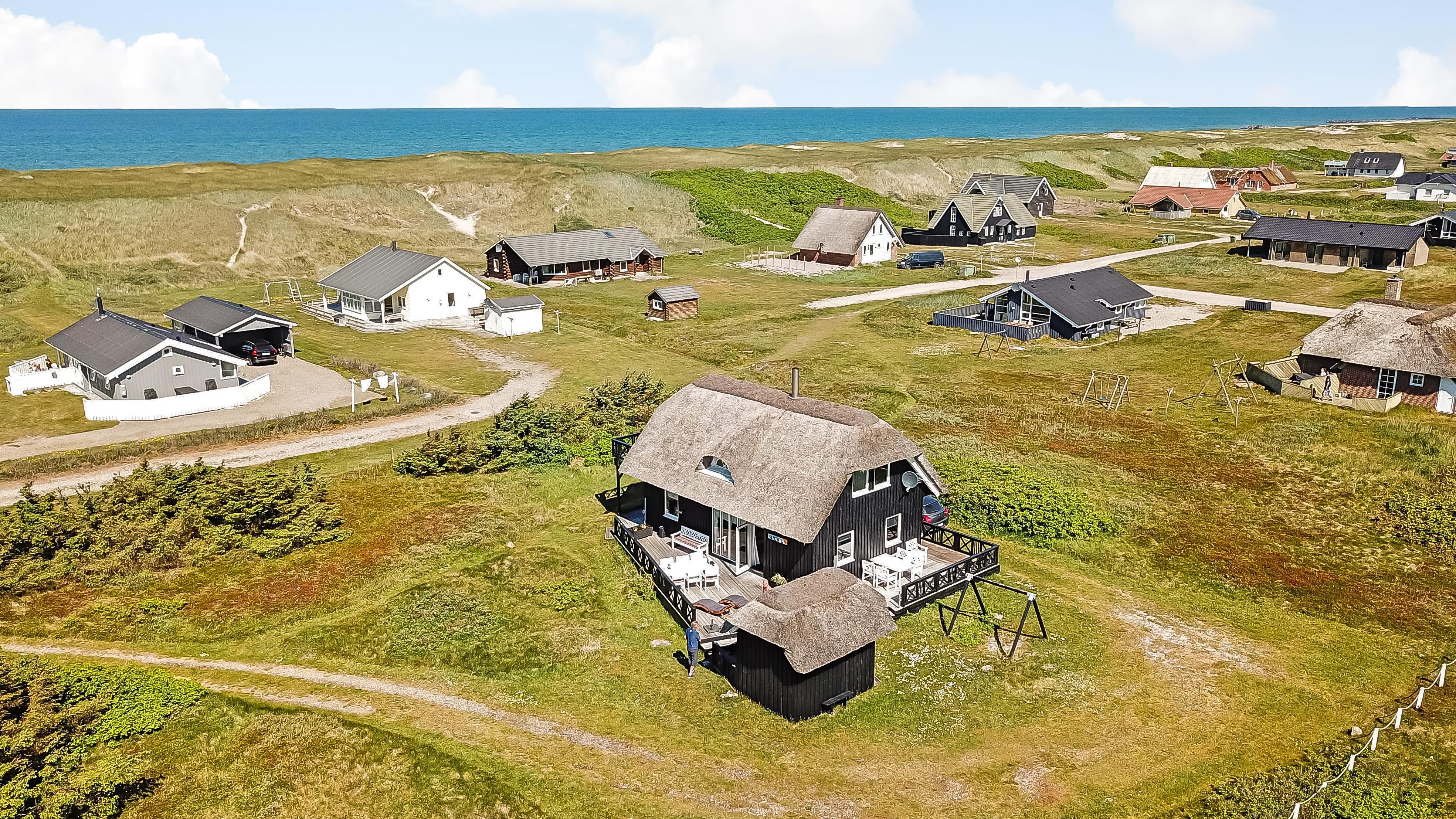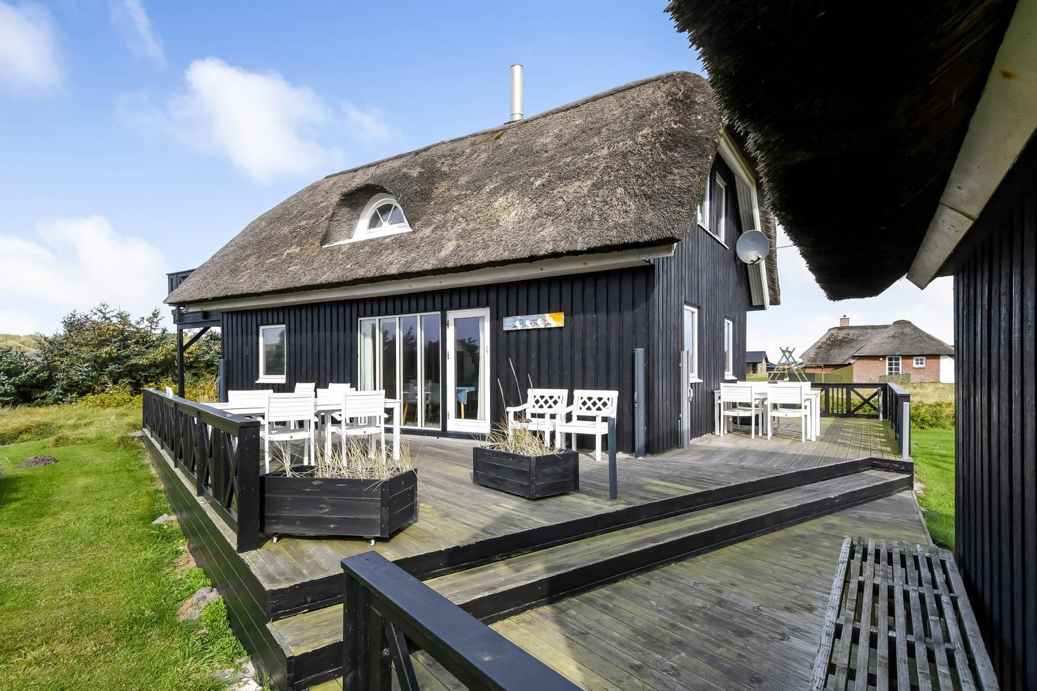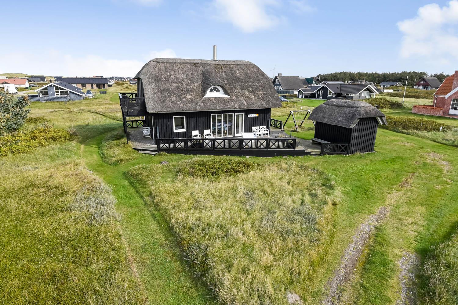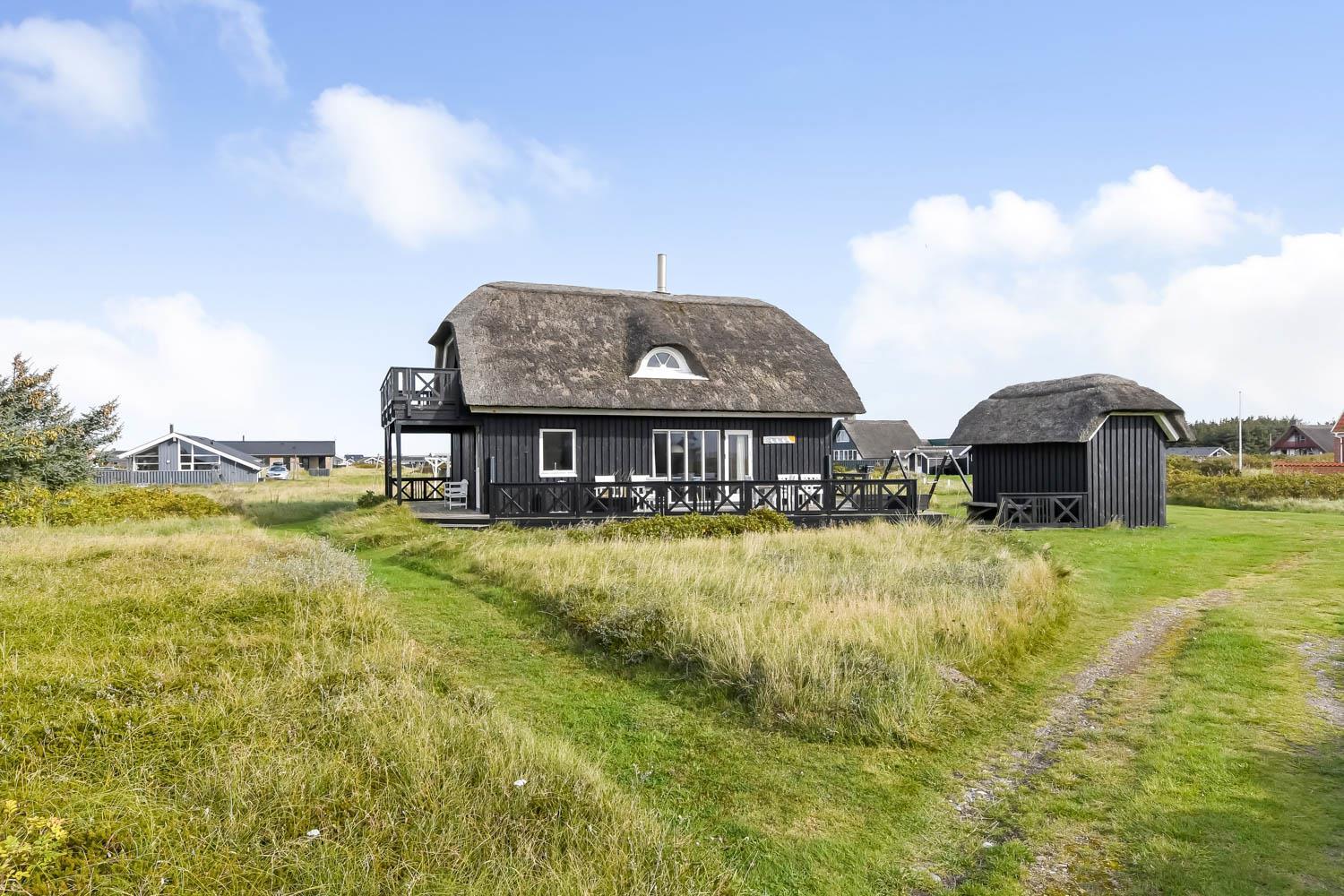 Romantisk, kvalitetshus med stråtag og gratis Internet. Flot og særdeles velholdt træhus med klitudsigt og kun et stenkast fra Vesterhavet. Et flot feriehus med god plads til hele familien eller til parret som ønsker en romantisk ferie. Nyd husets mange muligheder eller gå en dejlig tur ved Vesterhavet.